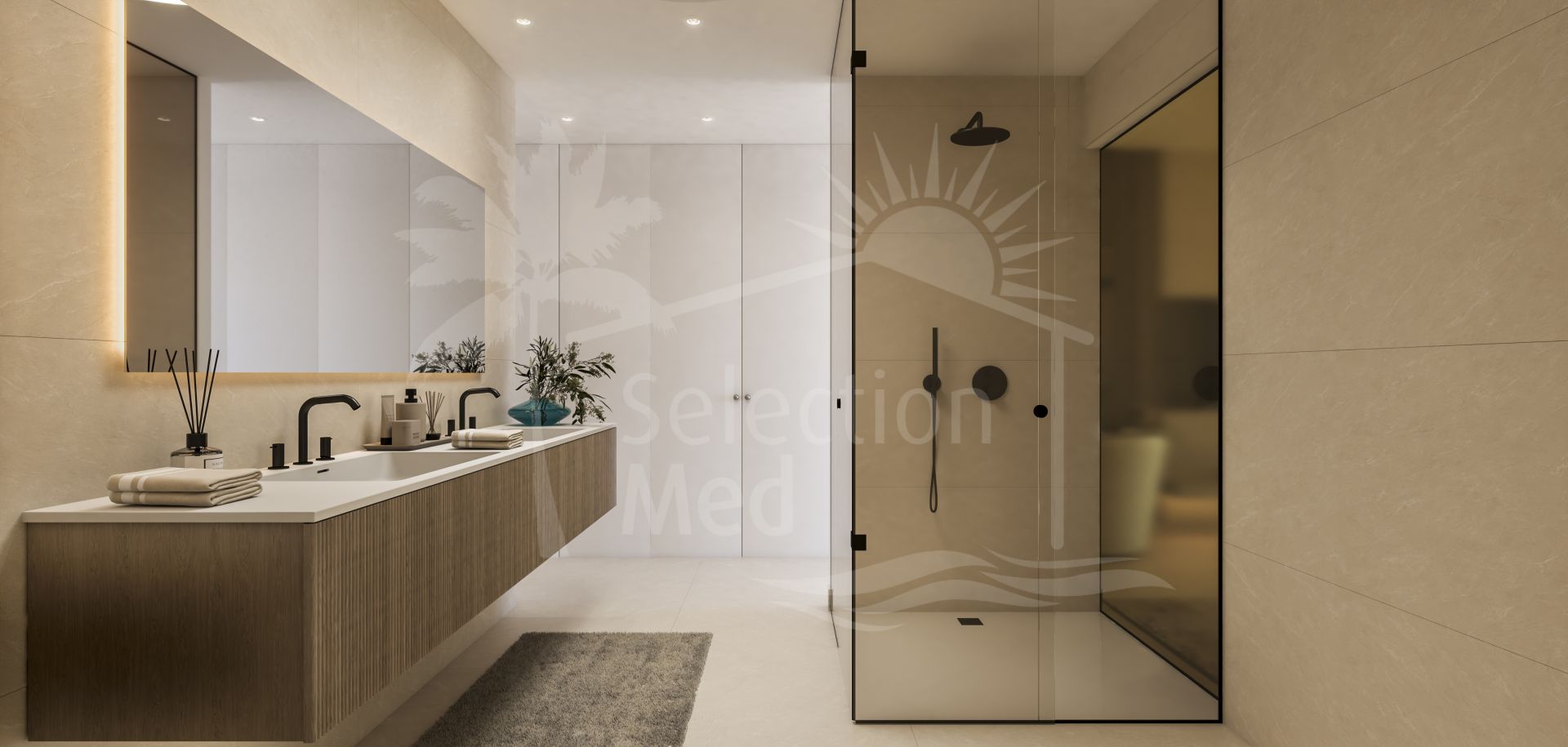 Les résidences répondent à divers styles de vie, offrant une gamme d'options allant des appartements au rez-de-chaussée avec jardins privés et la possibilité d'une piscine en option, aux appartements à l'étage supérieur avec des terrasses spacieuses idéales pour se divertir. Les penthouses sont particulièrement remarquables, mettant en valeur de vastes terrasses, des solariums et une vue imprenable sur la mer, avec le luxe supplémentaire des piscines privées en option. Les villas offrent des espaces de vie généreux, des jardins magnifiquement aménagés et des piscines privées, assurant une atmosphère confortable et isolée qui s'harmonise avec la nature, les rendant parfaits pour la détente et les loisirs.