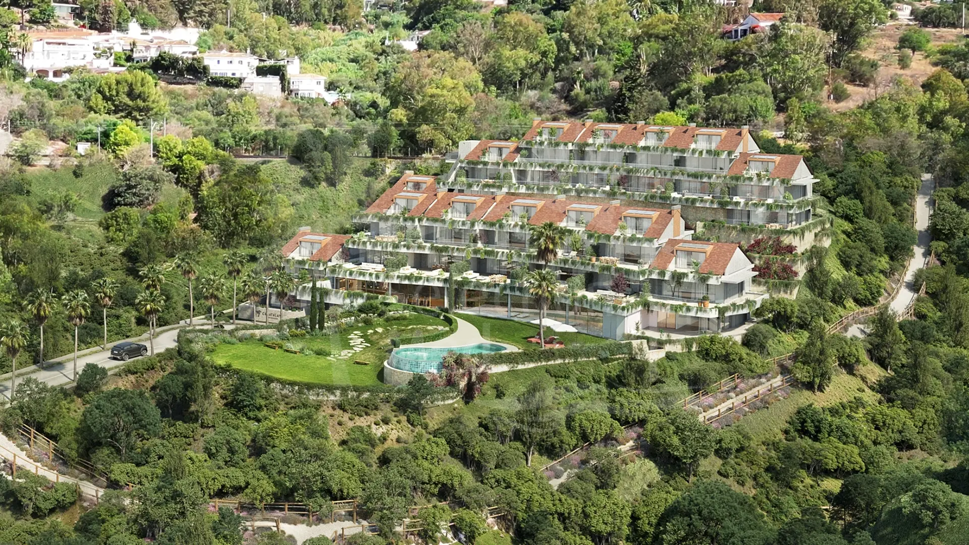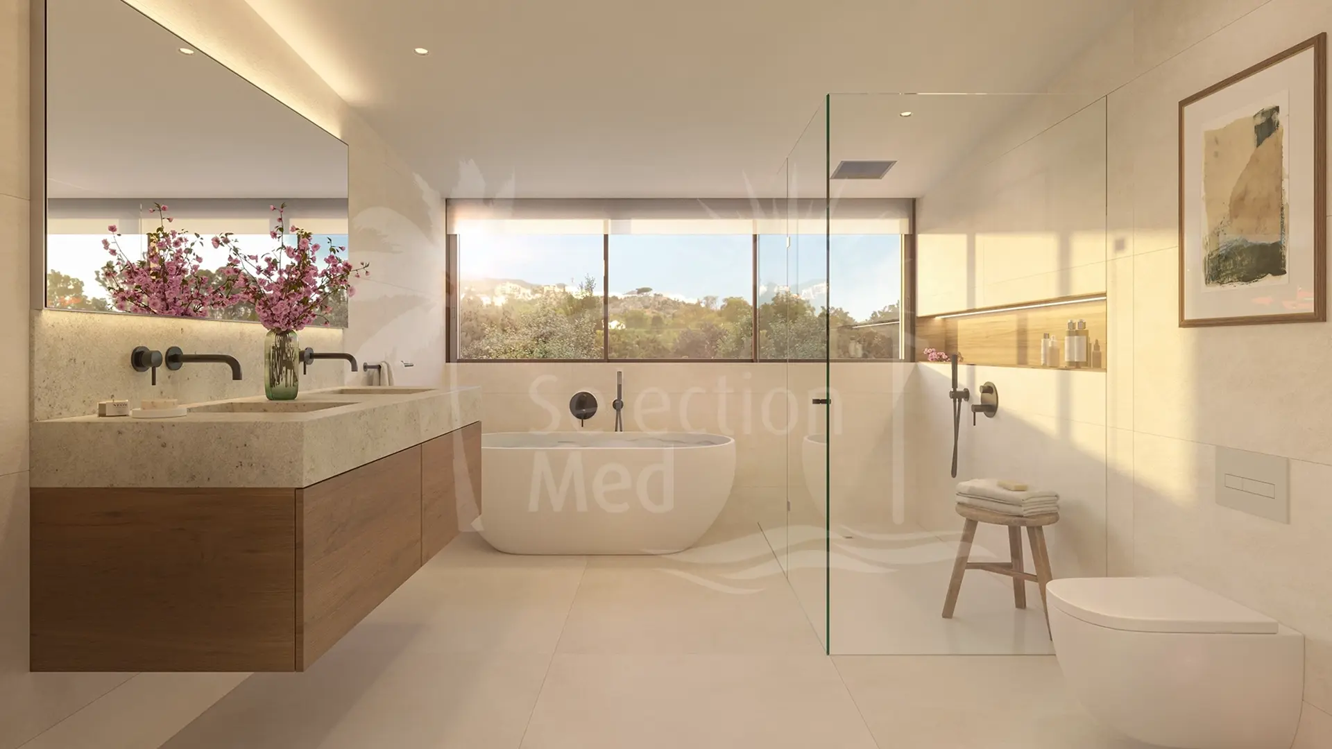 Las viviendas están cuidadosamente distribuidas en un terreno suavemente inclinado, lo que permite disfrutar de vistas abiertas y despejadas al mar. Muchas de las residencias están orientadas al sur, asegurando una abundante luz natural durante todo el día y aprovechando al máximo los más de 320 días de sol al año que ofrece la Costa del Sol. Los interiores son amplios y diáfanos, con distribuciones pensadas para priorizar la funcionalidad, la fluidez y el confort. Grandes ventanales y generosas terrazas privadas amplían el espacio habitable al exterior, creando el entorno perfecto para disfrutar del café matutino, cenas al atardecer o relajados fines de semana bajo el sol.