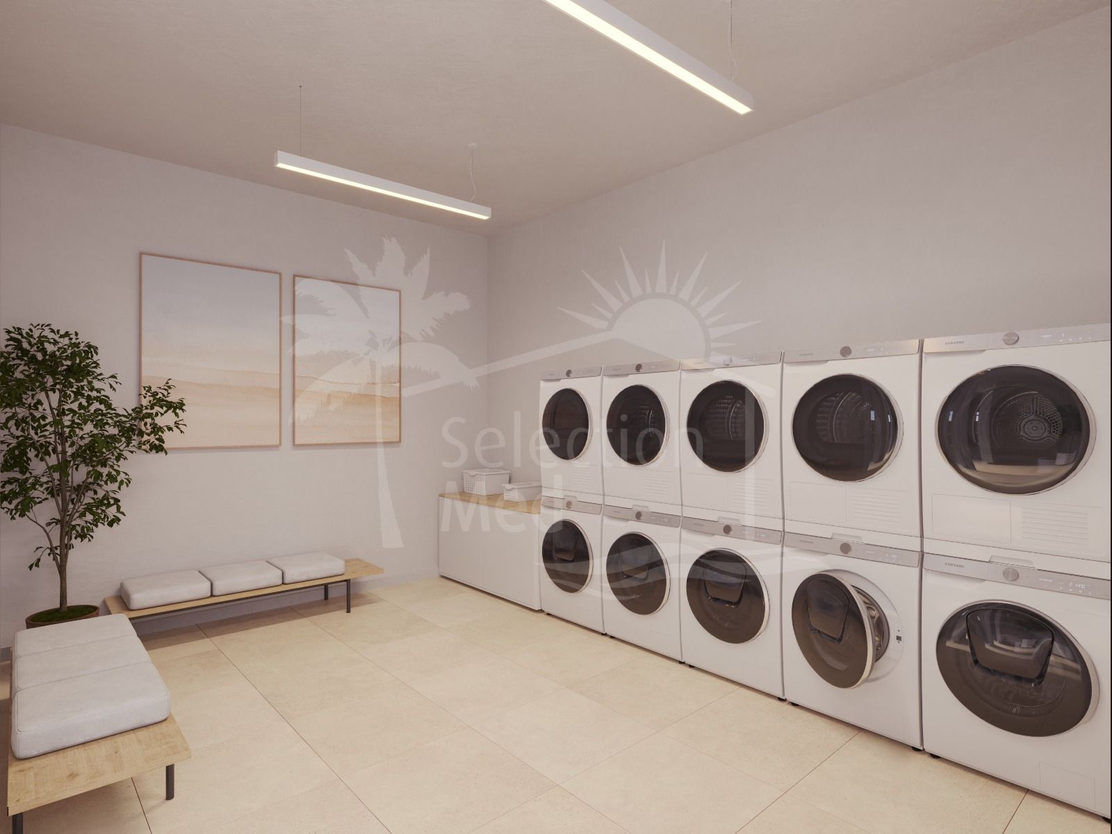 El complejo residencial ofrece instalaciones premium, incluyendo piscinas para adultos y niños, gimnasio, zona de bienestar con sauna, espacio de coworking, lavandería comunitaria y jardines paisajísticos.