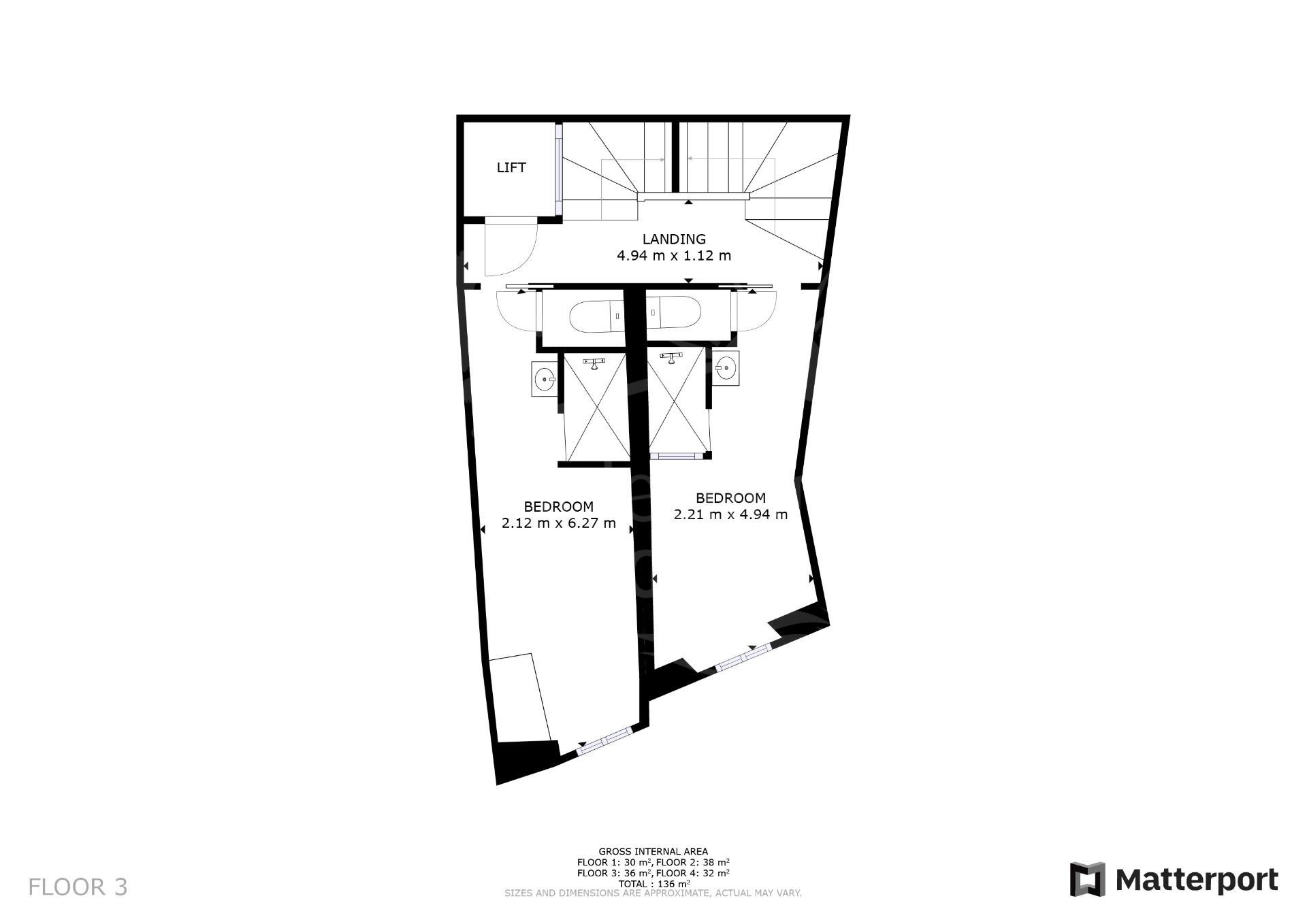 Total built surface is 149.93 sqm, distributed as follows:..-Ground floor, entrance and living area, 40.82 sqm.-First floor, spacious kitchen and dining area, 41.82 sqm.-Second floor, two individual bedrooms with their own bathroom each, 41.04 sqm.-Top floor, master bedroom with an suite bathroom and dressing, 36.25 sqm. At present this property is the only one for sale in the Old Town that is a whole house and has been completely refurbished.