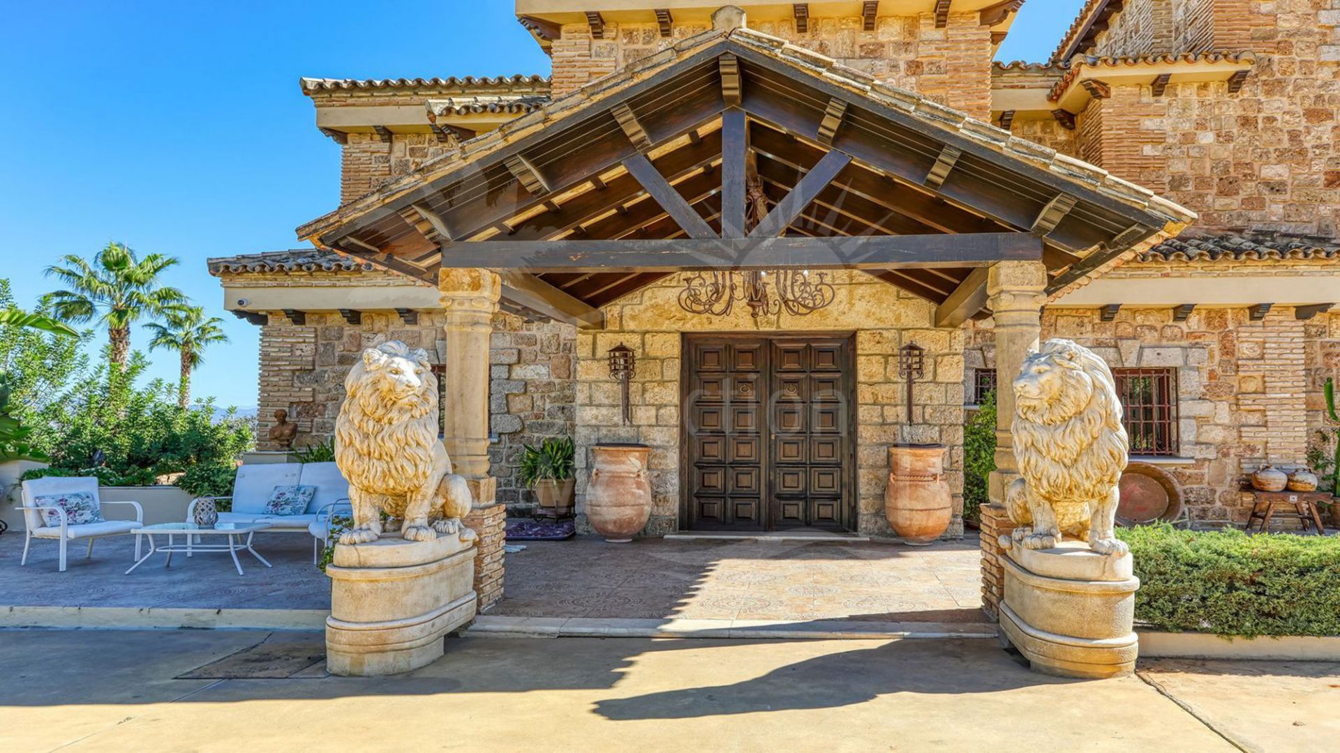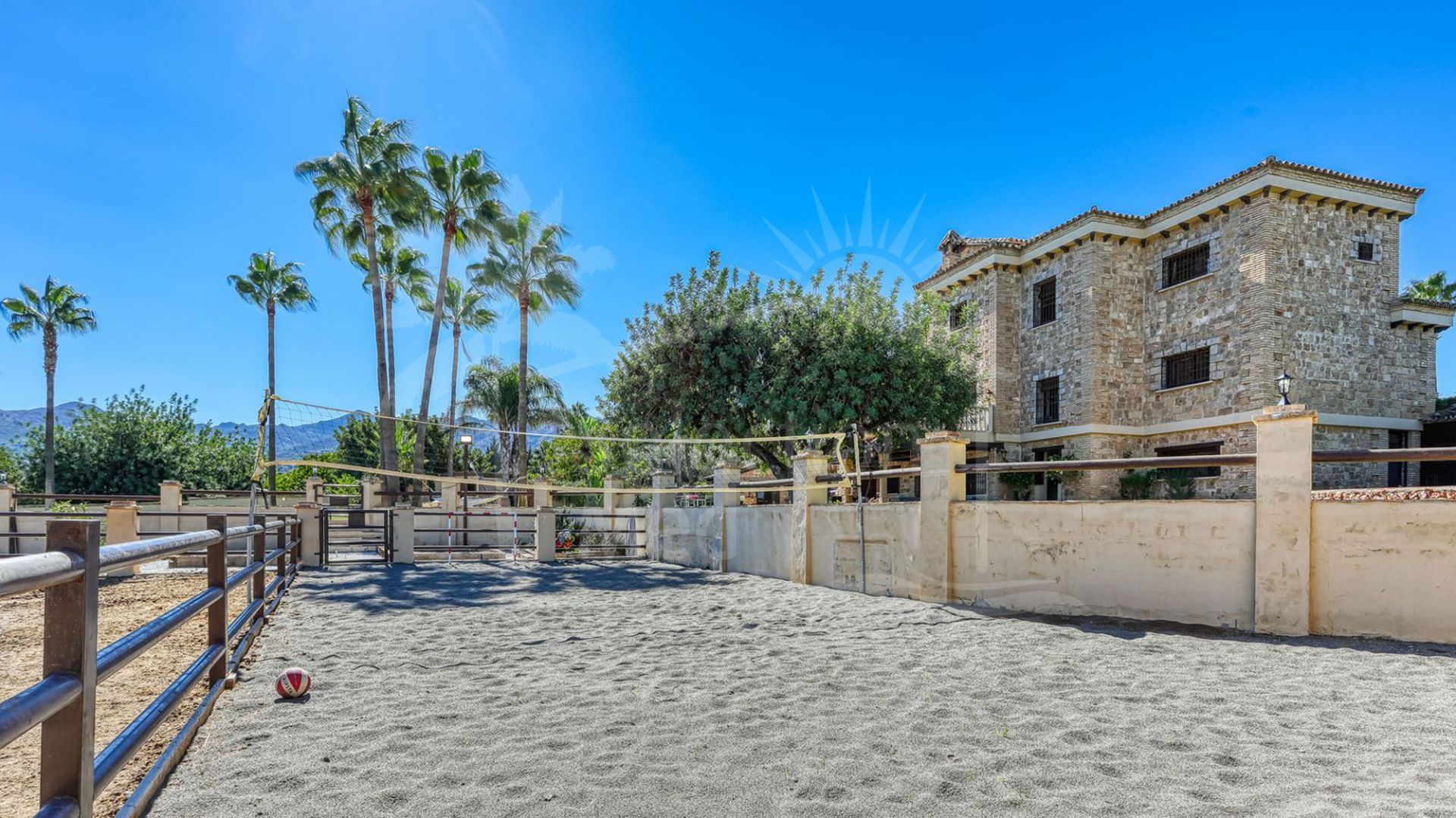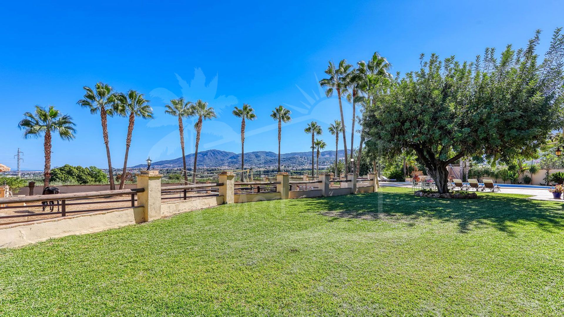 The estate also includes an extensive garden and a horse stable, as well as a separate apartment with a kitchen and bathroom. With two garages and storage rooms, this property has been built with high-quality materials and features underfloor heating and air conditioning.