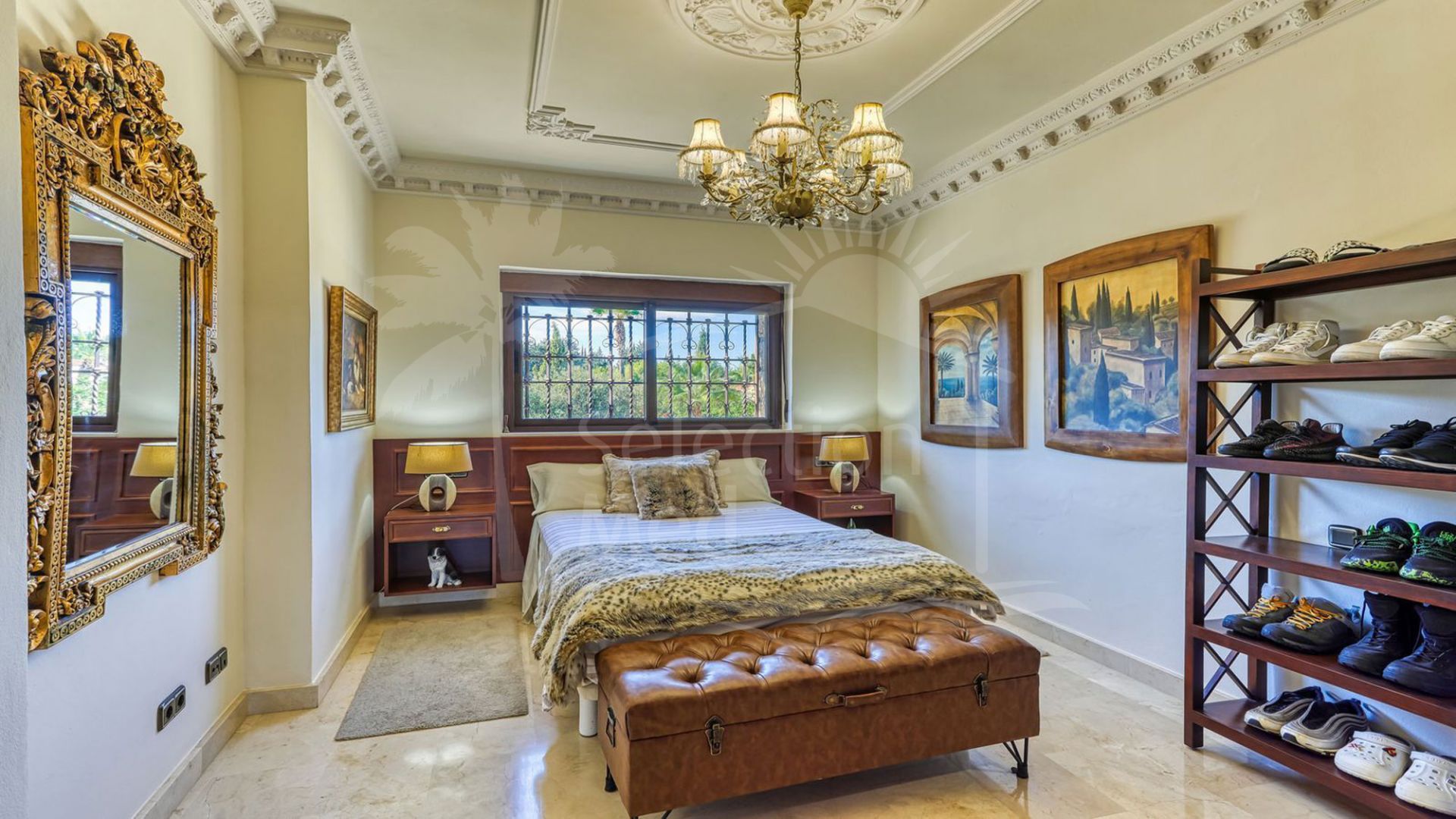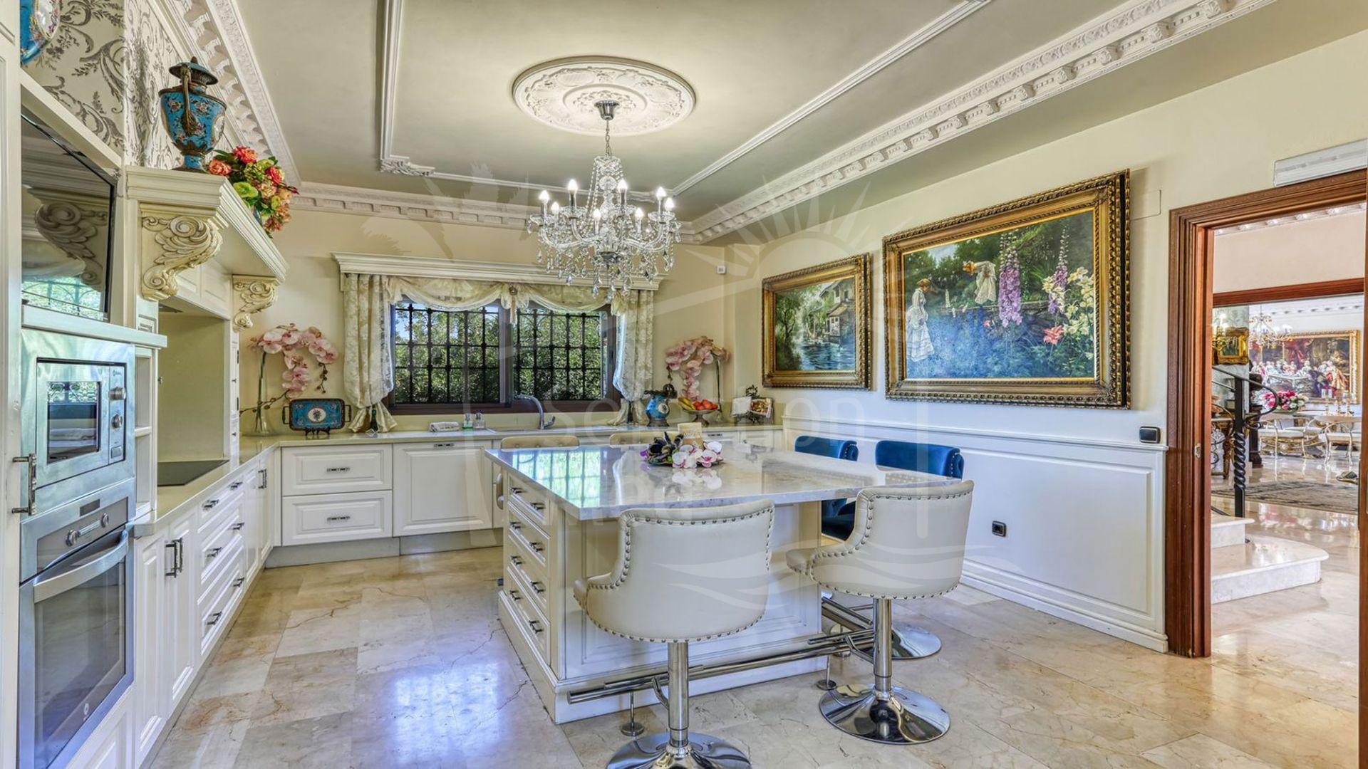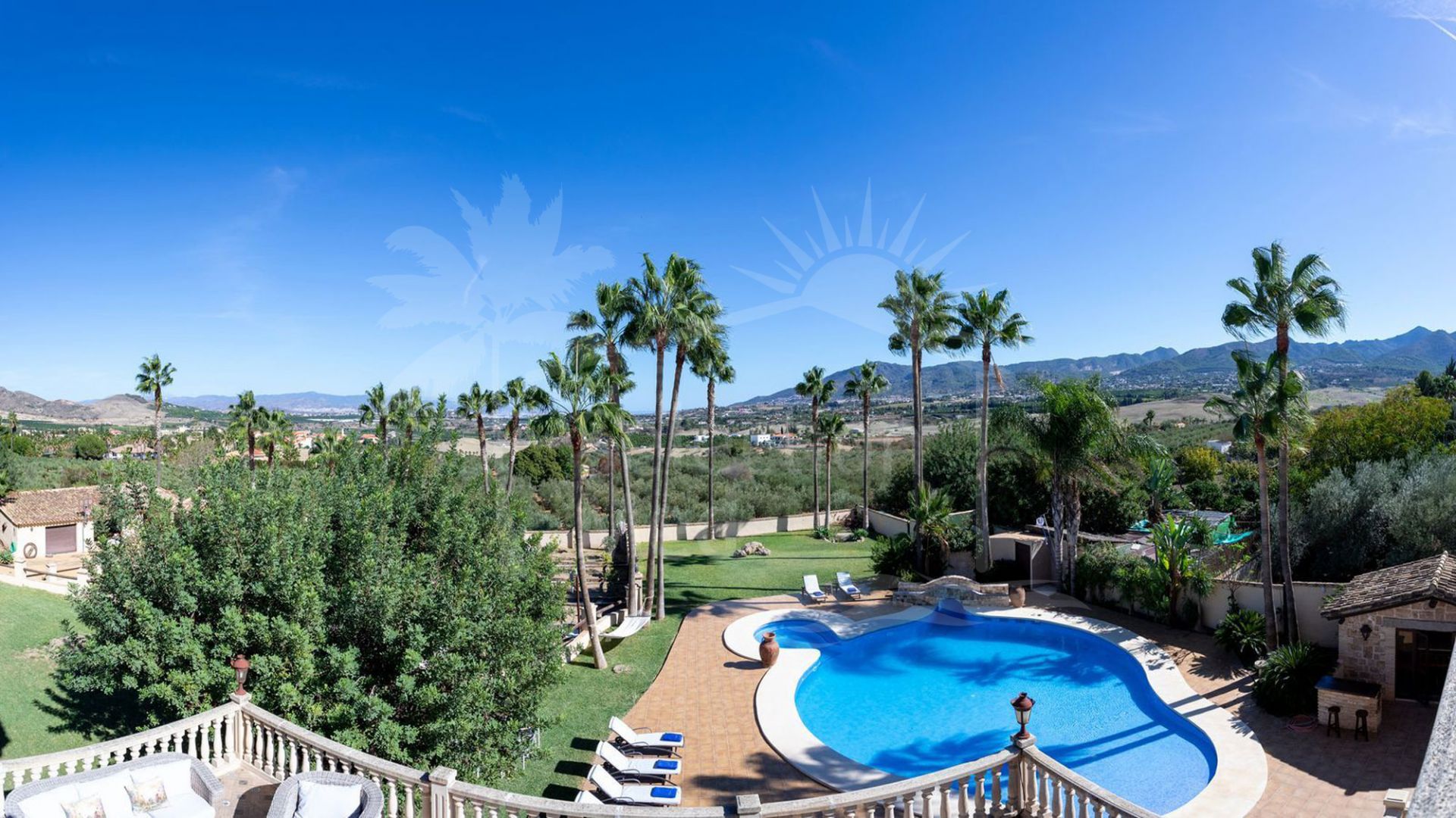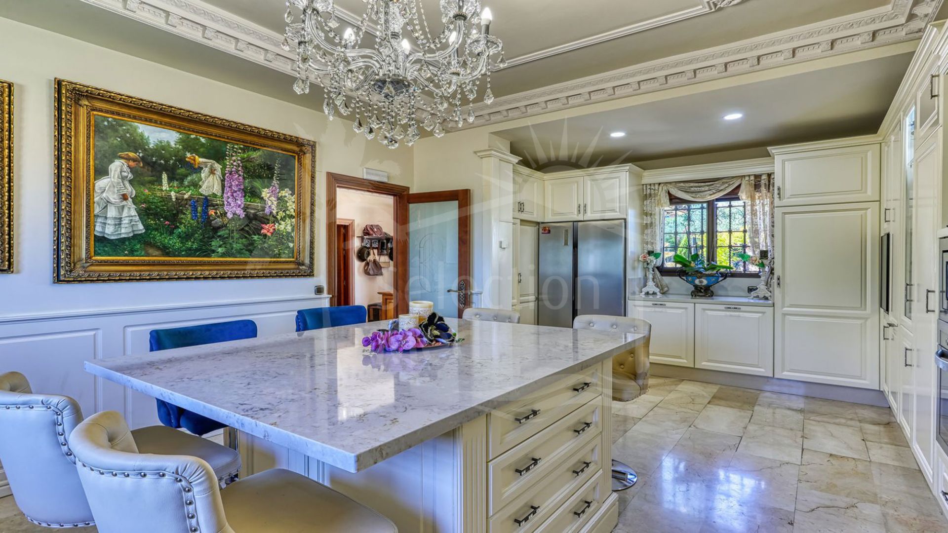 The estate also includes an extensive garden and a horse stable, as well as a separate apartment with a kitchen and bathroom. With two garages and storage rooms, this property has been built with high-quality materials and features underfloor heating and air conditioning.