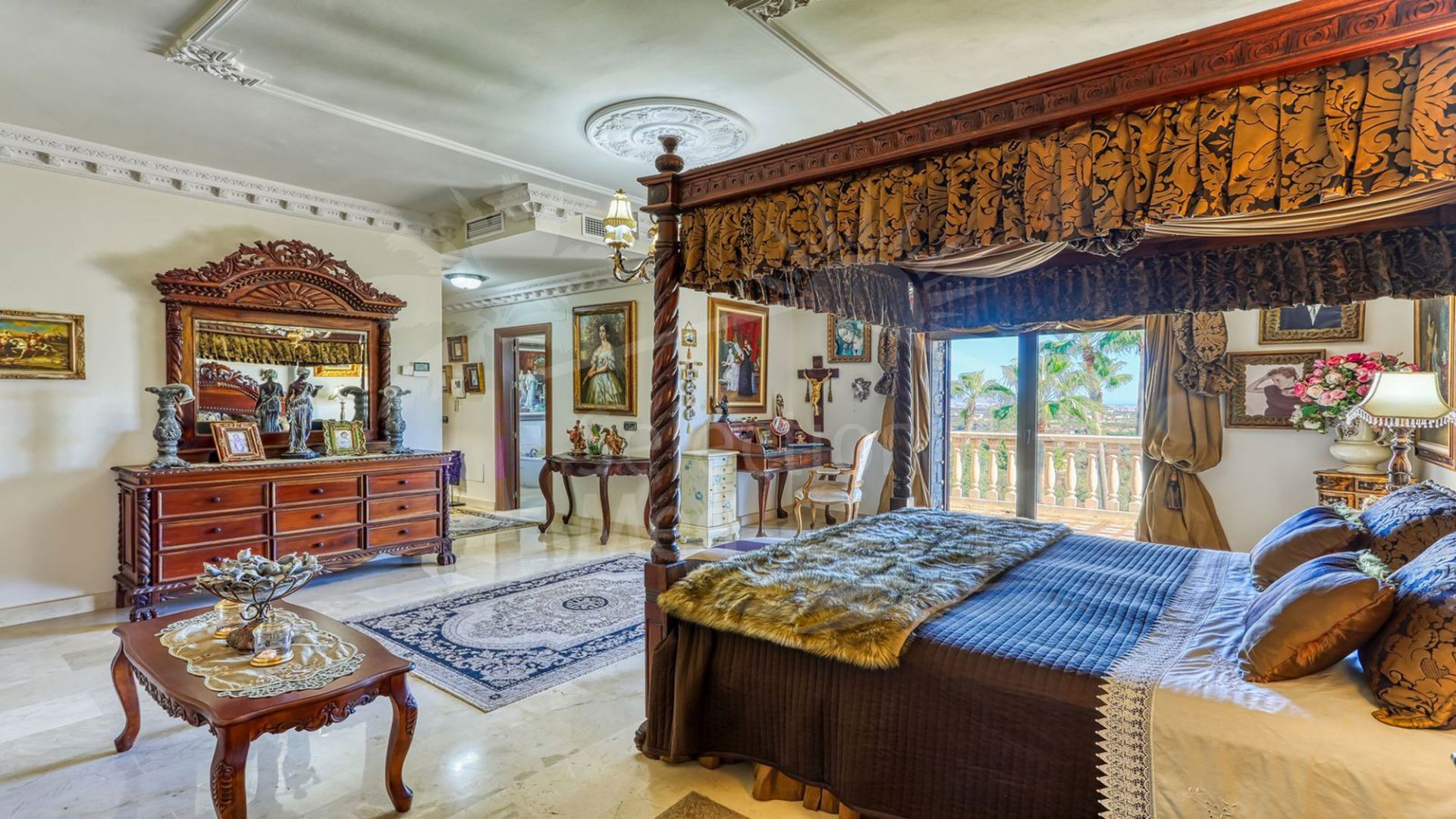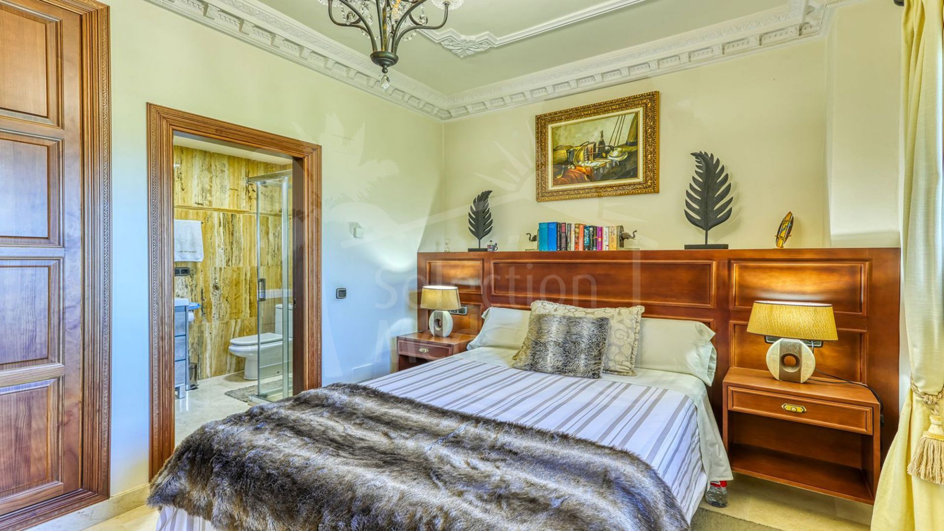 The leisure area includes a games room with access to an open terrace, perfect for enjoying the Mediterranean climate. On the first floor, there is a spacious master bedroom suite with a dressing room and access to an office in the tower. There are also two additional bedrooms, each with its own en-suite bathroom.