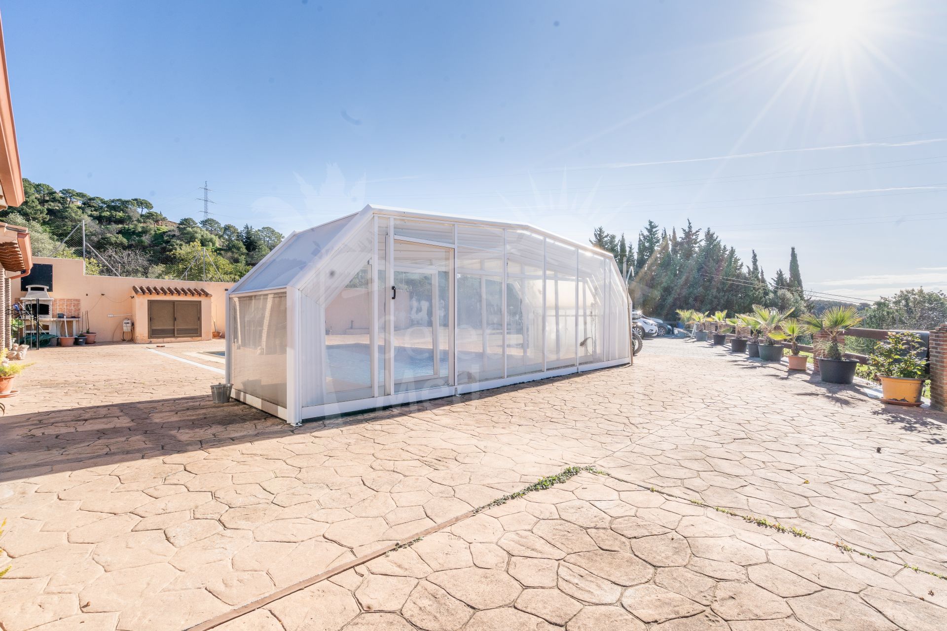 This villa is located in La Pantoja, Estepona Hills, on a large gated plot with lots of uncovered parking space. It’s quiet, green, and private — the kind of place where life feels a bit calmer.