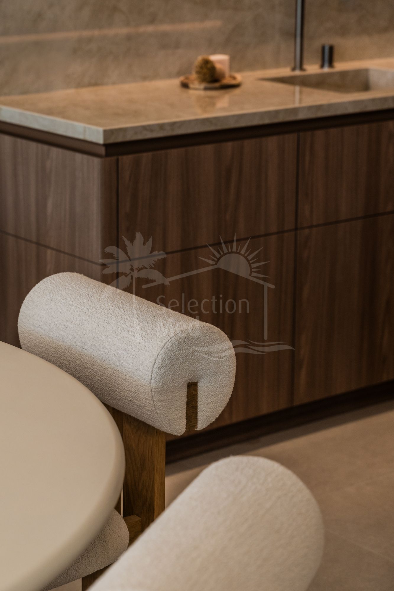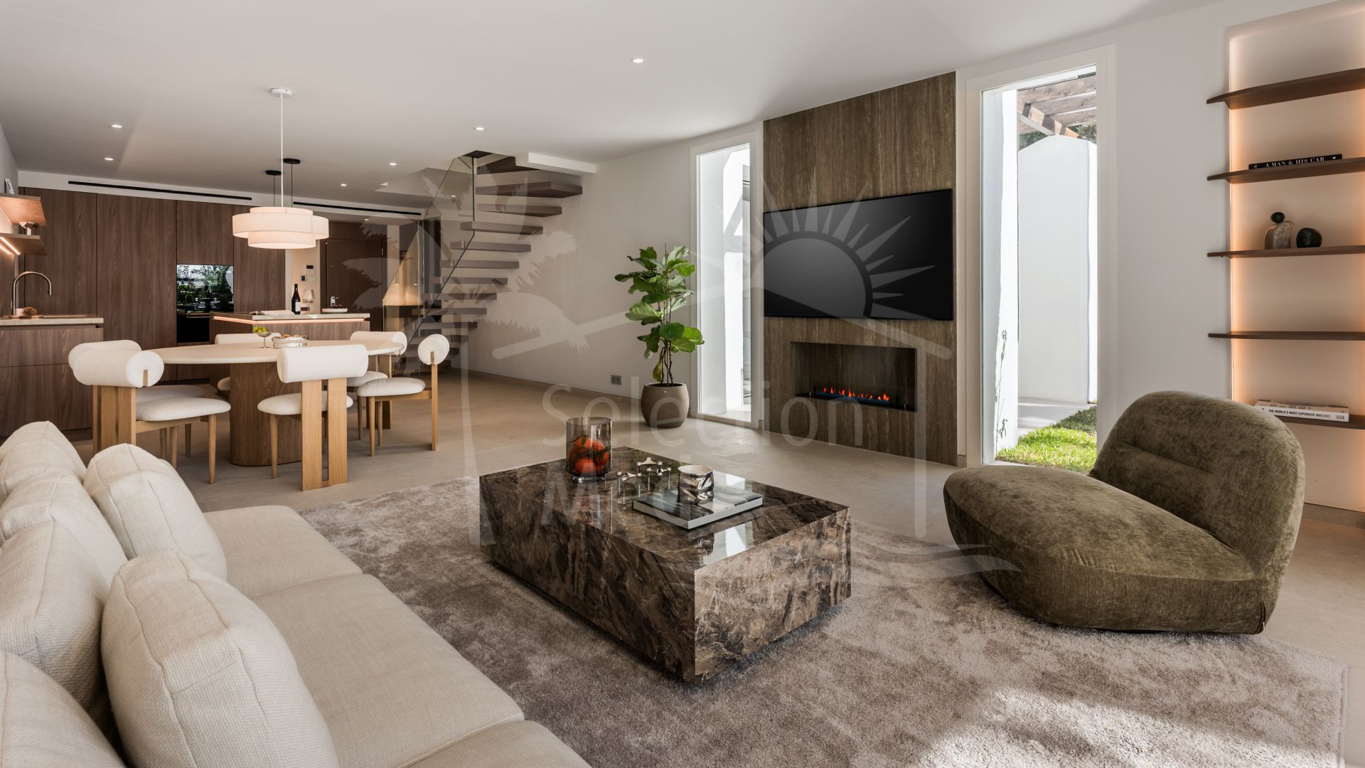 Inside, the villa showcases a sophisticated, high-end interior design with carefully selected materials, fixtures, and finishes.