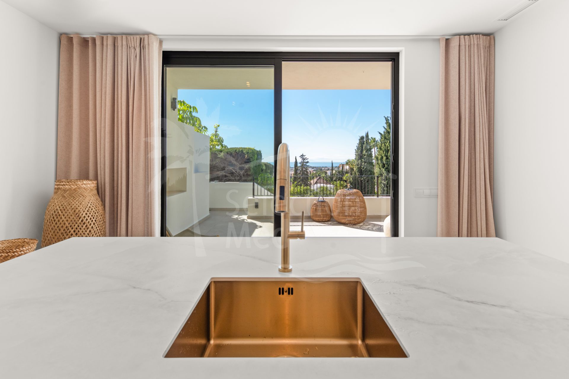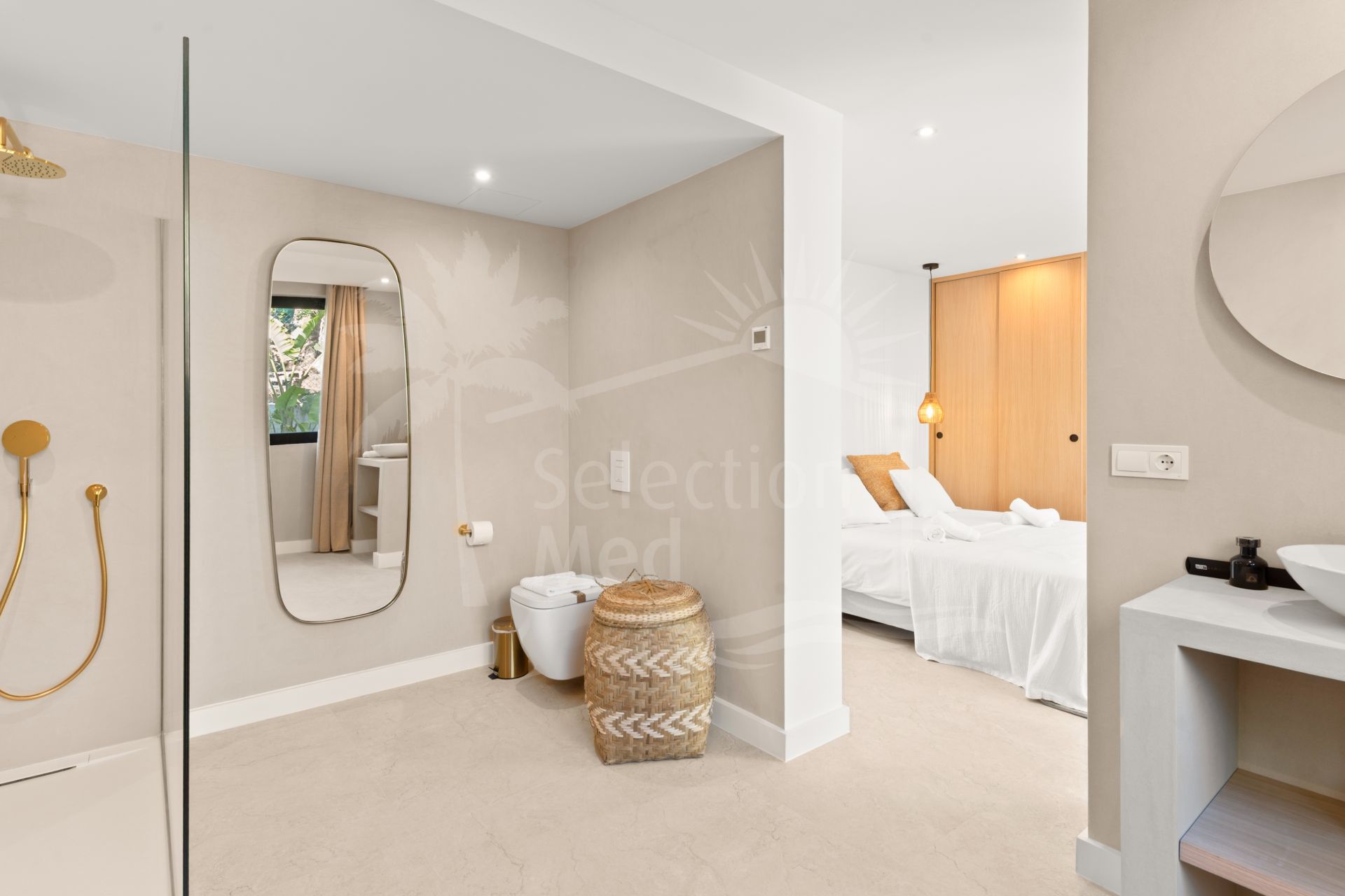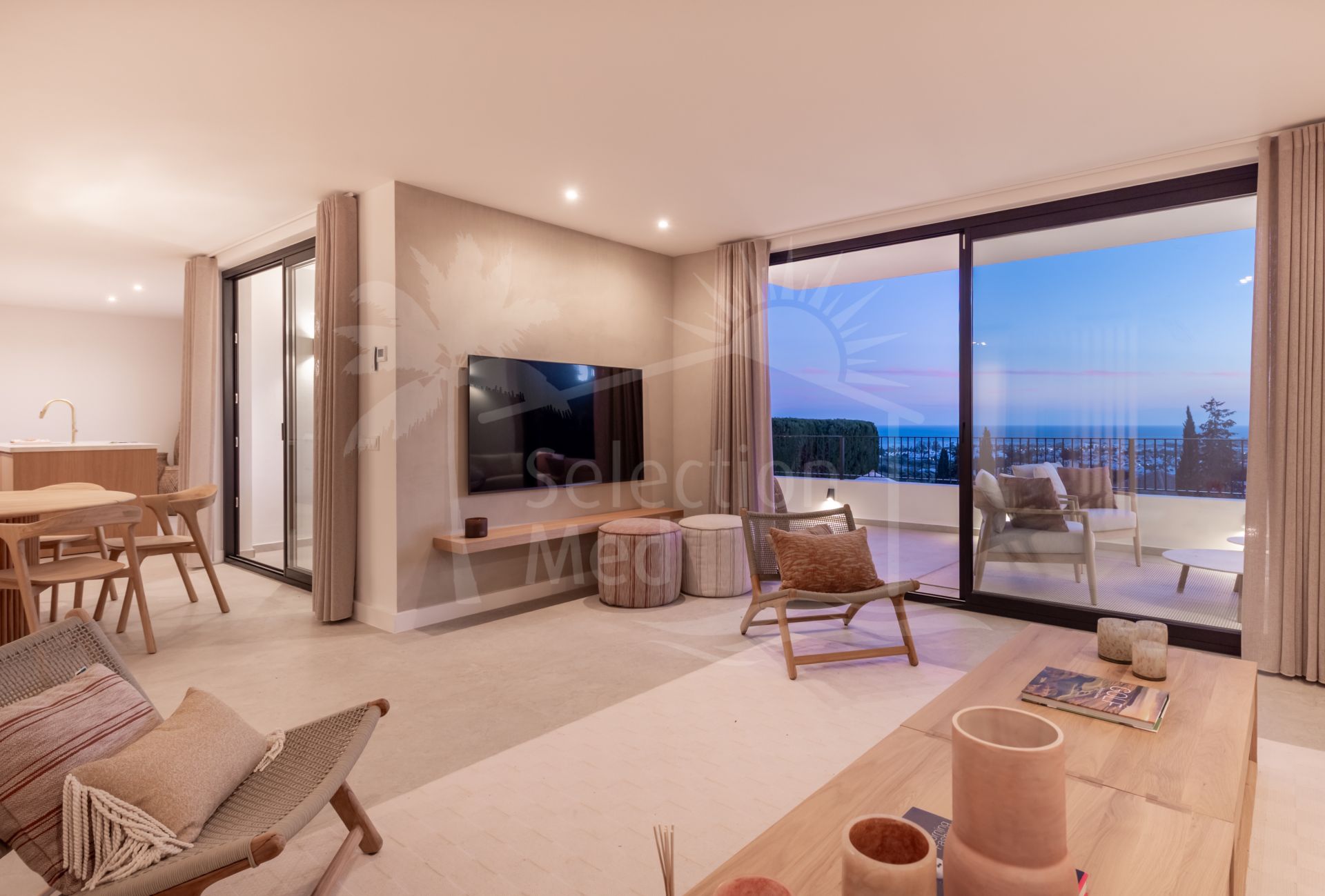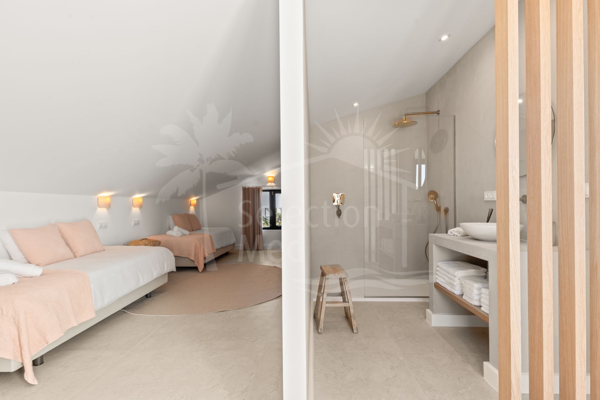 The property offers four spacious bedrooms, each with its own en-suite bathroom, ensuring privacy and comfort for both residents and guests. The main living area is filled with natural light and opens directly onto generous terraces, where the breathtaking sea views can be enjoyed from morning until sunset.