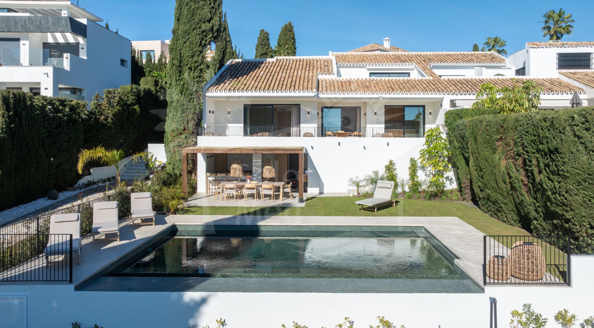 Situated just minutes from golf courses, beaches, international schools, Puerto Banús, and Marbella, the property offers both tranquility and excellent accessibility. This turnkey villa is an ideal choice as a permanent residence, holiday home, or investment in one of the Costa del Sol’s most desirable locations.
