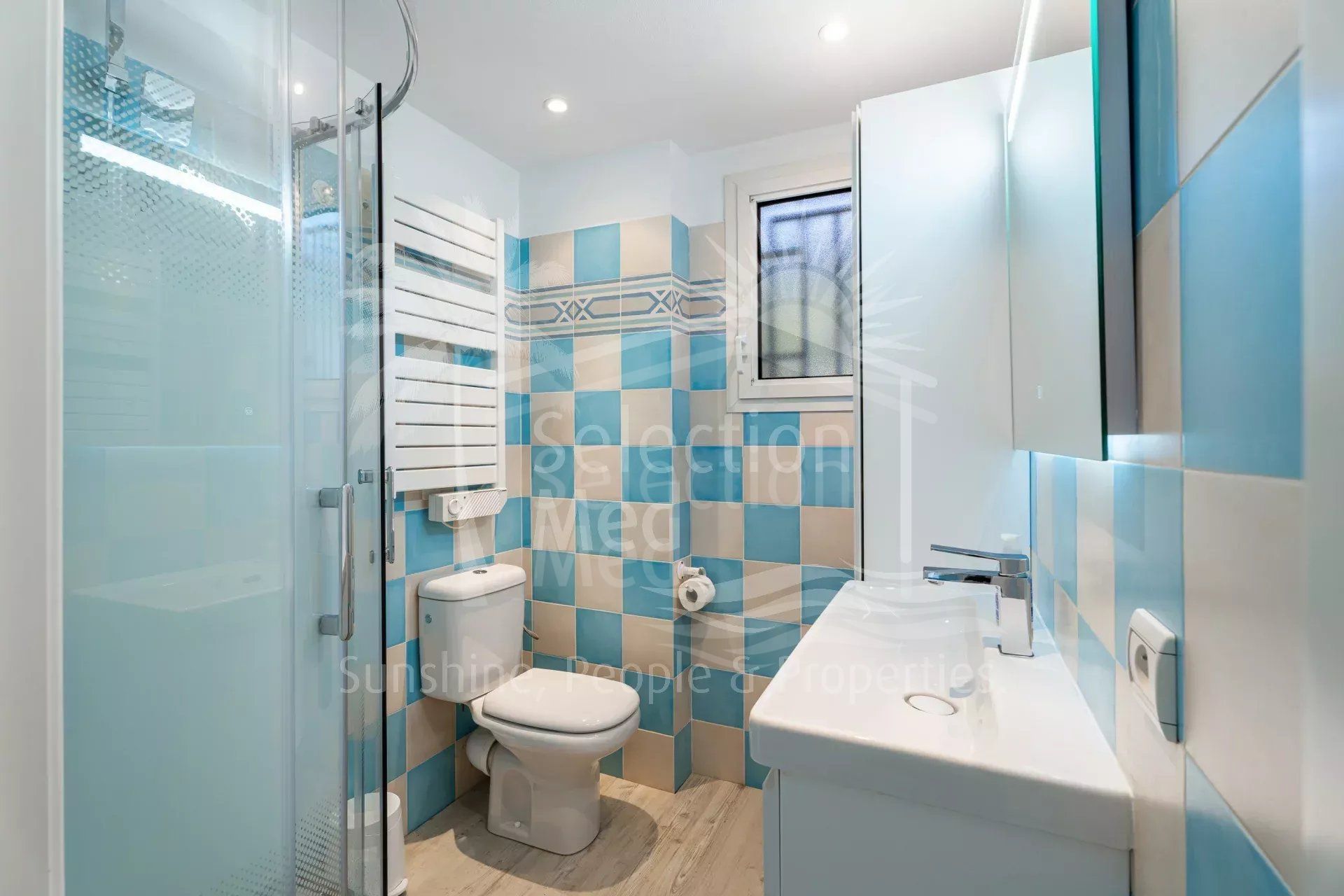 A corridor leads to the night area, with three bedrooms, two of which have large windows overlooking the garden. A second shower room with toilet is located close to the bedrooms.