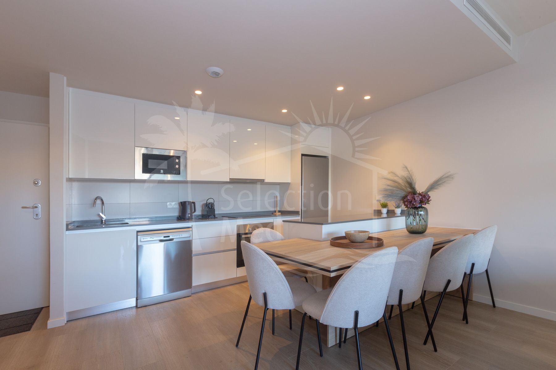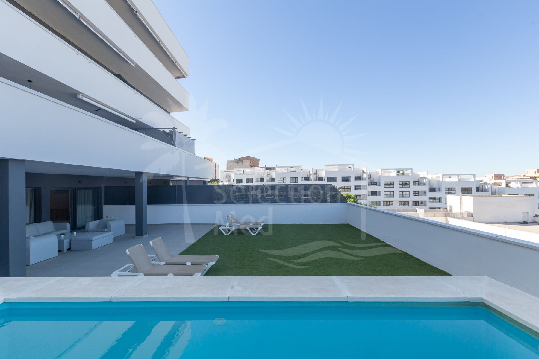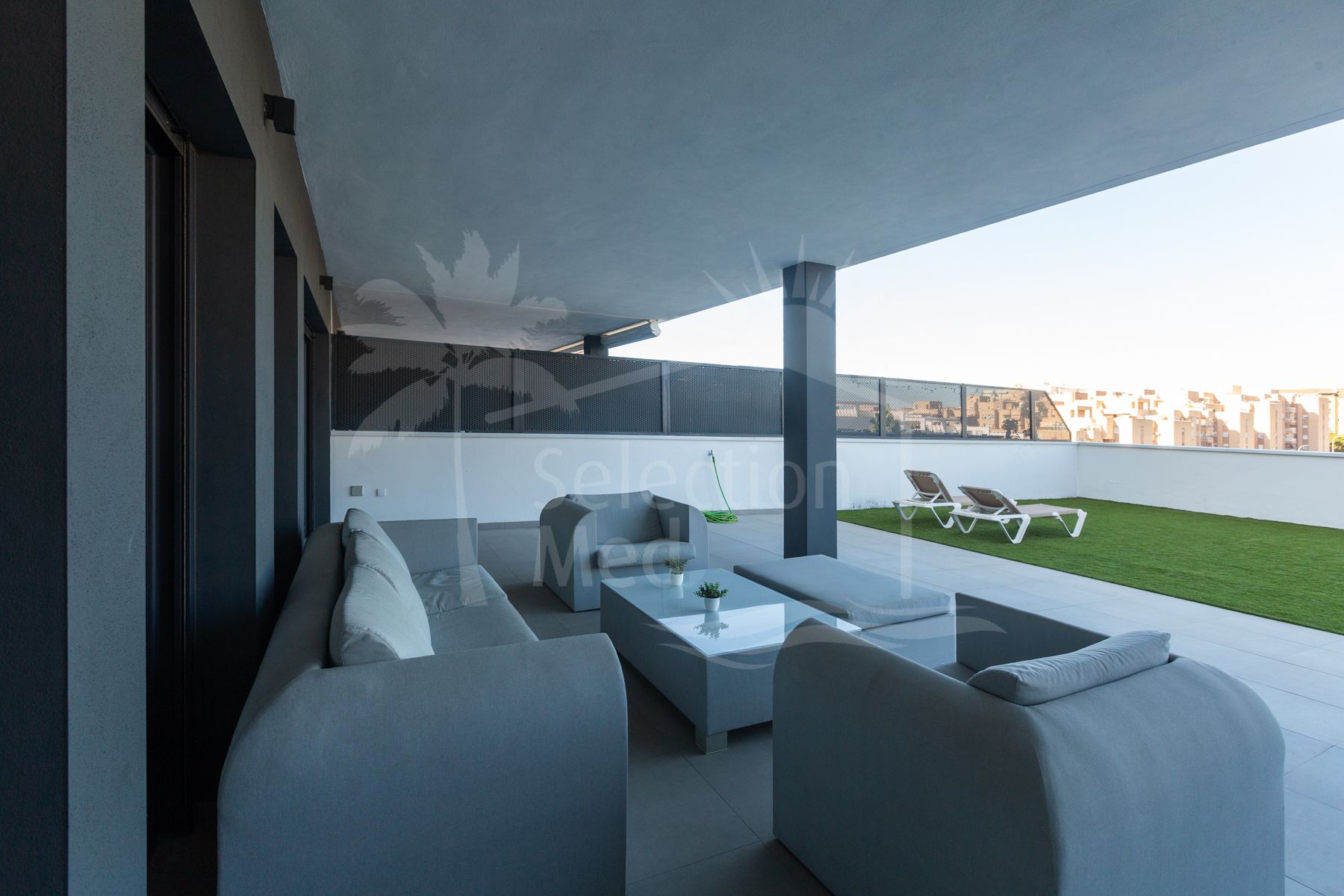 The home has 3 bedrooms with its enormous and exclusive terrace of almost 200 m2 and is located on the fourth floor. It has a built-up area of 115 m2 plus a spectacular 193 m2 terrace and private pool. The unique feature is that all bedrooms and the living room have direct access to the terrace. There, we can enjoy a covered terrace for winter days and a much larger outdoor terrace with a private pool for summer days. The kitchen is open to the living room, providing continuity and lighting. It is furnished and equipped with all the latest equipment. In addition to the 3 bedrooms and 2 bathrooms (one en-suite), there is also a room reserved for laundry.