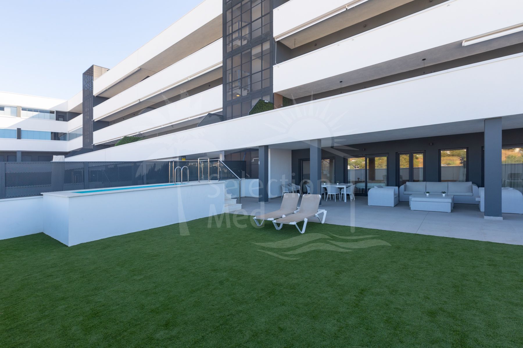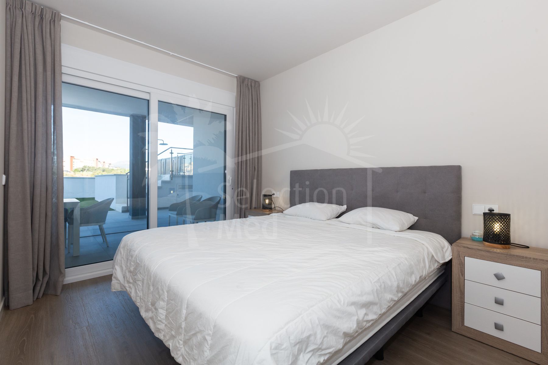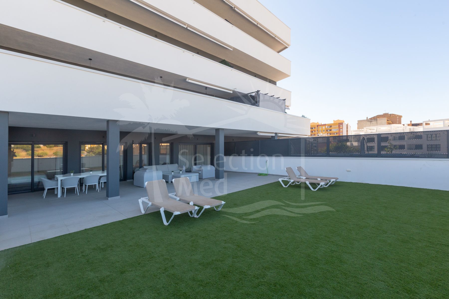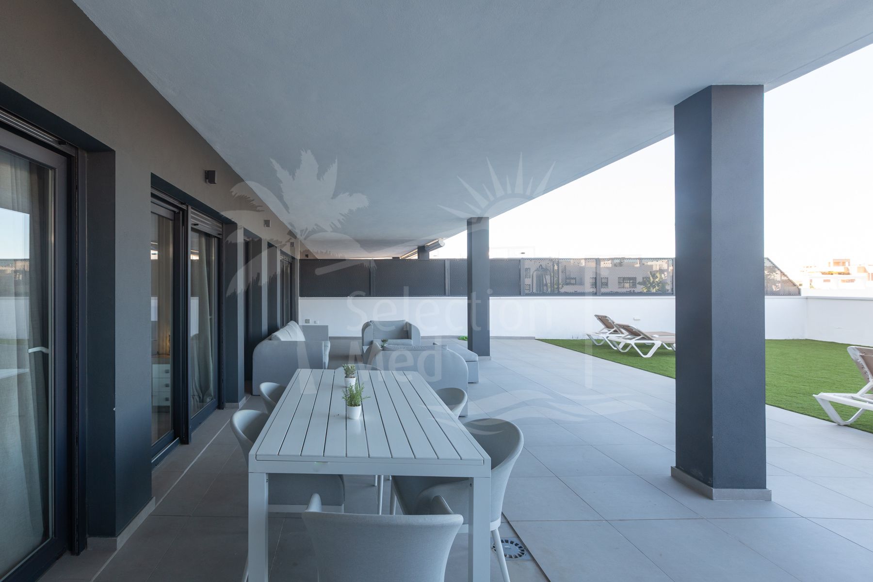 The home has 3 bedrooms with its enormous and exclusive terrace of almost 200 m2 and is located on the fourth floor. It has a built-up area of 115 m2 plus a spectacular 193 m2 terrace and private pool. The unique feature is that all bedrooms and the living room have direct access to the terrace. There, we can enjoy a covered terrace for winter days and a much larger outdoor terrace with a private pool for summer days. The kitchen is open to the living room, providing continuity and lighting. It is furnished and equipped with all the latest equipment. In addition to the 3 bedrooms and 2 bathrooms (one en-suite), there is also a room reserved for laundry.