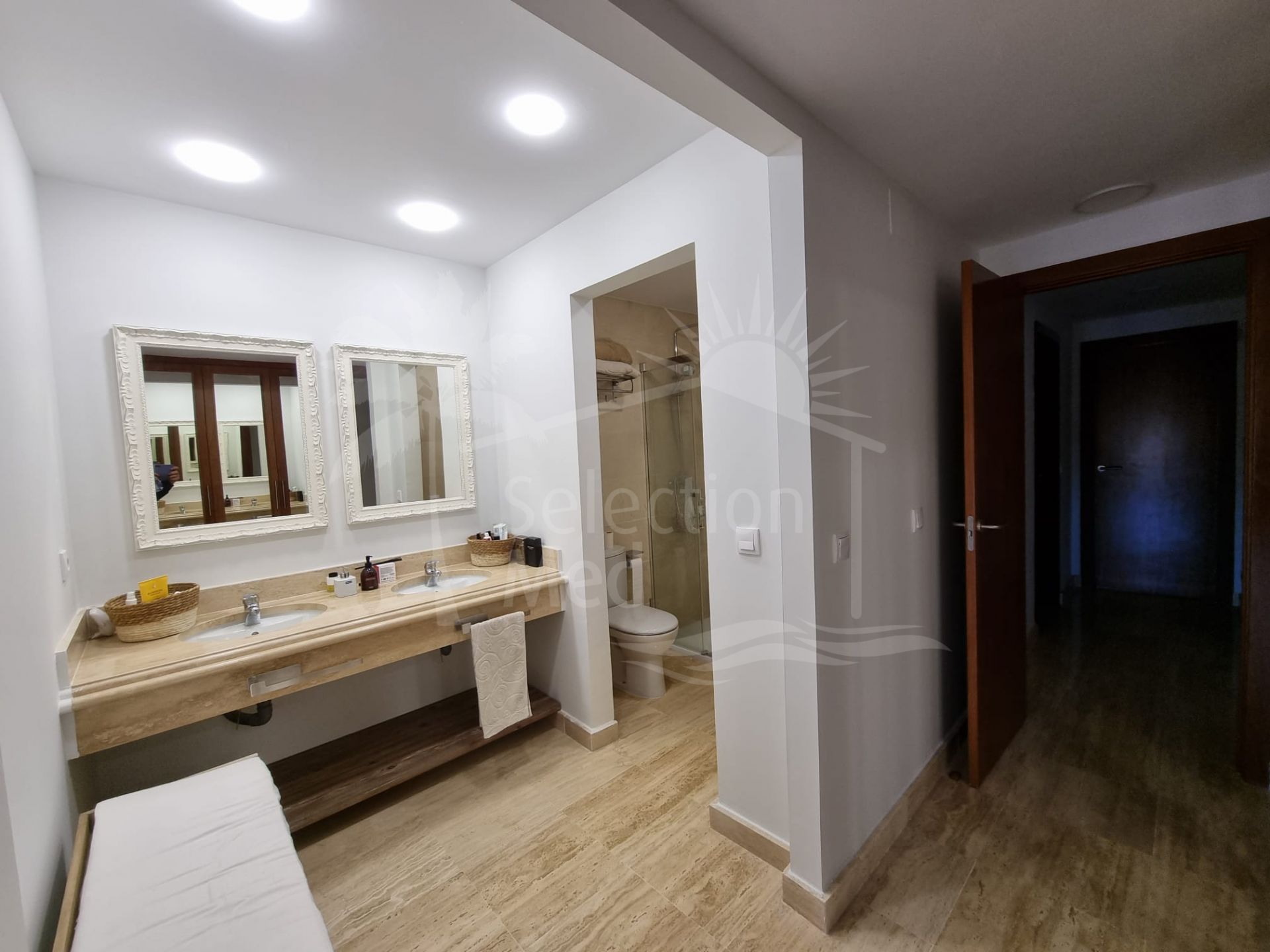 2 full bathrooms, the main one en suite with an independent washbasin area.