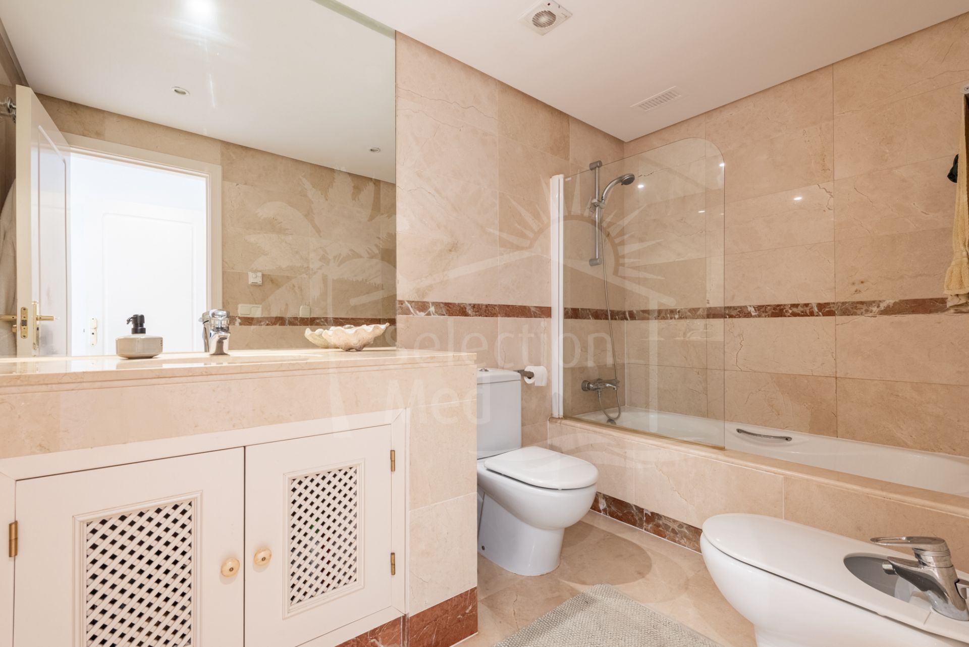 This fantastic property is offered partly furnished and includes two underground parking spaces and two storage rooms. The exclusive Bahía Alcántara community features lush tropical gardens, tranquil ponds, a large swimming pool, 24-hour security, and is perfectly located just 50 meters from the beach and a pleasant 10-minute walk to the heart of San Pedro de Alcántara with all its amenities.