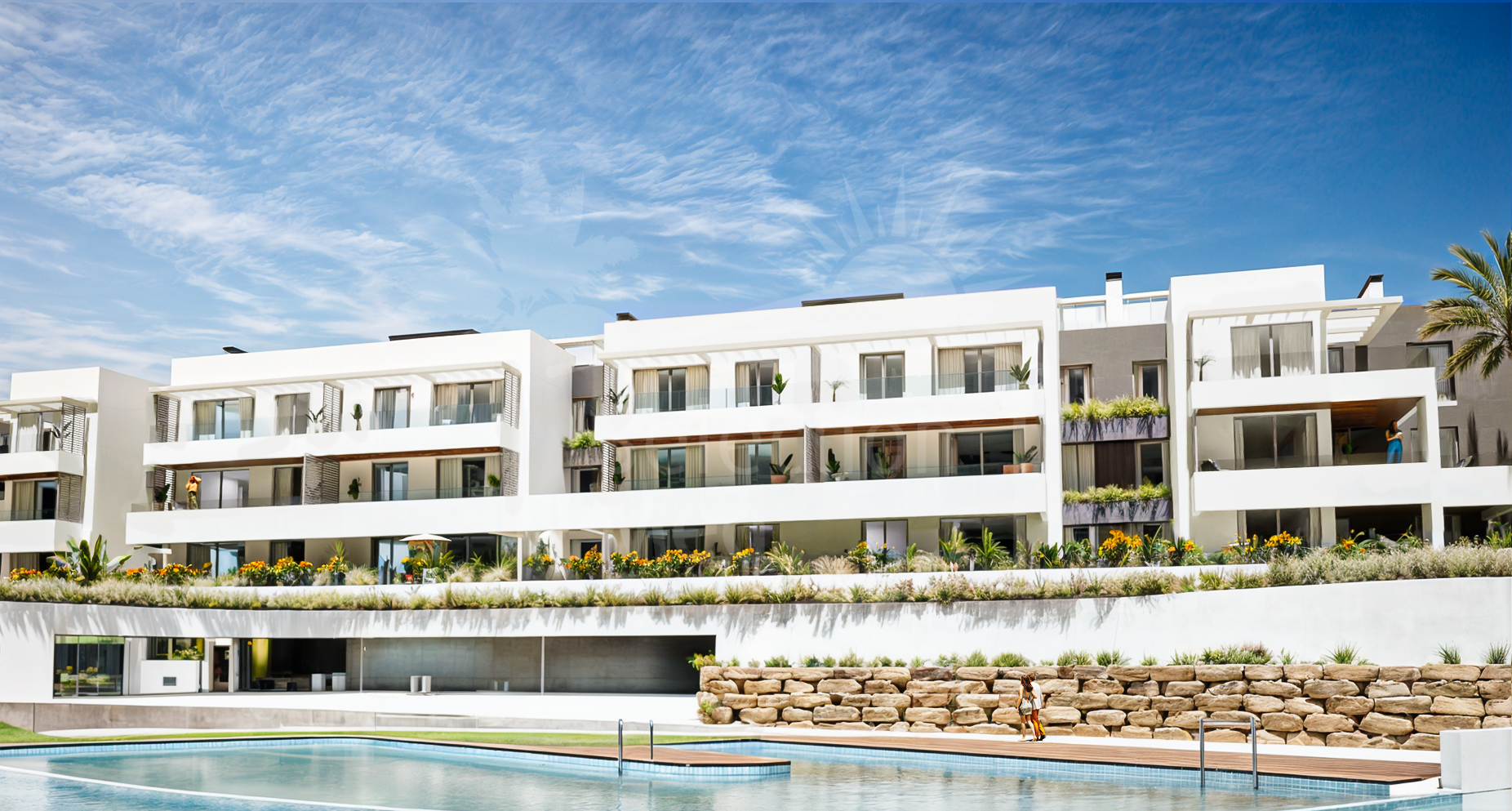 Great opportunity to buy a brand new spacious apartment, with garden in an exclusive development of only 45 properties set within a gated community on an elevated plot overlooking the famous resort of Sotogrande, with panoramic views.