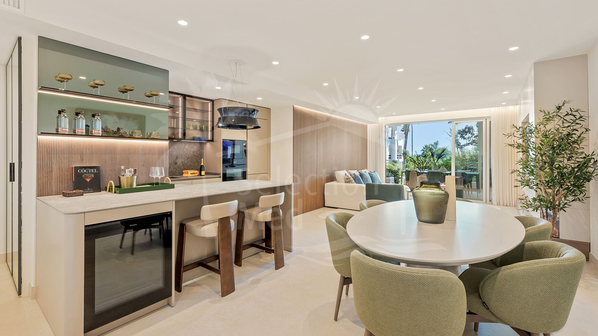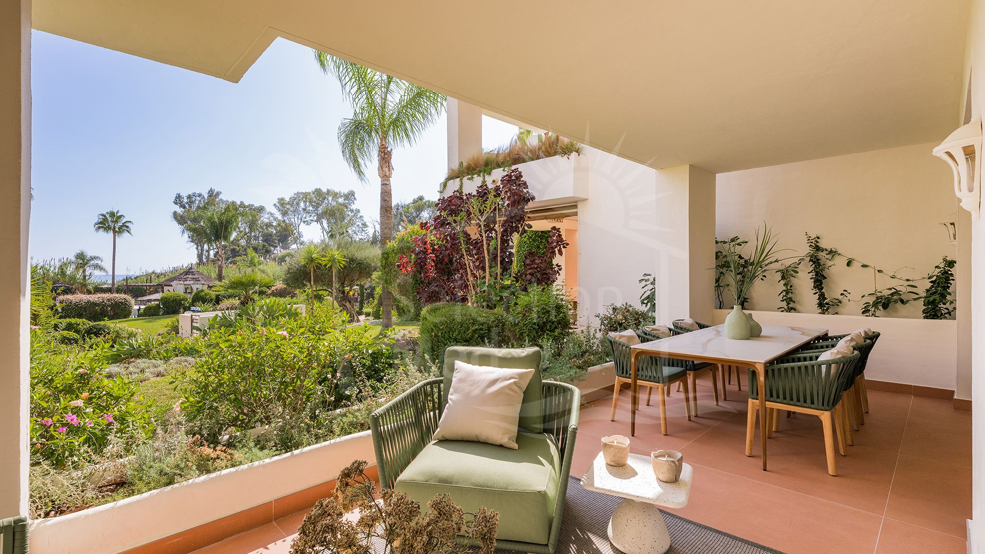 This elegant ground-floor residence combines comfort, style, and a relaxing atmosphere. From the apartment you can step directly onto a spacious private terrace that opens onto the community’s lush gardens, creating a seamless indoor-outdoor living experience. The tranquil surroundings of the complex make it an ideal place to unwind while still being close to the vibrant coastal lifestyle.