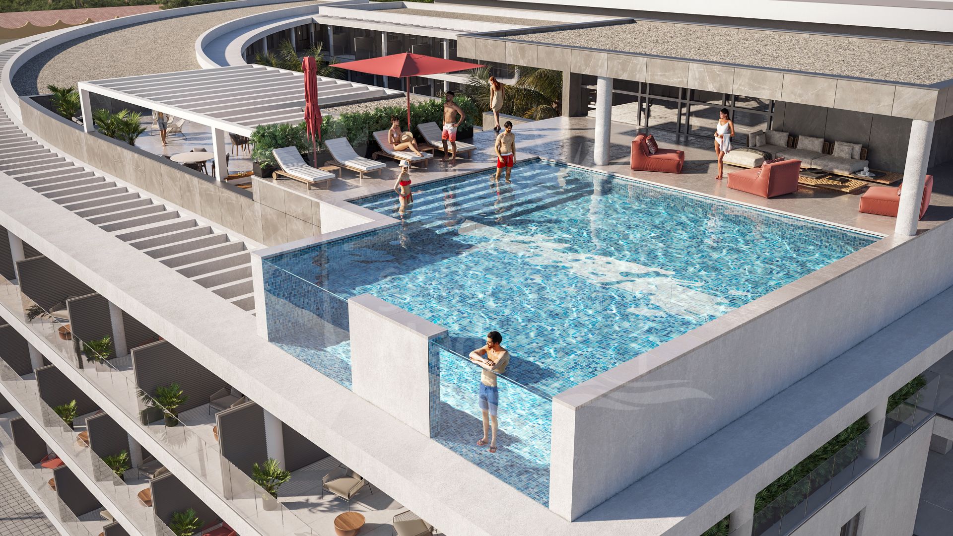 The complex will feature high-level common areas, including swimming pools, spa, gym, wellness center and gourmet restaurant, as well as a spectacular rooftop bar with an infinite glass pool, from which you can enjoy open views of the Atlantic Ocean and unforgettable sunsets.