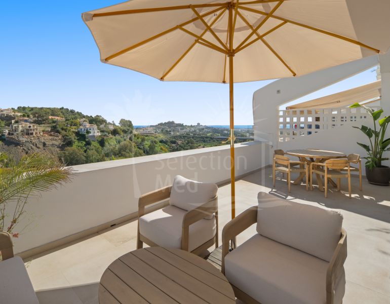 Welcome to this fully renovated penthouse in Los Arcos de La Quinta, an exclusive and tranquil urbanisation in Benahavís, renowned for its elevated position and breathtaking panoramic views. This elegant three-bedroom, three-bathroom residence with an additional guest toilet offers 174 m²...