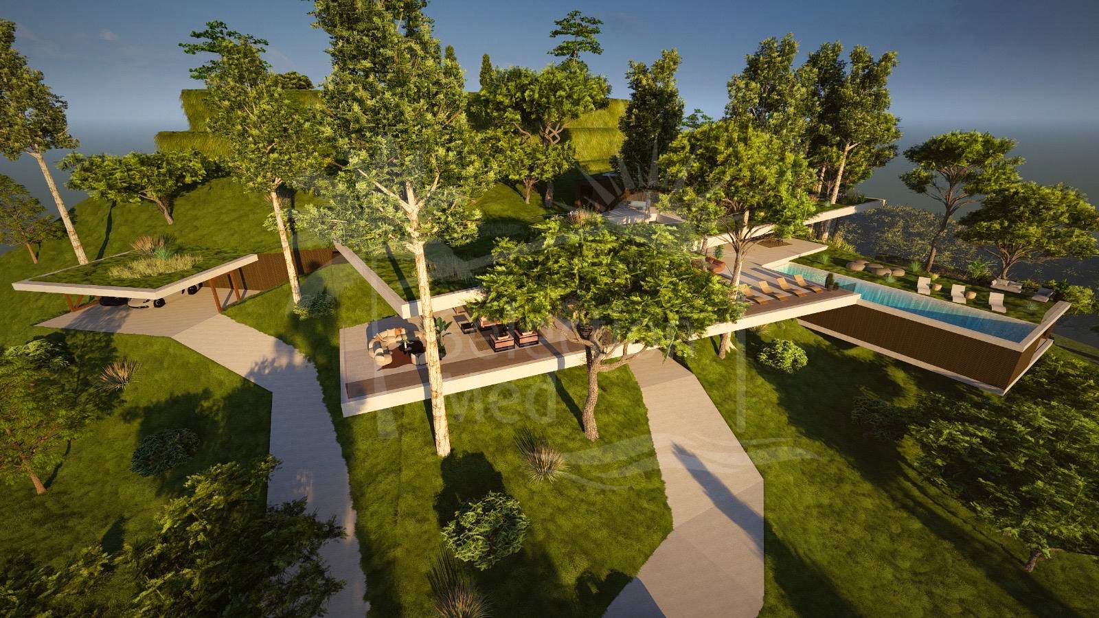 The main level offers expansive open-plan living areas that merge effortlessly with wide terraces, ensuring constant visual and physical connection with the surrounding landscape. The kitchen and dining area have been positioned to make the most of natural light throughout the day, while a peaceful patio garden brings nature directly into the heart of the home.
