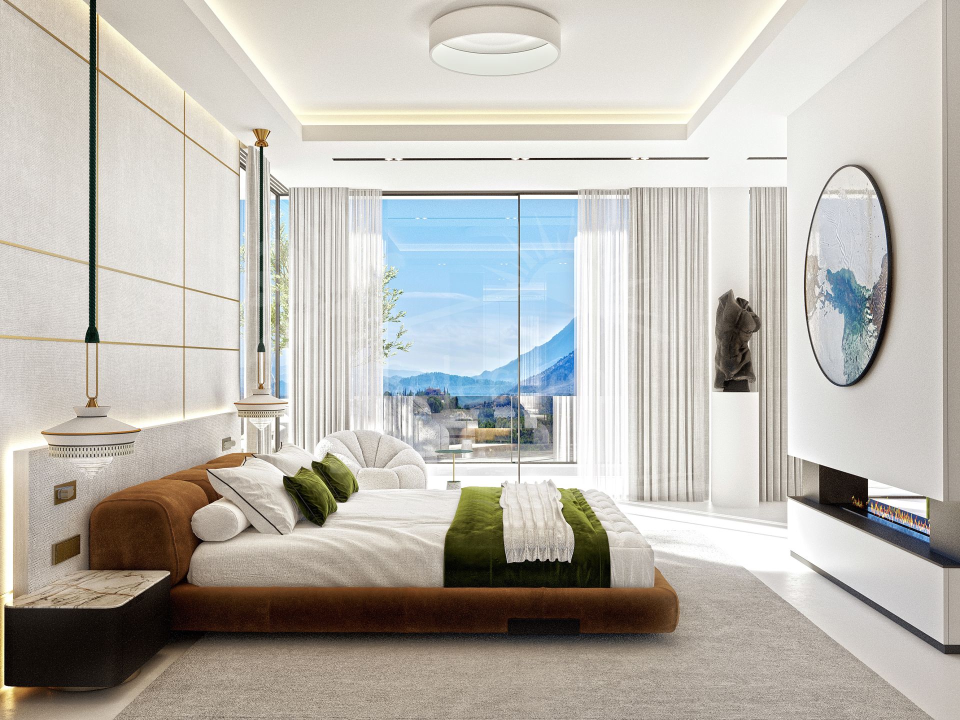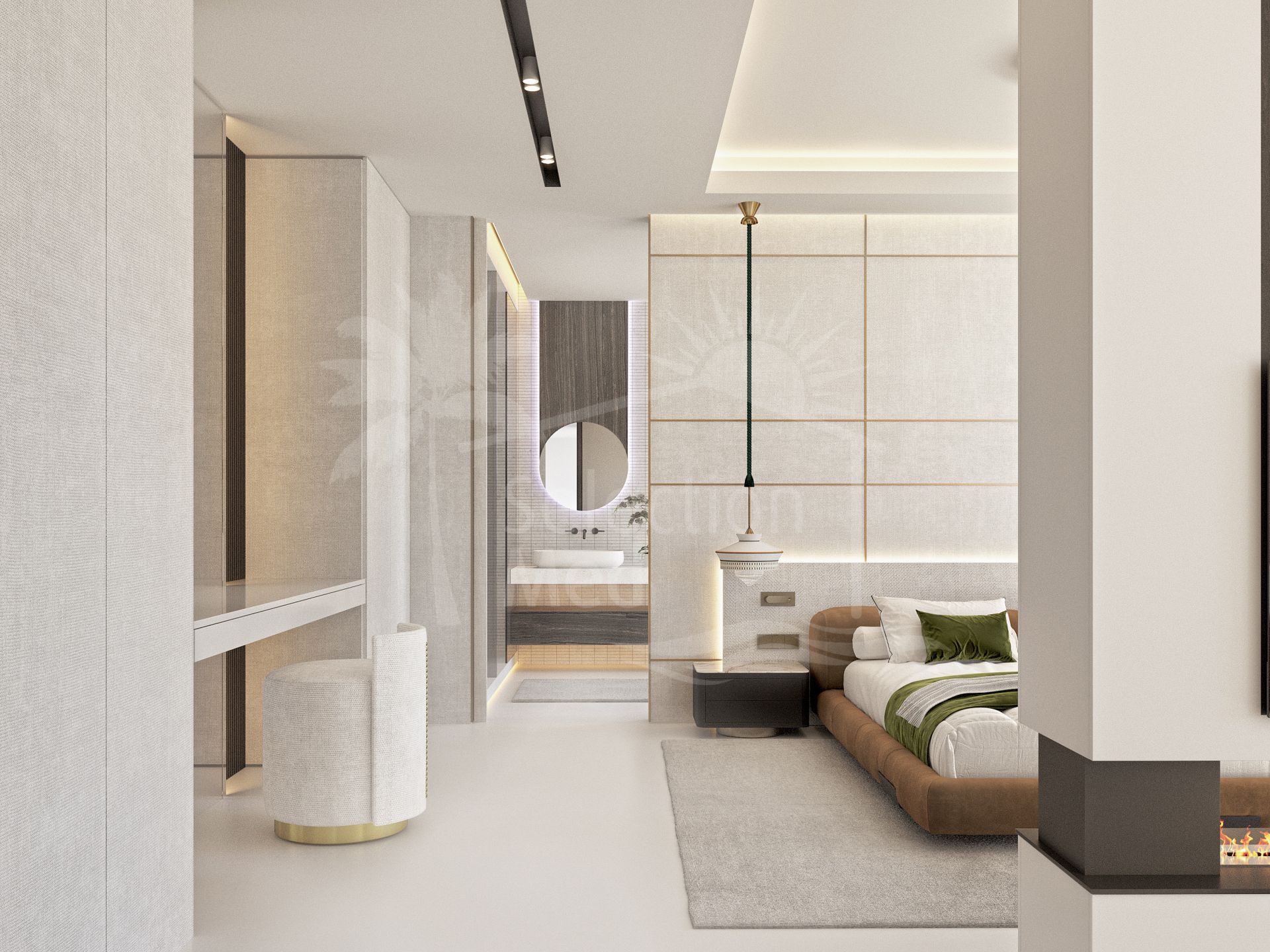 The home features three spacious en-suite bedrooms, two with private terraces. The master suite is conceived as a five-star hotel retreat, complete with its own lounge area, fireplace, and walk-in wardrobe. Built across three levels, the villa includes a large, customisable basement, ideal for an entertainment room, gym, home office, or cinema—tailored to your lifestyle.