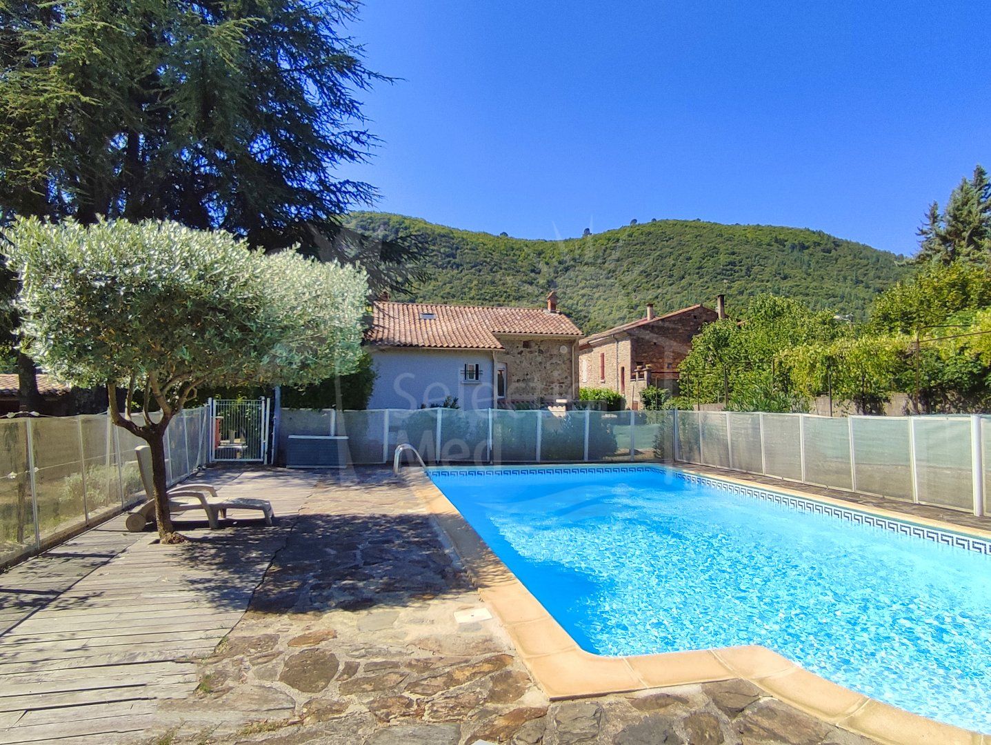 Located in a peaceful and picturesque setting just outside the village centre, this beautifully restored stone residence – dating from around 1900 – offers a harmonious blend of traditional charm and modern comfort. With local shops, cafés, and amenities close by, and the scenic Cévennes hills on your doorstep, it's an ideal base for nature lovers, hikers, and cyclists. The main living area is situated on the first floor, where light floods into the open-plan living and dining space, creating a welcoming and airy atmosphere. A contemporary kitchen integrates seamlessly into the space, while an ensuite bedroom and a separate WC complete this level, offering both practicality and comfort. At garden level are three tastefully finished ensuite bedrooms all of which open onto an enclosed veranda, ideal for hosting additional guests. The top floor features three additional rooms along with a shower room and WC, providing further flexibility whether for family, workspace, or additional accommodation. Outside, a well-established garden, thoughtfully planted with Mediterranean greenery, creates a serene and private outdoor retreat. A gravel driveway leads to three covered parking spaces, ensuring practicality for everyday living or guest arrivals. To the side of the house, a roofed summer kitchen – known as a cuisine d'été – offers an ideal space for outdoor dining and long lunches in the shade. The 10 × 5 metre swimming pool is perfect for cooling off in the warmer months, and a private well (forage) provides water for maintaining the garden with ease. This property is particularly well-suited for anyone seeking a home with independent guest spacewhether for visiting friends and family, or with a view to seasonal rental income. Its combination of stone-built elegance, updated interiors, and generous outdoor areas makes it an appealing find in this sought-after part of southern France. A great base for many popular towns and villages such as St Ambroix, Les Vans, Barjac – and surrounded by the dramatic landscapes of the Cévennes National Park, this is a home that invites both relaxation and adventure. Whether you're looking for a family residence, a lifestyle change, or an investment with income potential, this versatile property deserves your attention.