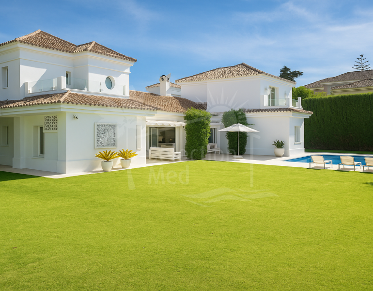 This beautifully renovated villa in Sotogrande Costa’s sought-after B-Zone offers modern elegance and spacious living. The property features five ensuite bedrooms, including two luxurious master suites, providing comfort and privacy for the whole family. At the heart of the home is...