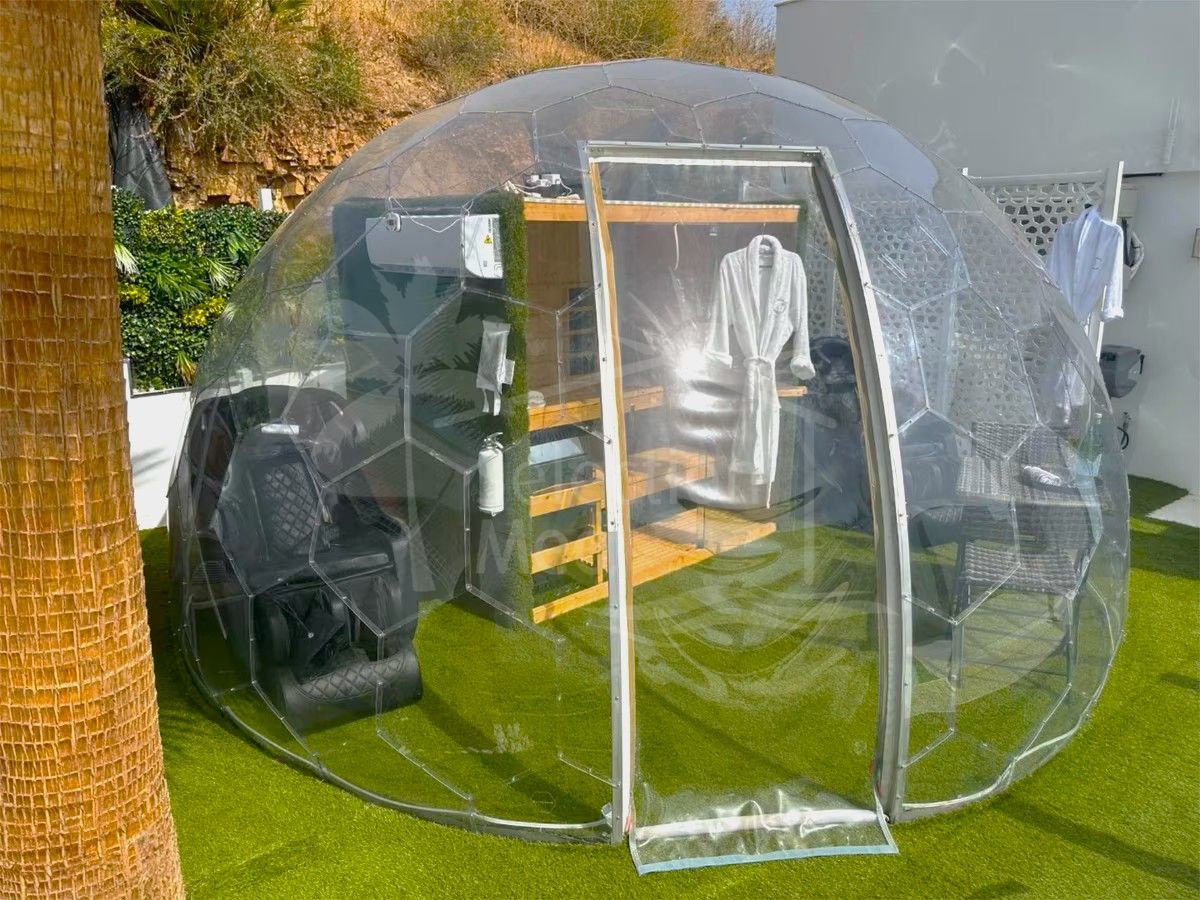 Exclusive spa area with sauna (infrared + heated stones), ice tub, massage chairs & spa bar