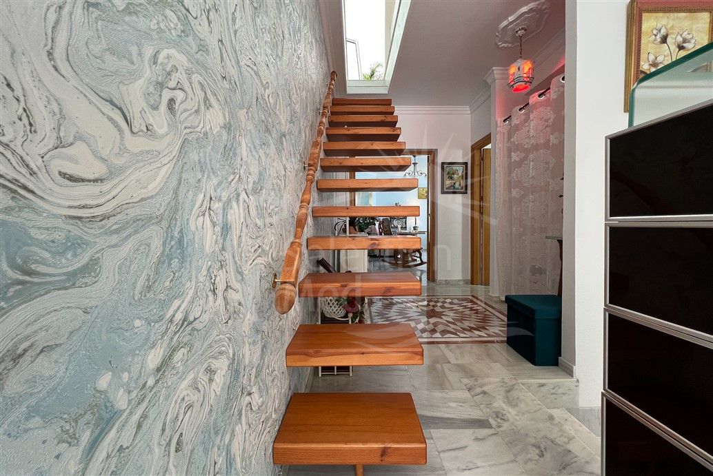 Located in the beautiful area of Calahonda, Mijas Costa, Málaga, this spectacular semi-detached chalet offers an exceptional combination of luxury, comfort, and convenience within one of the Costa del Sol’s most sought-after residential enclaves. Set within a private urbanisation of only a few homes, the property enjoys over 20,000 m² of beautifully maintained communal gardens, creating a peaceful and exclusive environment. Residents benefit from security camera surveillance, a communal swimming pool overlooking the Cabopino Golf Course, and easy access to renowned restaurants, golf courses, and local amenities. Excellent transport connections place Marbella and Fuengirola just minutes away, while Málaga International Airport is within a short drive.