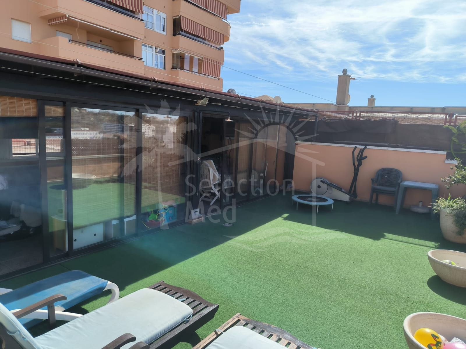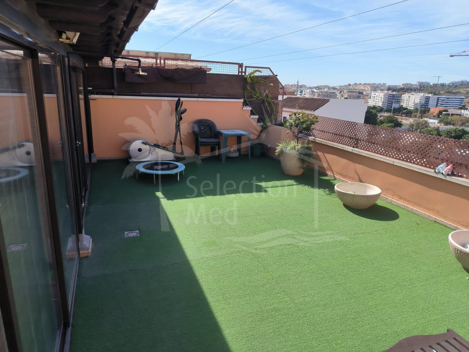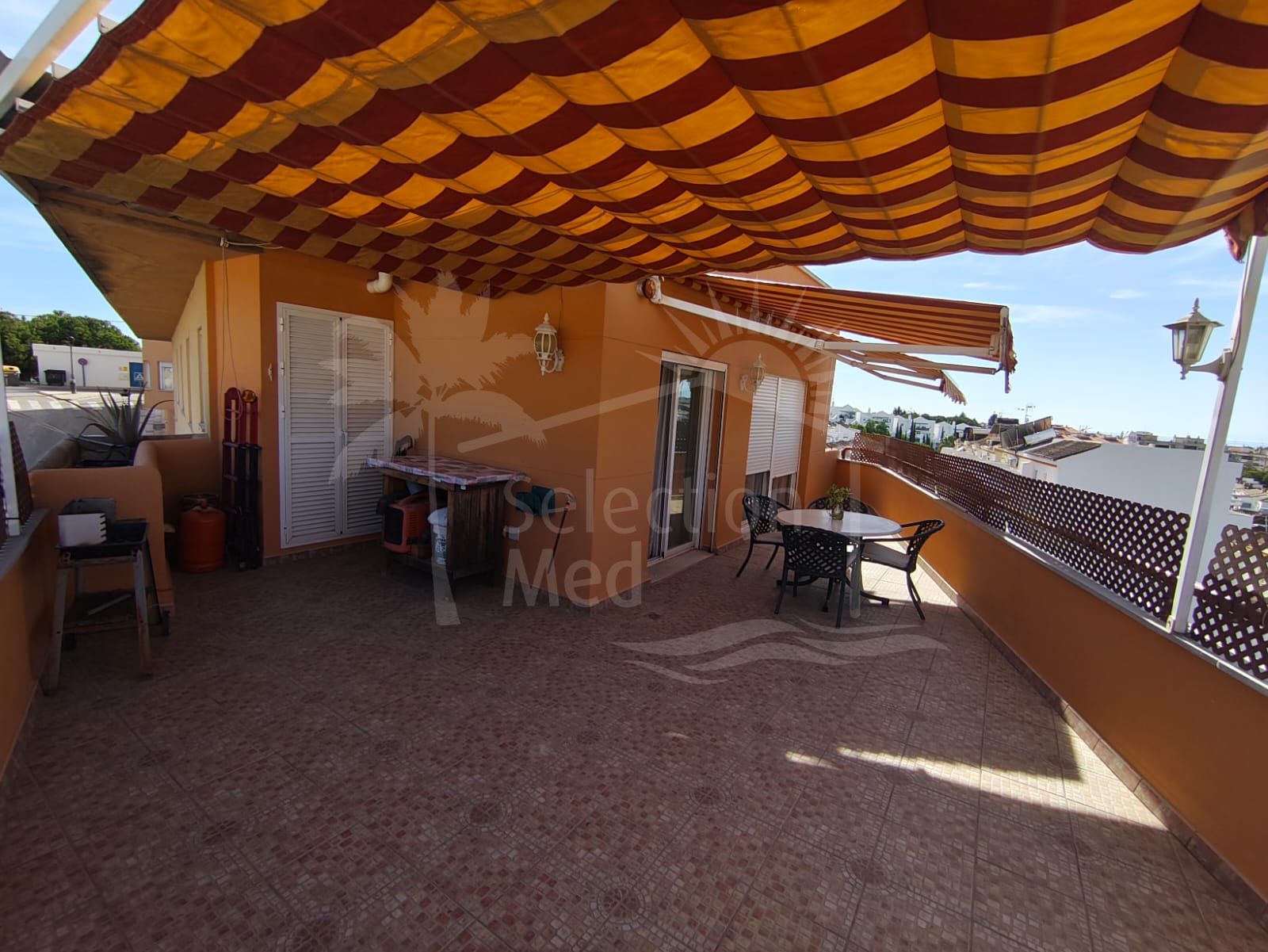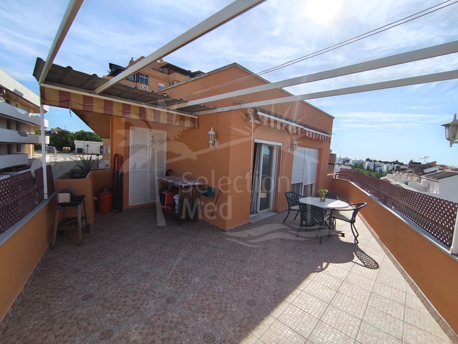 Discover this spectacular penthouse apartment in the desirable Calvario neighbourhood of Estepona, on the enchanting Costa del Sol. Offering unparalleled privacy, tranquillity, and convenience, this single-level gem boasts no stairs and no surrounding neighbours, ensuring a serene retreat in a well-connected, family-oriented area. Just a five-minute stroll from Estepona's picturesque old town—with its charming boutiques, authentic tapas bars, and vibrant markets—this property is ideally positioned. A leisurely 10-minute walk leads to the pristine Playa de la Rada beach and the lively marina, while the expansive Parque del Calvario—Estepona's largest verdant oasis featuring cascading waterfalls, tranquil lakes, and shaded pergolas—provides perfect spots for family outings or relaxed jogs right nearby. Surrounded by excellent schools, supermarkets, restaurants, and the modern Felipe VI Auditorium, it combines peaceful suburban living with seamless access to the A-7 motorway for quick trips to Marbella or Málaga.