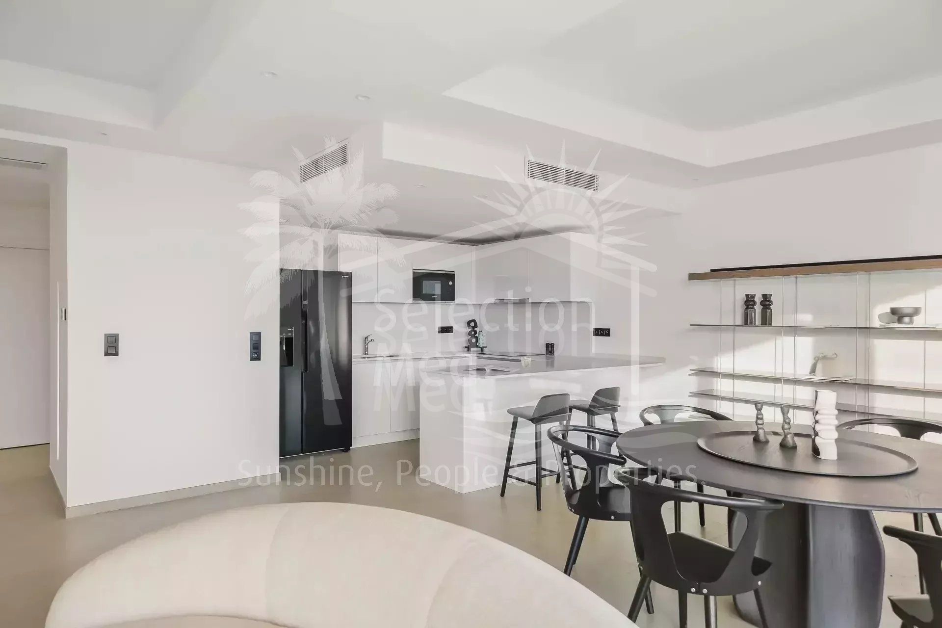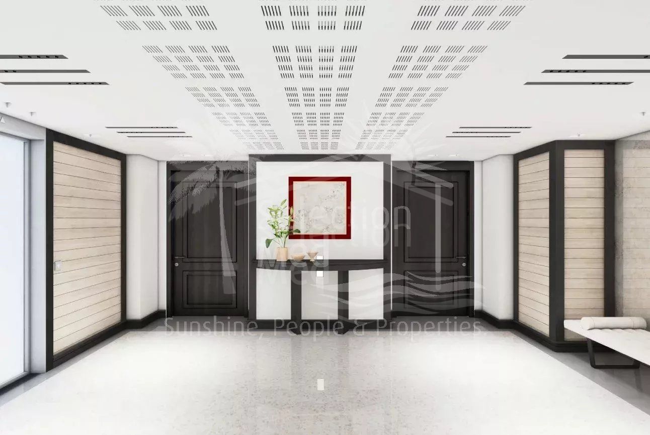 The south-facing reception area is bathed in natural light and offers 51.86 sqm of refined living space, opening onto a large, private terrace with no overlooking neighbours. A semi-open kitchen and dining area complete the setting, perfect for entertaining in complete serenity.