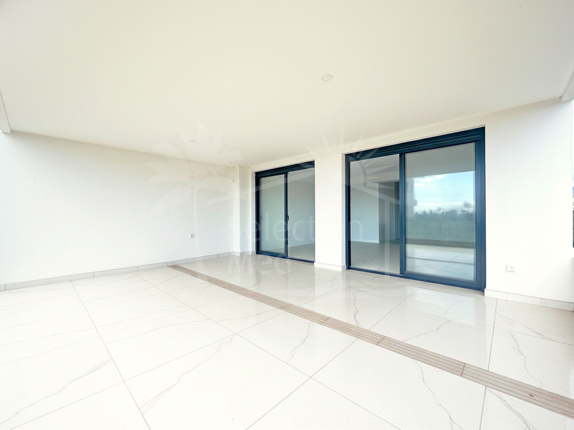 The apartment features a built area of 118.24 m², with 103.03 m² of interior space and an impressive 47.92 m² private terrace, seamlessly extending into a private garden. Thanks to its south-east orientation, the home enjoys abundant natural light throughout the day, with open views over gardens, countryside, and the surrounding mountains.