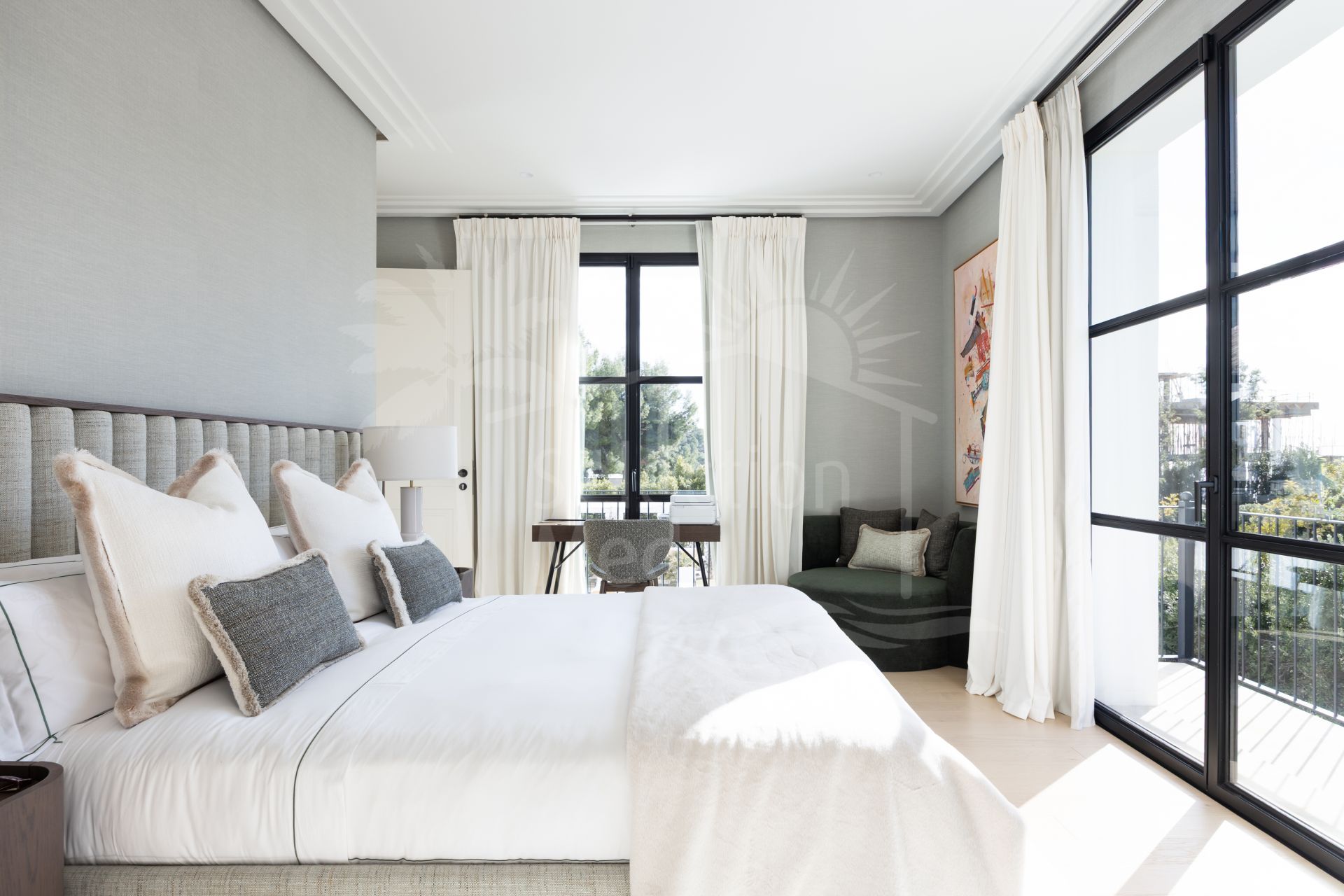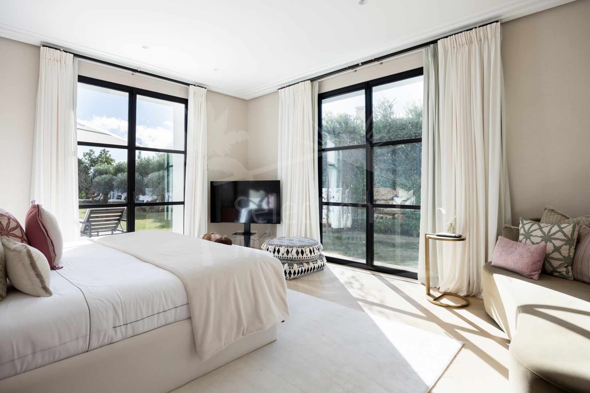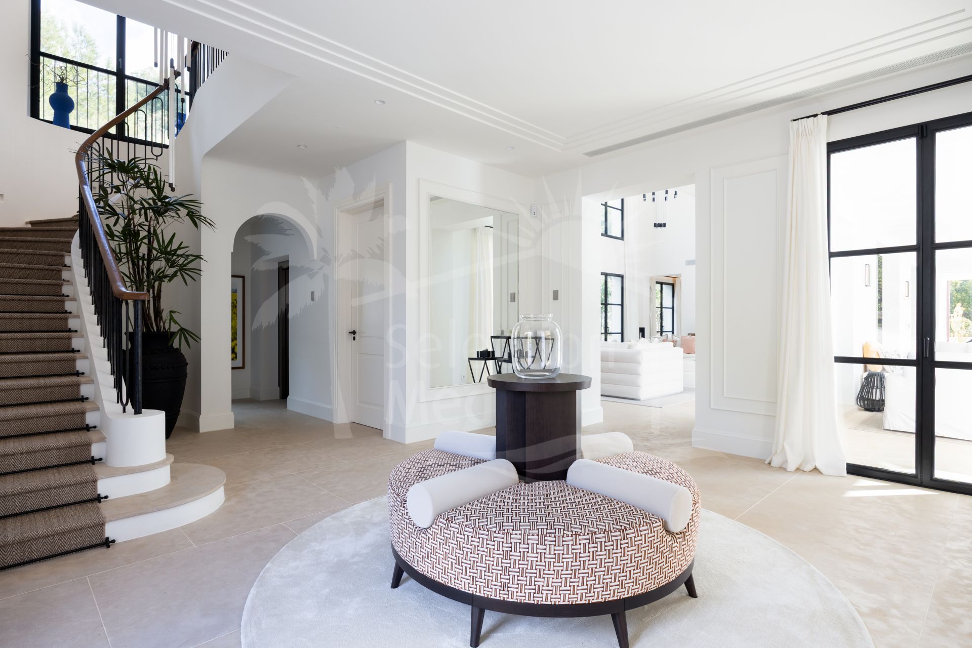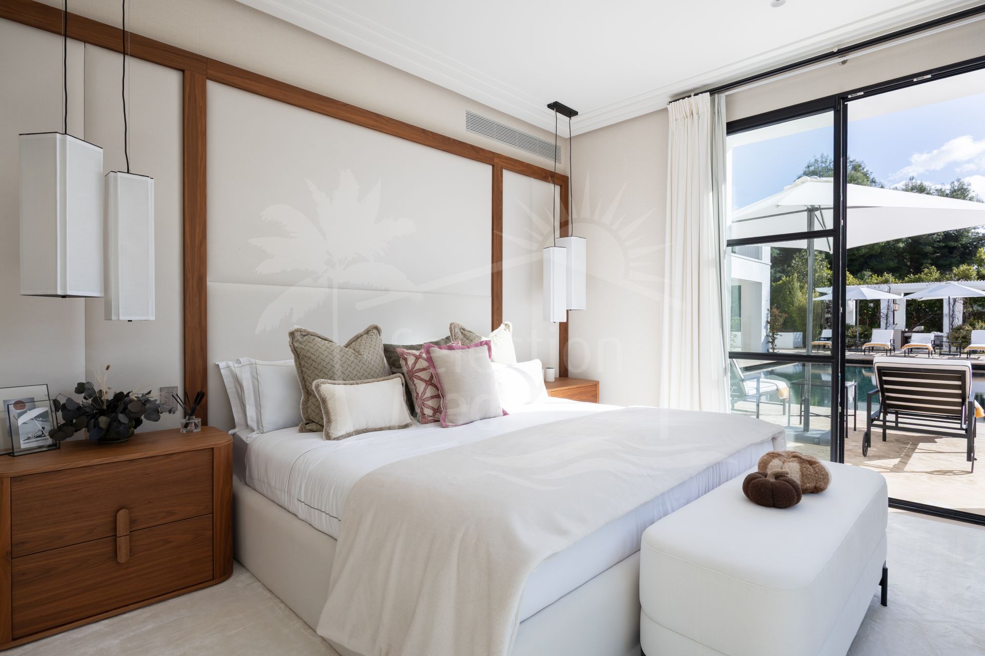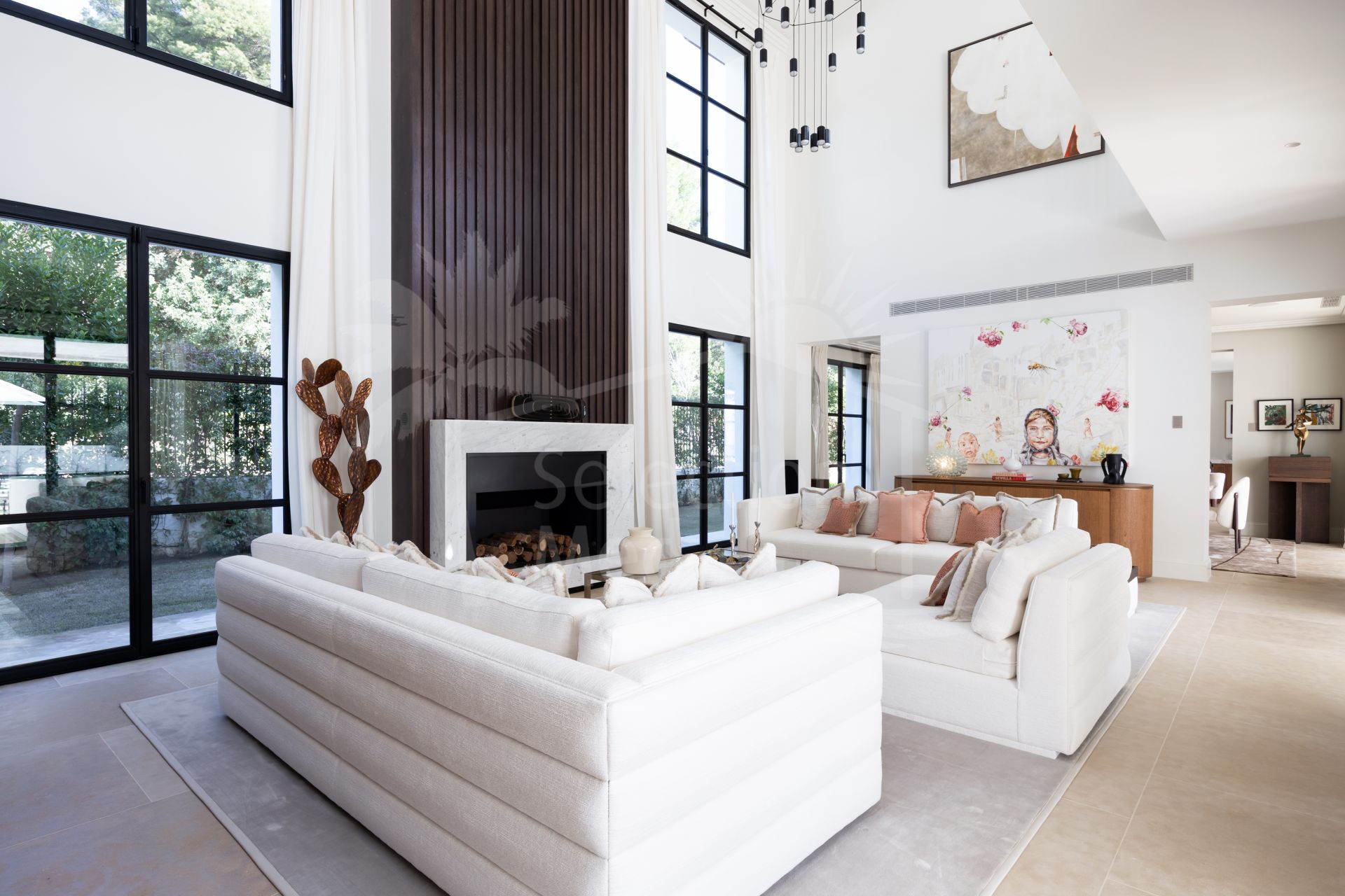 Created by the acclaimed architect behind Finca Cortesín, the villa’s nude-toned exterior radiates serenity and peace, offering a calming atmosphere for its residents. The gardens are a true oasis—perfect for hosting gatherings and making the most of Marbella’s 320 days of sunshine. Colorful floral walls frame the property, adding vibrancy and seamlessly blending the natural surroundings with the estate.