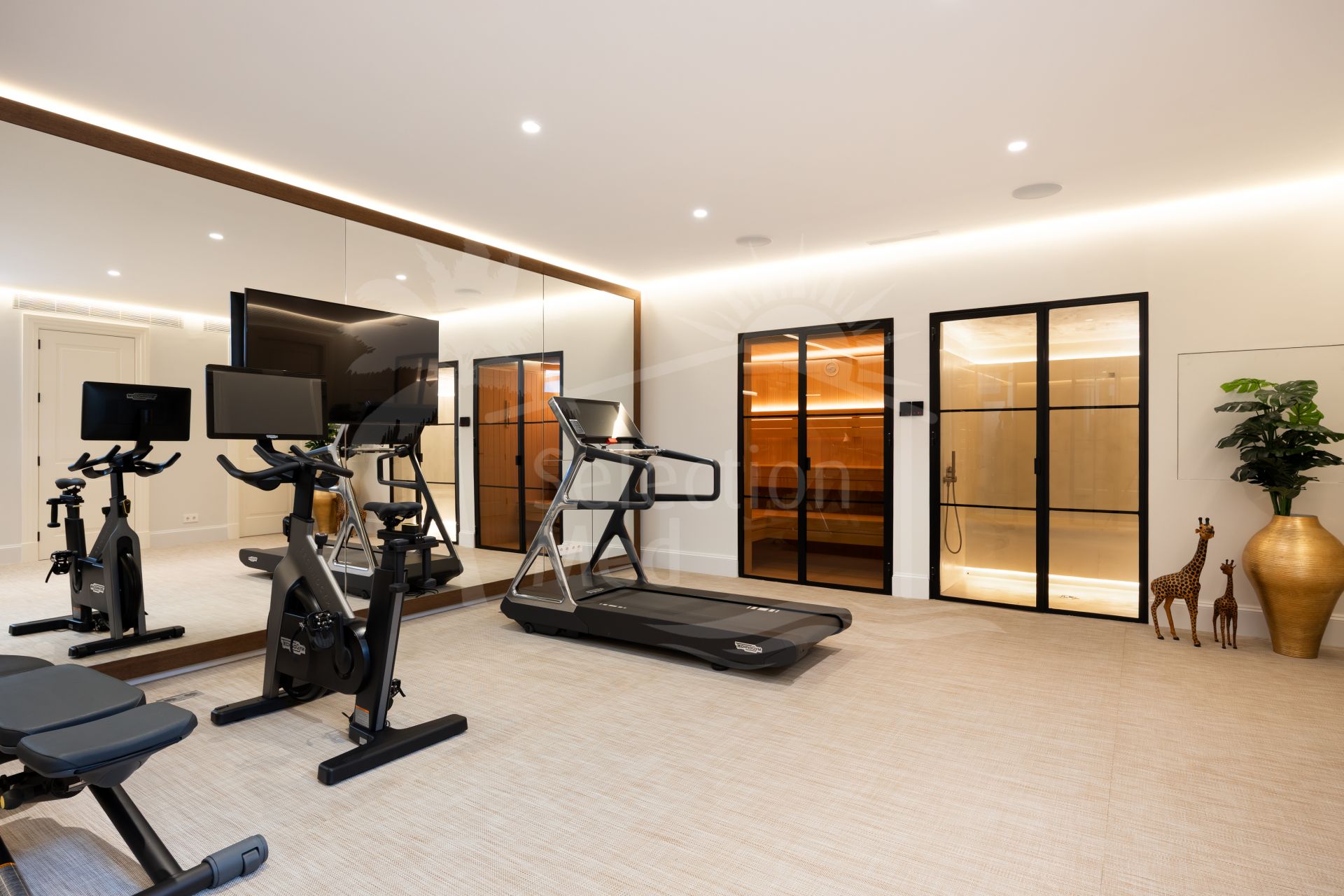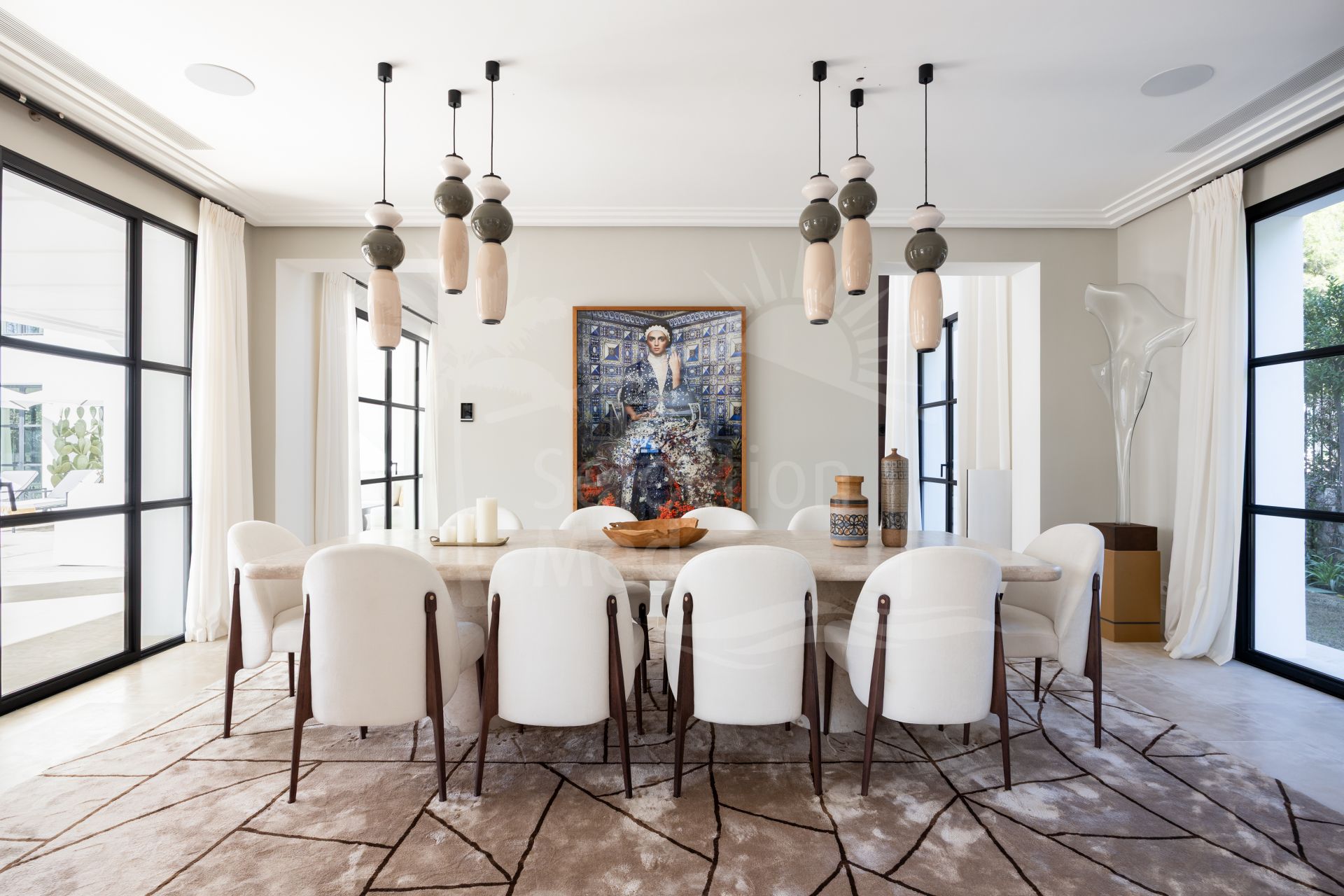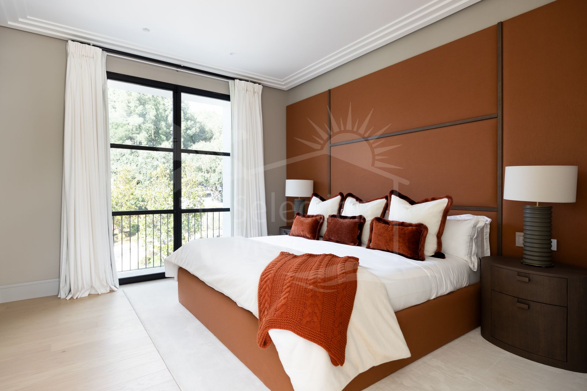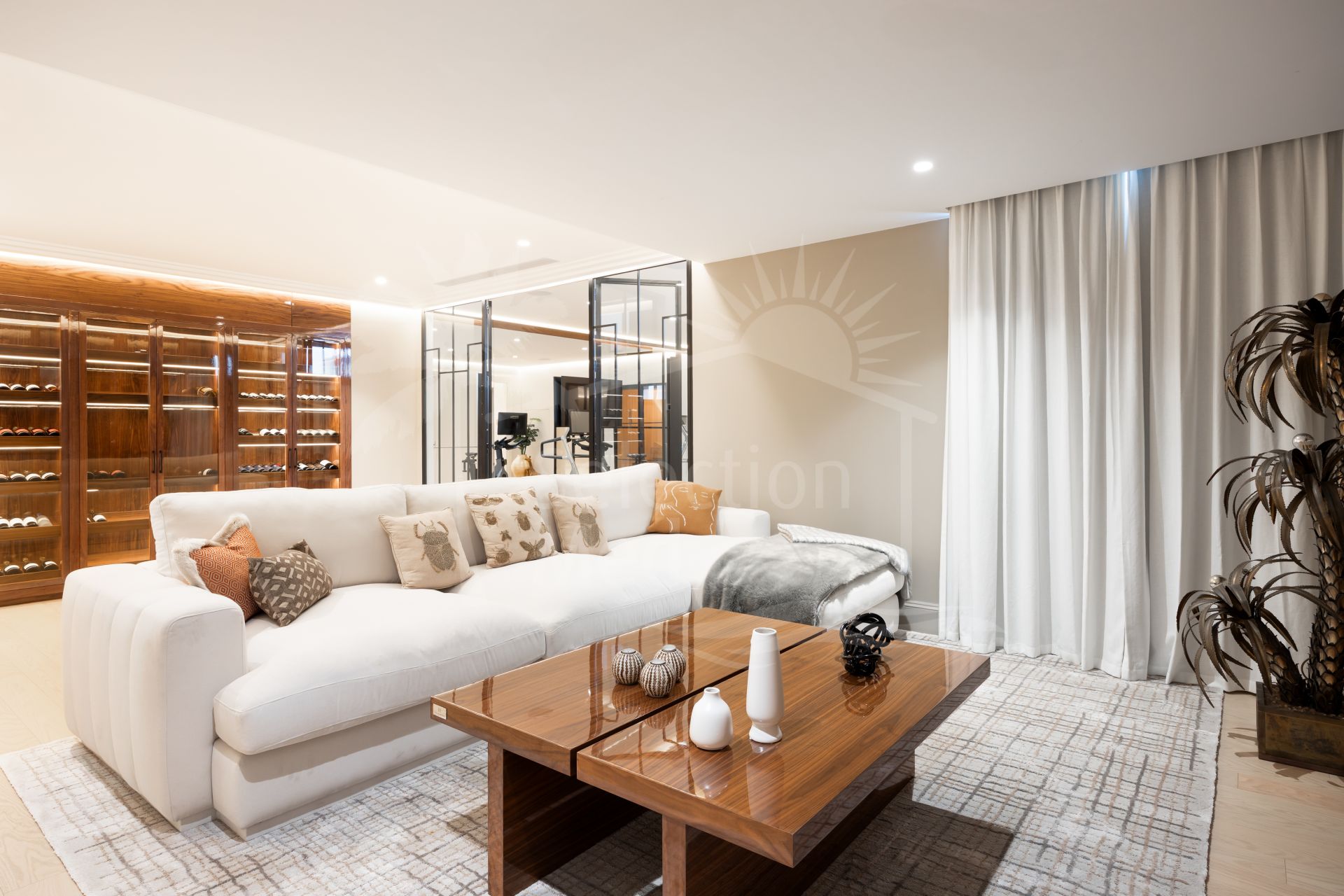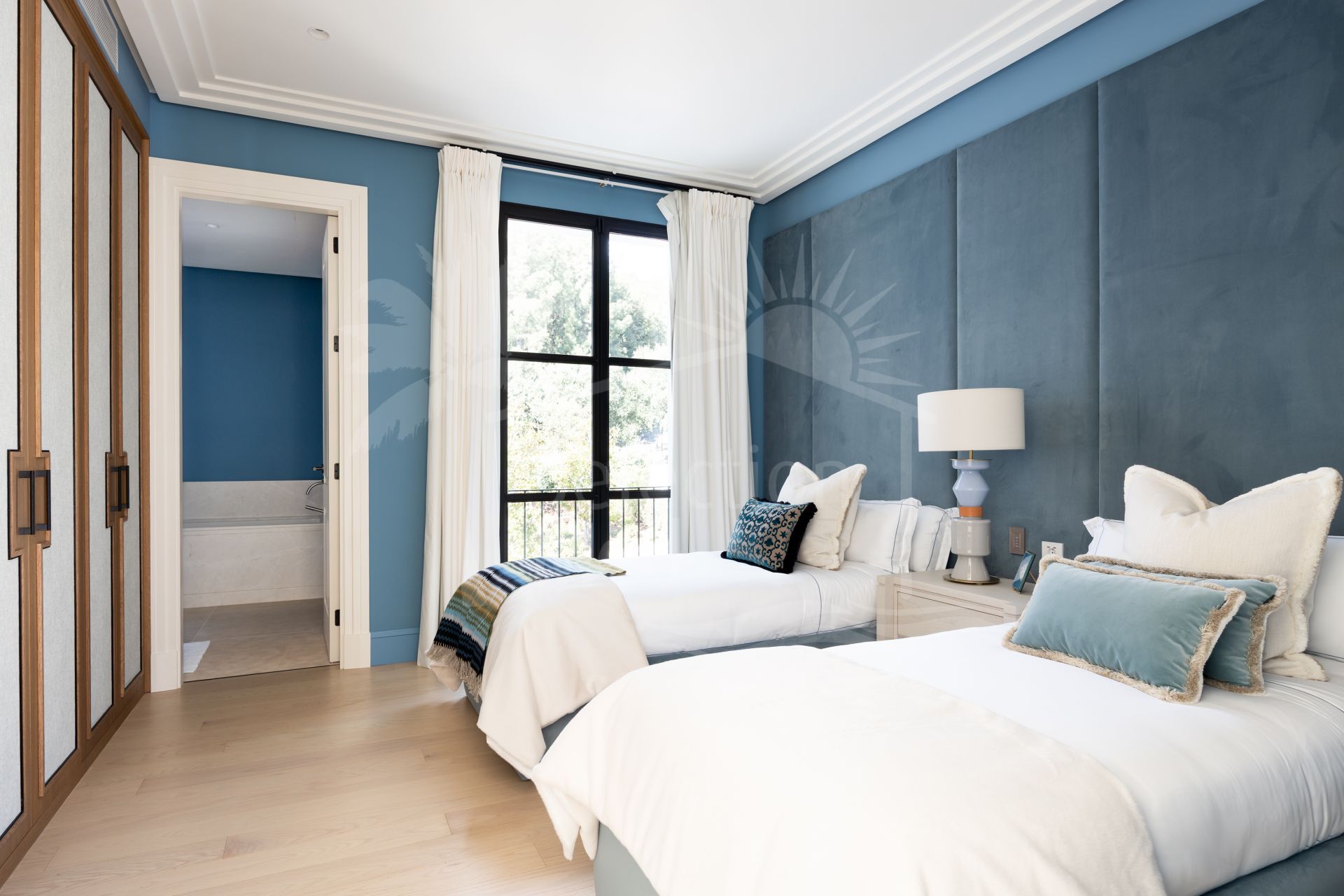 Created by the acclaimed architect behind Finca Cortesín, the villa’s nude-toned exterior radiates serenity and peace, offering a calming atmosphere for its residents. The gardens are a true oasis—perfect for hosting gatherings and making the most of Marbella’s 320 days of sunshine. Colorful floral walls frame the property, adding vibrancy and seamlessly blending the natural surroundings with the estate.