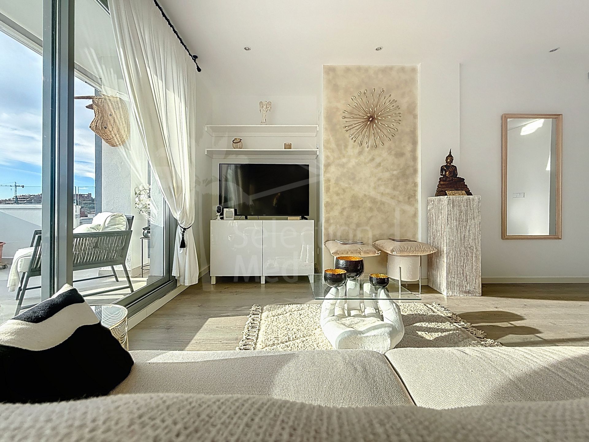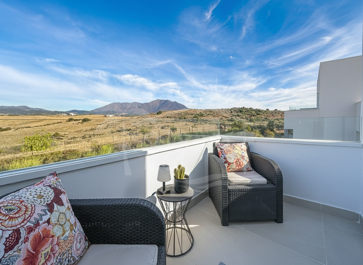 This duplex penthouse is located in the Serenity Views Urbanization, in West Estepona, and stands out for its impressive sea views and spaciousness. The property, situated in a gated community, offers the tranquility of living close to the sea and the convenience of being near golf courses, shops, restaurants, and schools.