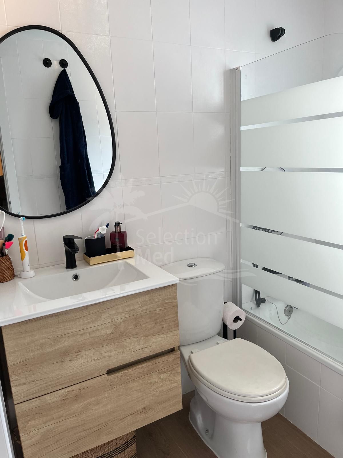 Residents will appreciate the array of modern amenities, including air conditioning, high-speed internet (Wi-Fi), and both covered and uncovered terraces. The apartment also benefits from a private garden, perfect for enjoying the Mediterranean climate, and a barbecue area for al fresco dining. Parking is included in the communal garage, and the property is conveniently located near local amenities, shops, and transport links, making it an ideal choice for families or professionals seeking comfort and accessibility.