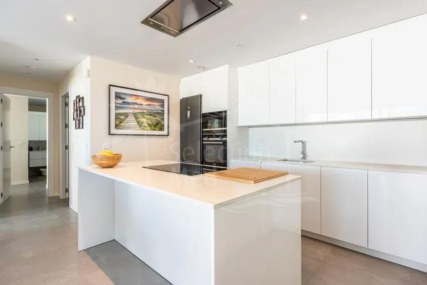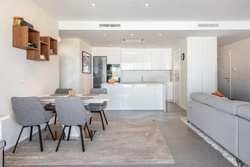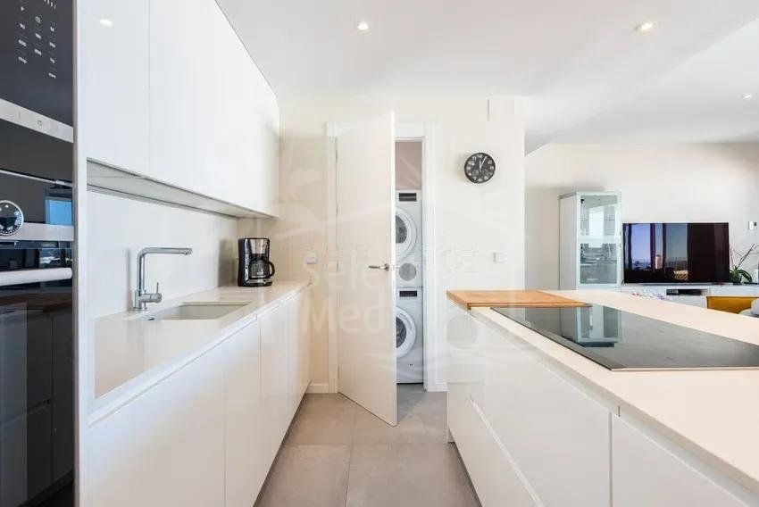 The home features an open and functional layout, where the living room, dining area, and kitchen are integrated into a spacious and bright area thanks to large windows. From the spacious private terrace, you can enjoy stunning open views of the Mediterranean Sea, the city, and the mountains, making it the perfect place for sunny breakfasts or relaxing moments at sunset.