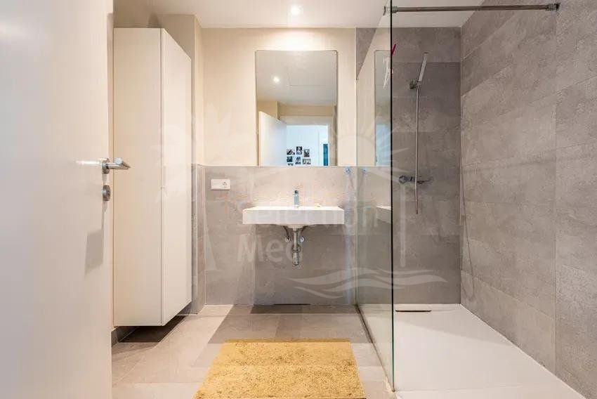 The apartment offers two double bedrooms and two modern bathrooms, with the master bedroom featuring an en-suite bathroom designed as a true haven of tranquility. Both bedrooms have direct access to the terrace, providing a pleasant sense of spaciousness and connection with the outdoors.