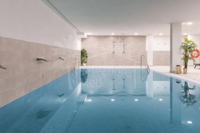 Residents have access to beautifully maintained communal gardens and a large communal pool, perfect for relaxation and recreation. The property’s terrace and balcony overlook both the tranquil gardens and inviting pool area, offering delightful views and an ideal setting for outdoor entertaining or quiet reflection. The development also features a lift for ease of access, and a luxury SPA facility enhances the lifestyle on offer.