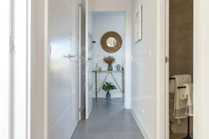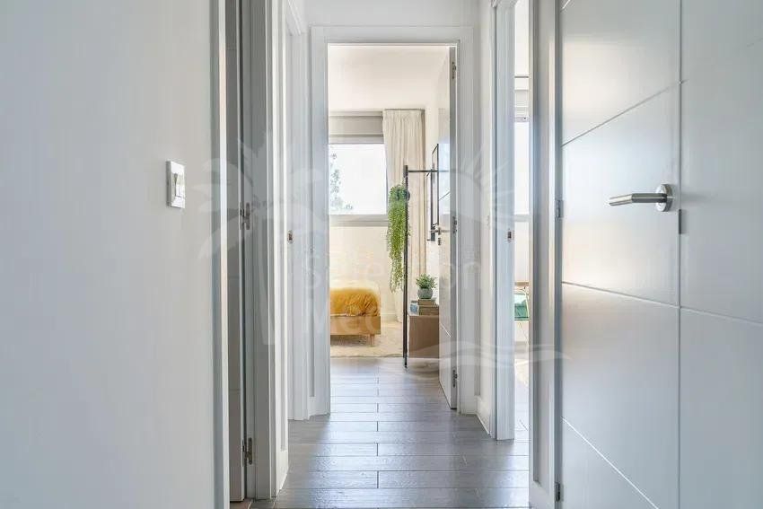 This impressive three-bedroom, two-bathroom apartment is situated in the sought-after area of El Chaparral, Mijas Costa, Malaga. Boasting a generous built area of 290m², with 130m² of interior living space and a remarkable 163m² terrace, the property offers a unique combination of indoor comfort and extensive outdoor living. Its prime location places it conveniently close to the beach, shops, restaurants, schools, playgrounds, the local port, and the town centre, making it ideal for both families and professionals seeking accessibility and leisure.