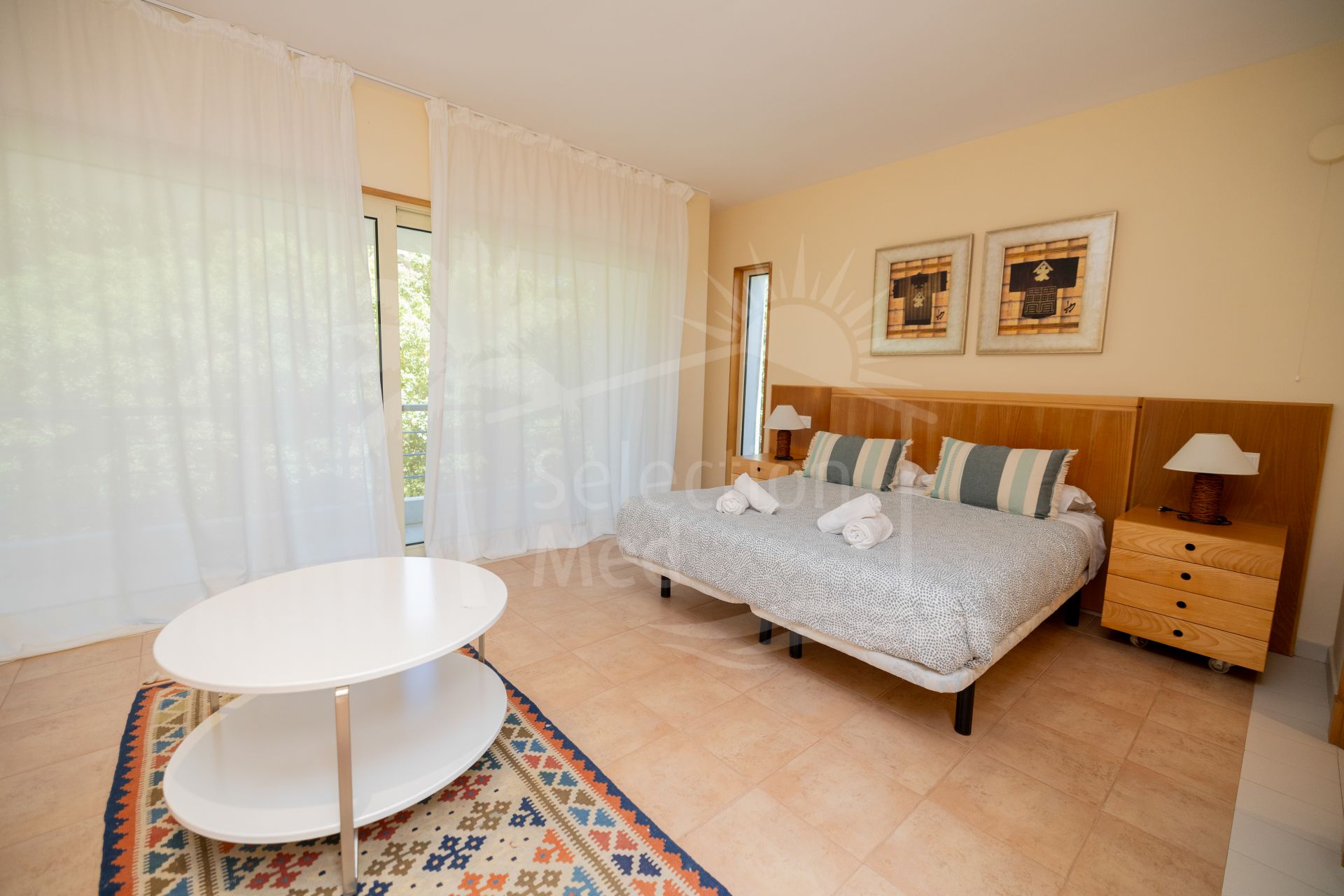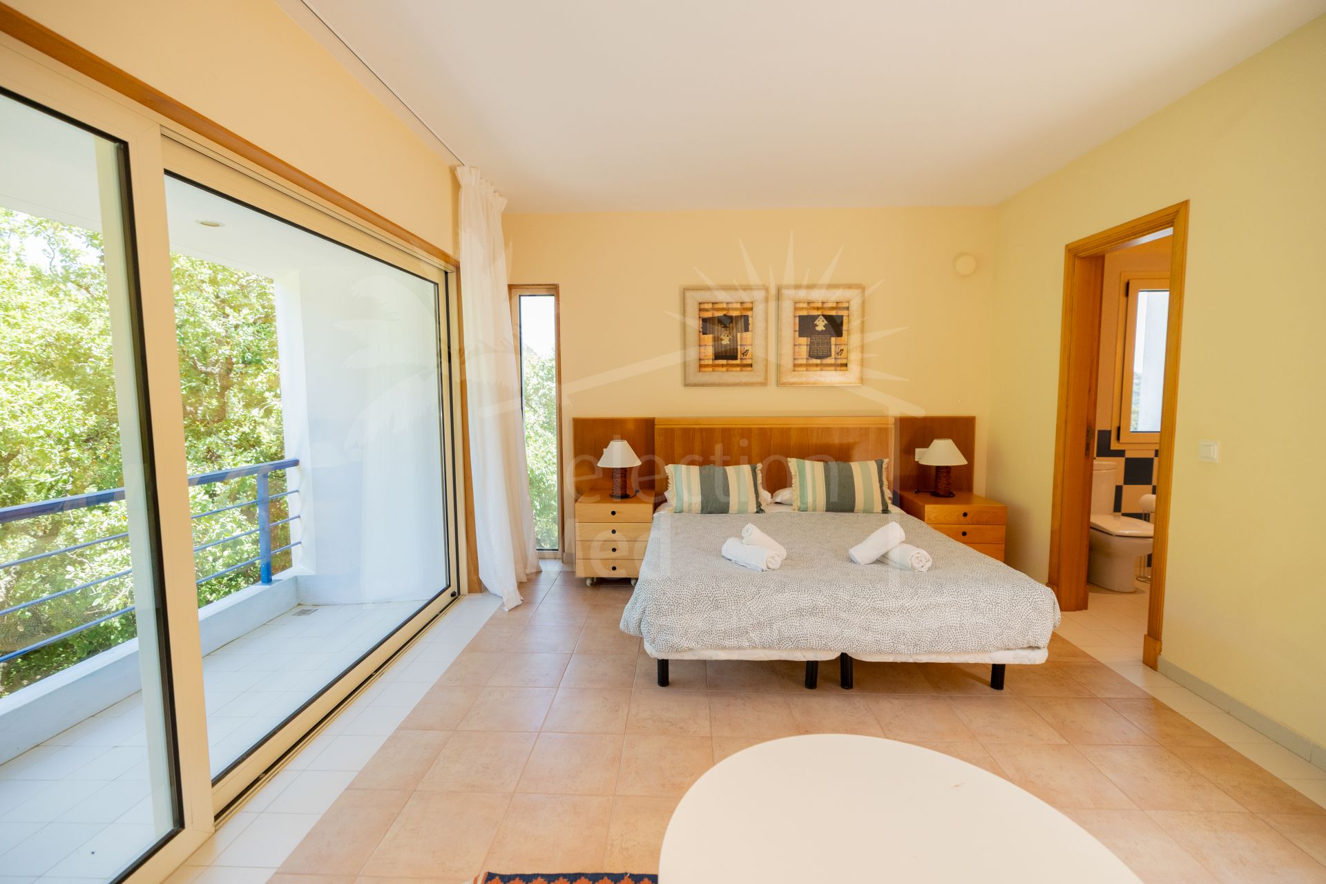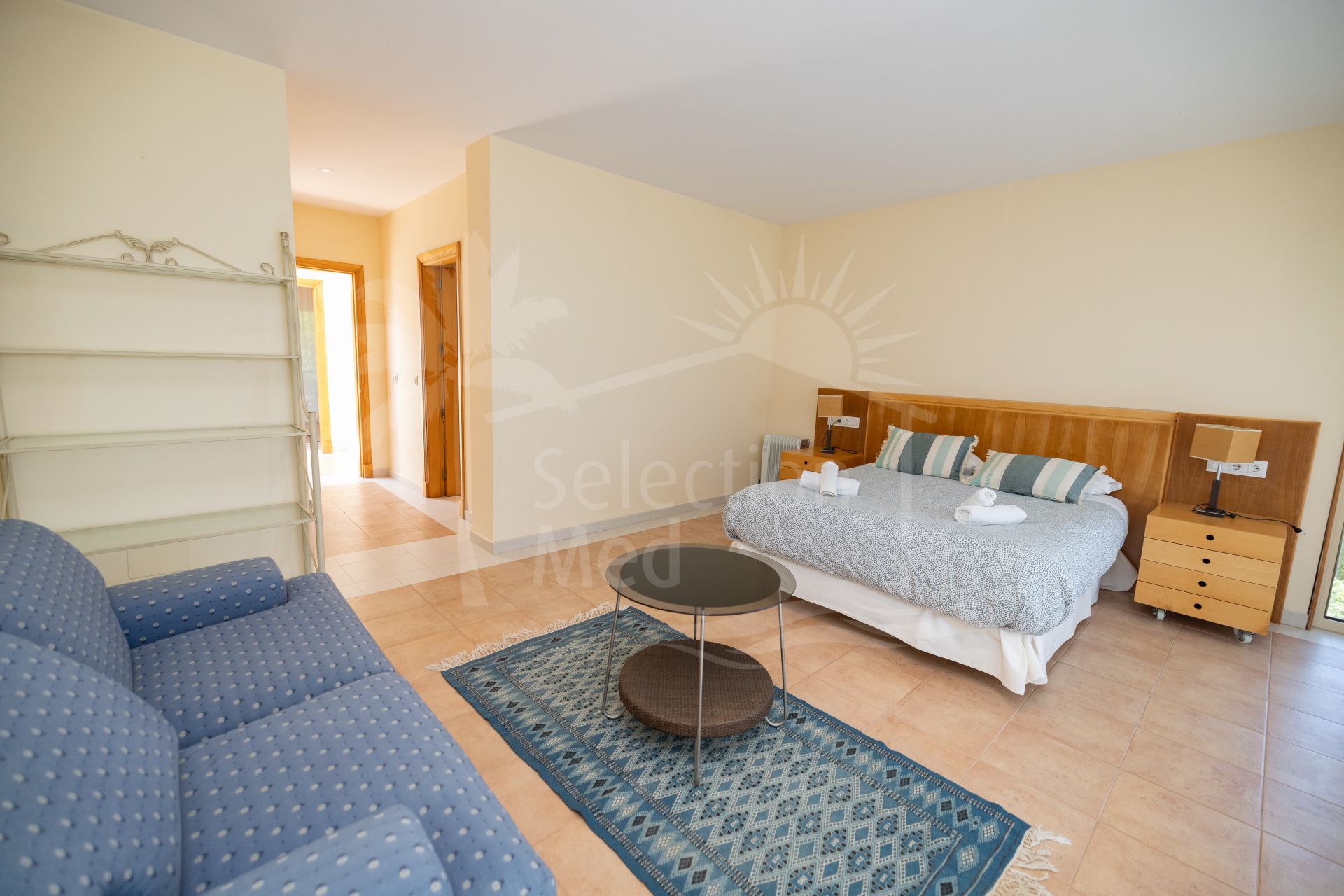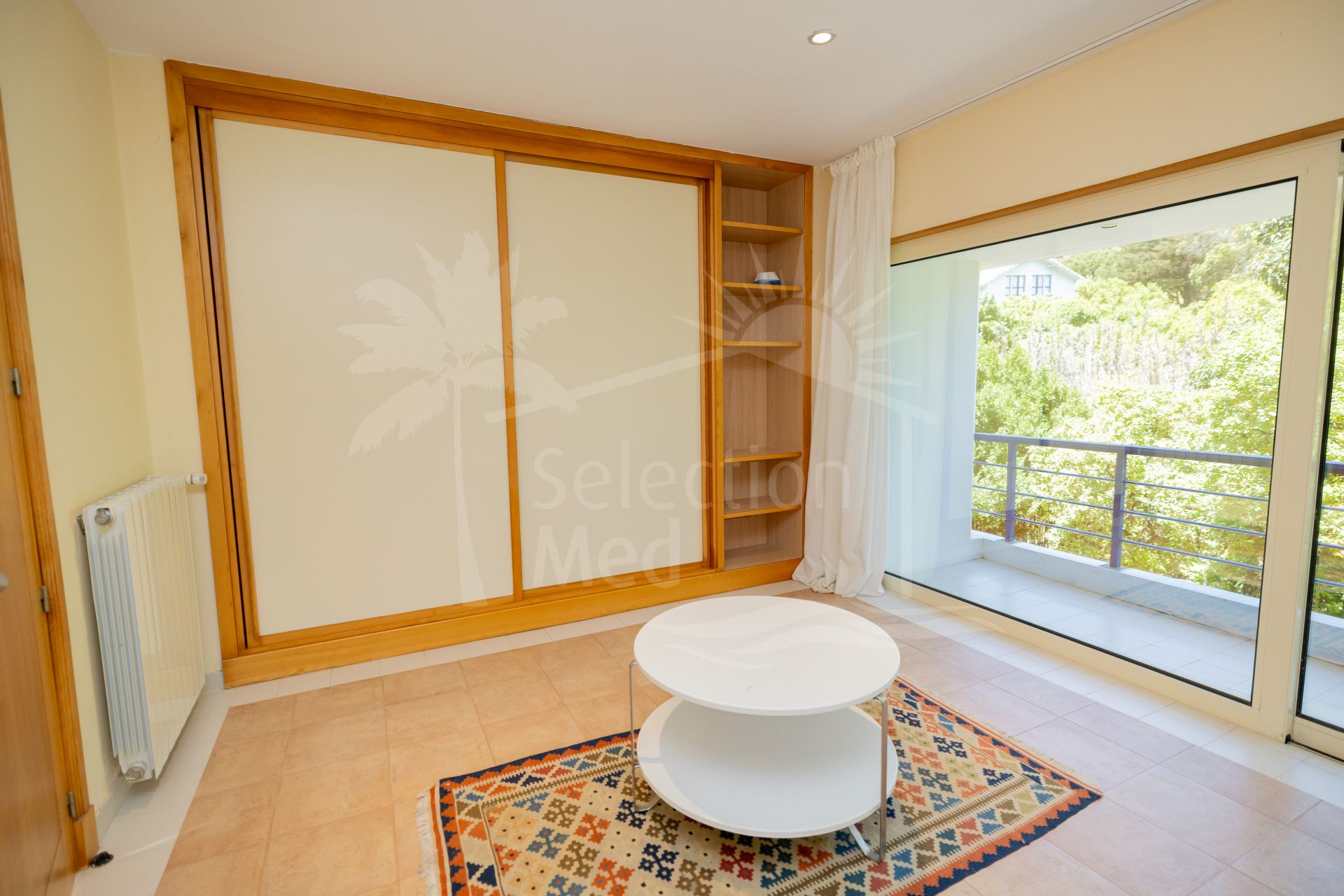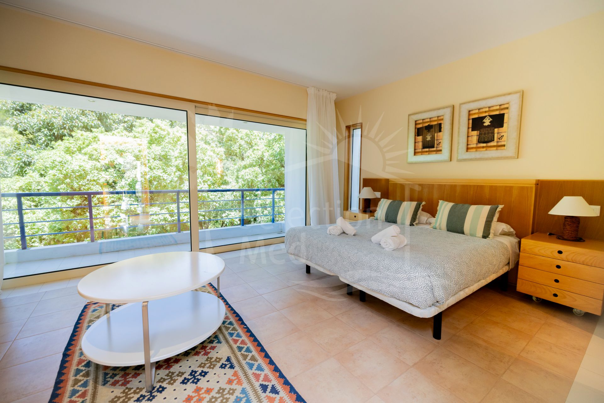 The villa is designed to maximise light and space, with generous living areas that open onto terraces and gardens, framing beautiful green landscapes and distant sea views. Each bedroom features its own en-suite bathroom, providing comfort and independence for family and guests, while several rooms open onto private balconies with lovely open views across the hills and forest.