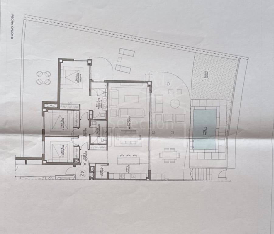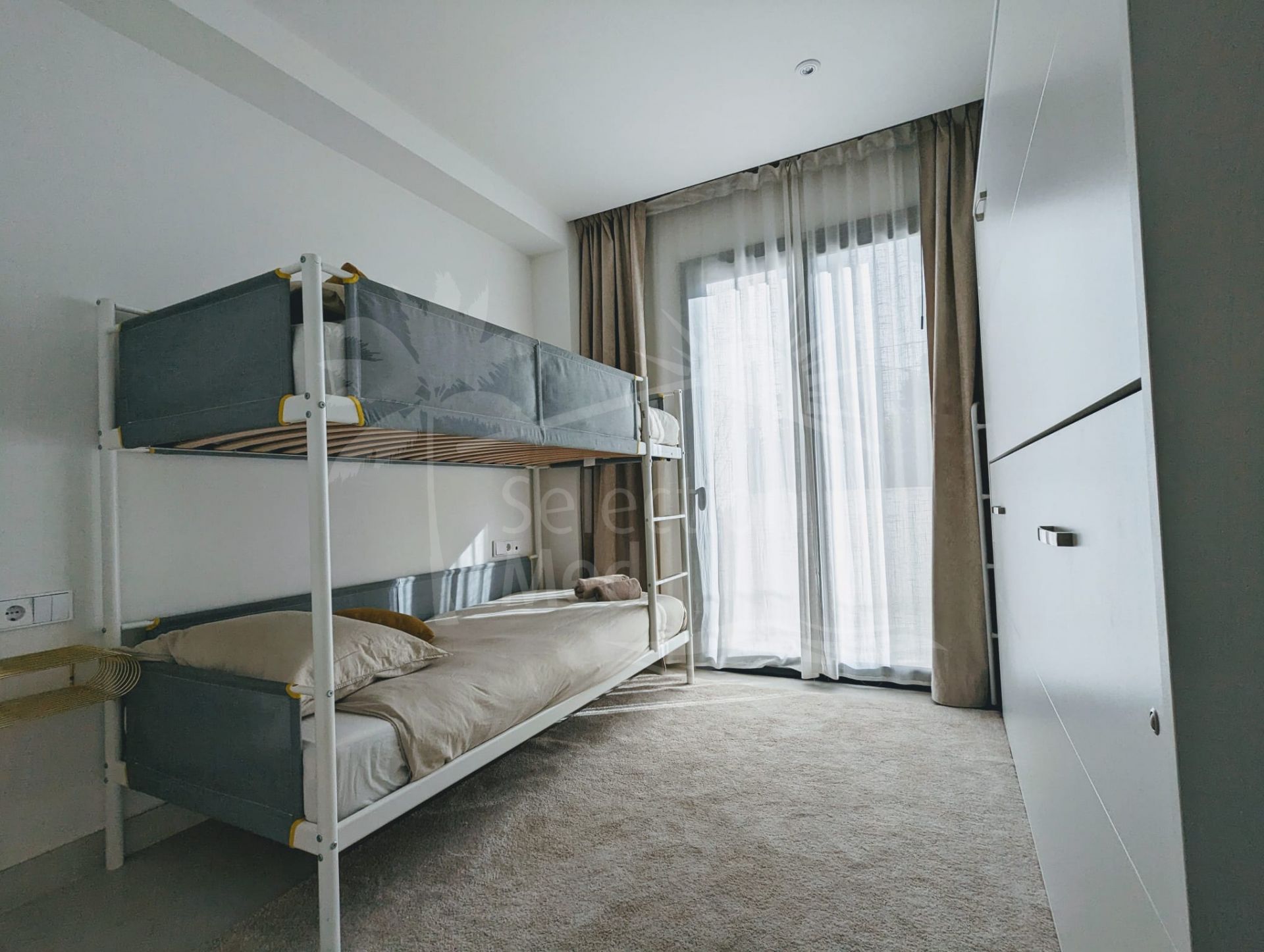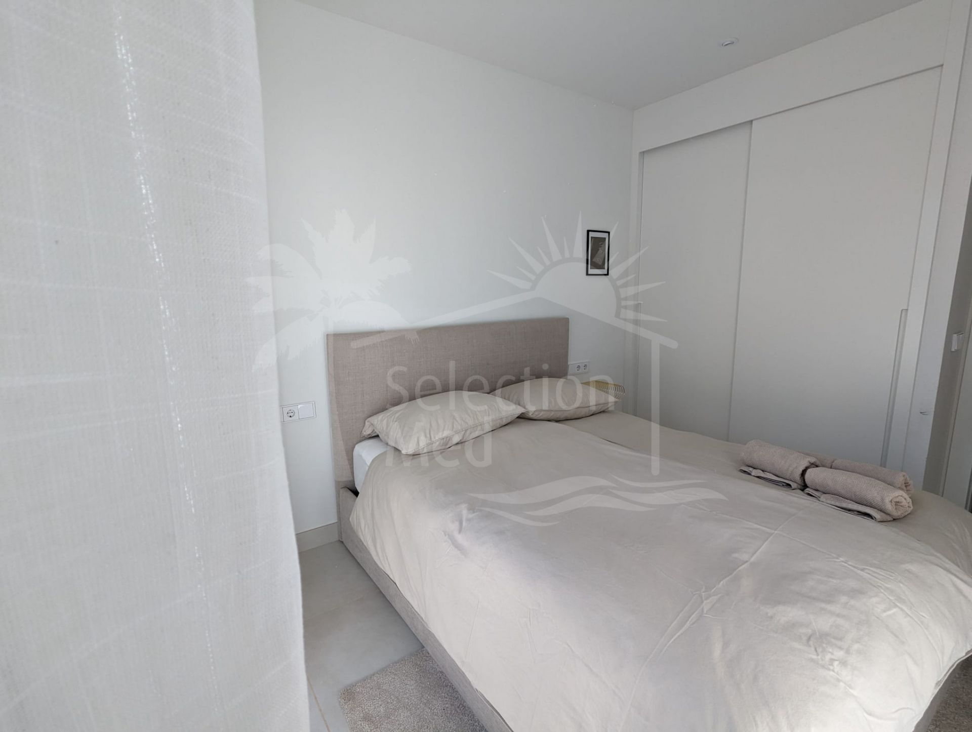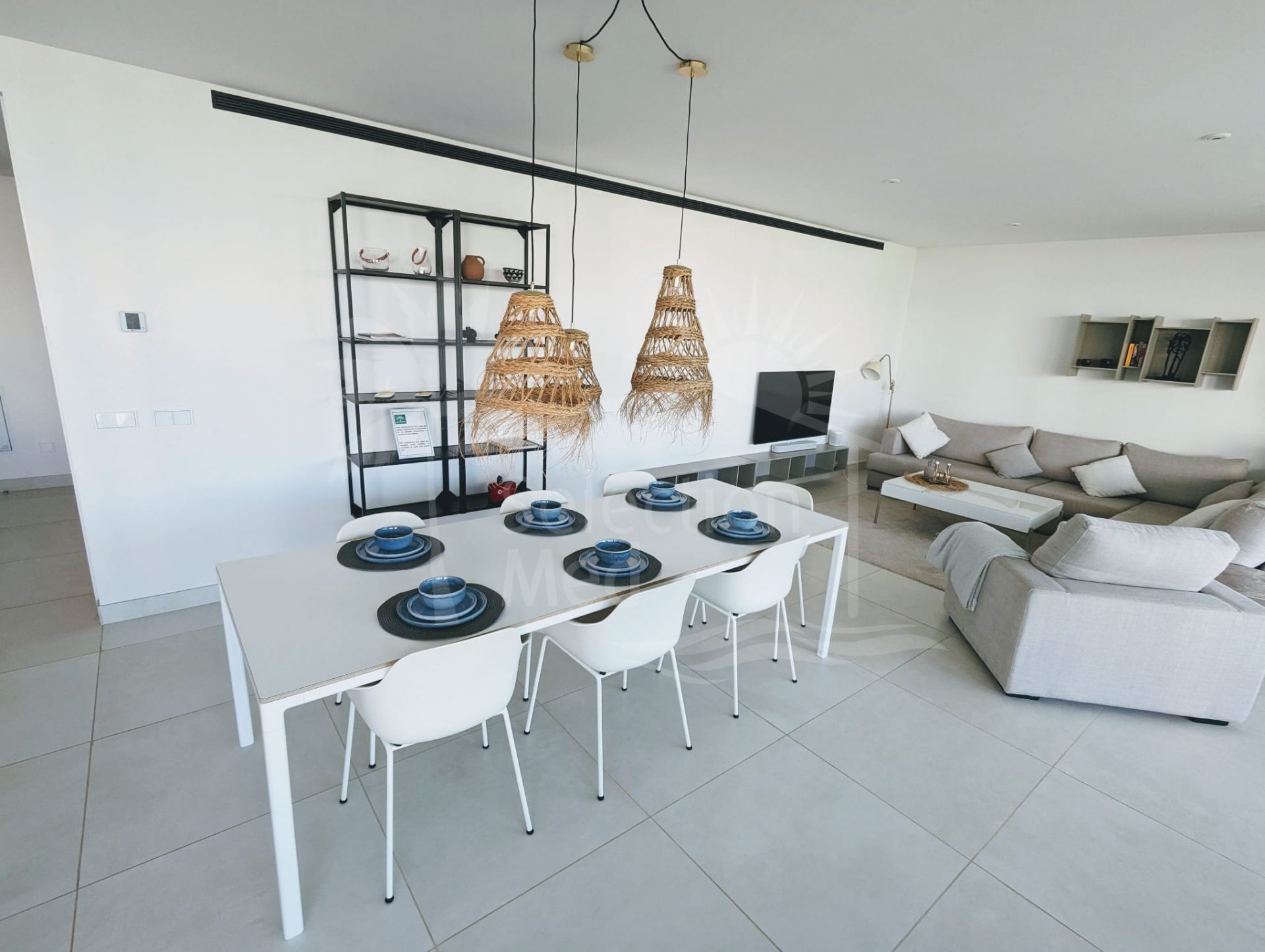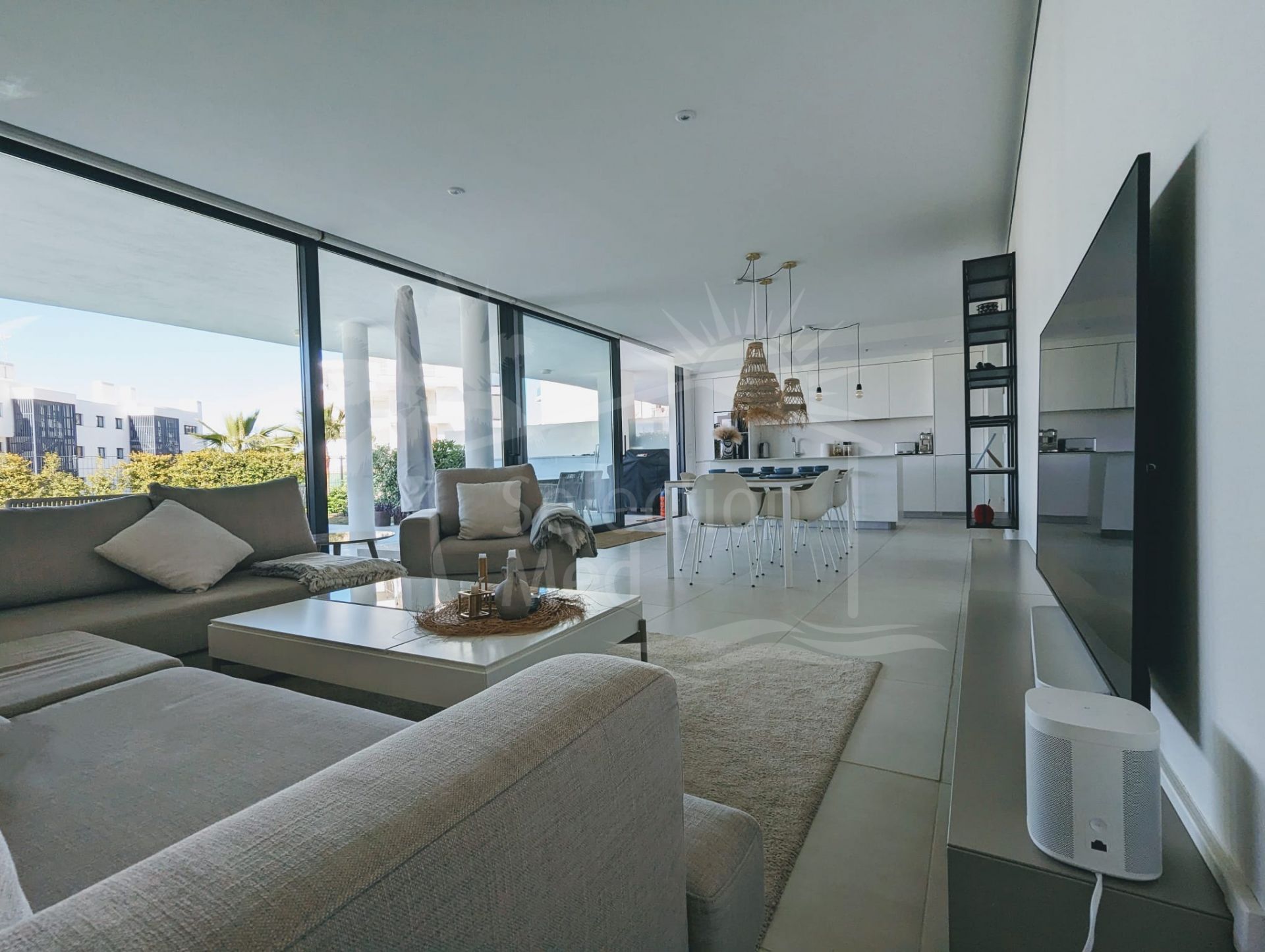 It consists of 3 double bedrooms, all with direct access to the terrace, 2 full bathrooms with a beautiful design, a high-quality fully equipped open-plan kitchen with laundry room, and a living room.