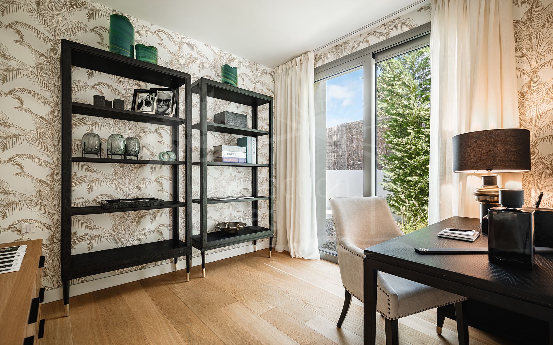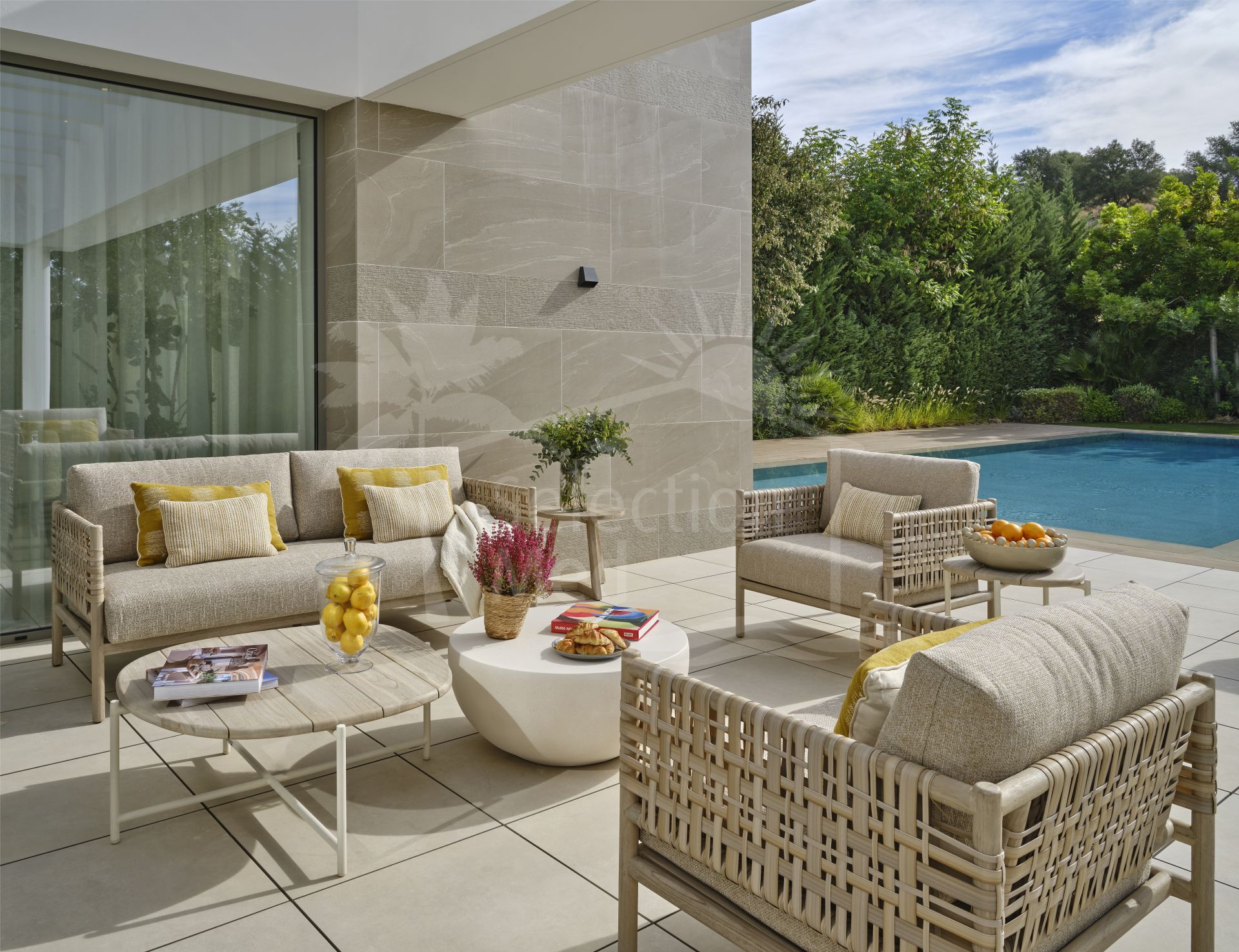 The villa comprises five generously sized bedrooms, all with en-suite bathrooms, in addition to a guest toilet. Interiors are finished with natural wood flooring, underfloor heating, and electric blinds, providing a perfect balance between style and functionality.
