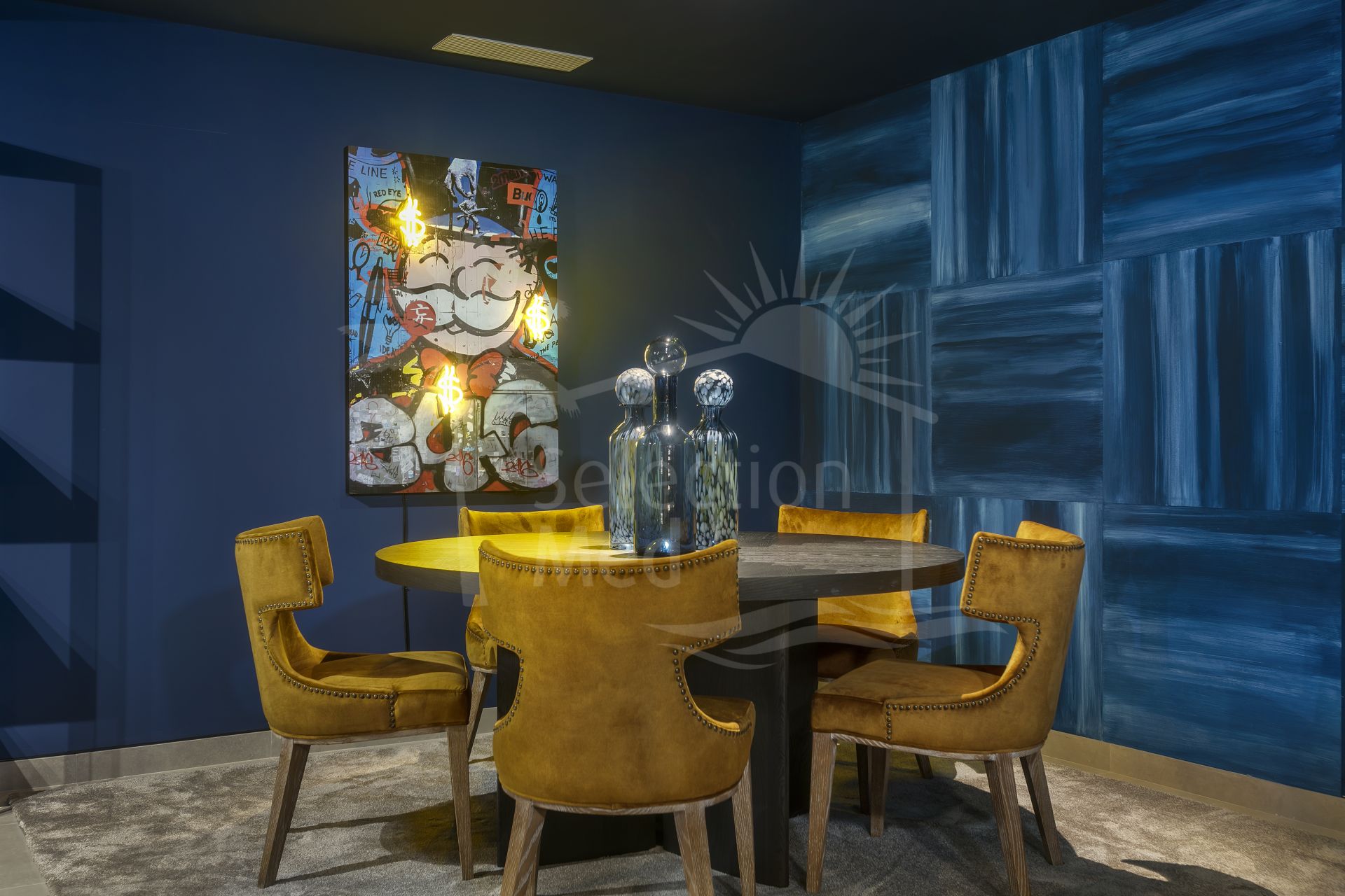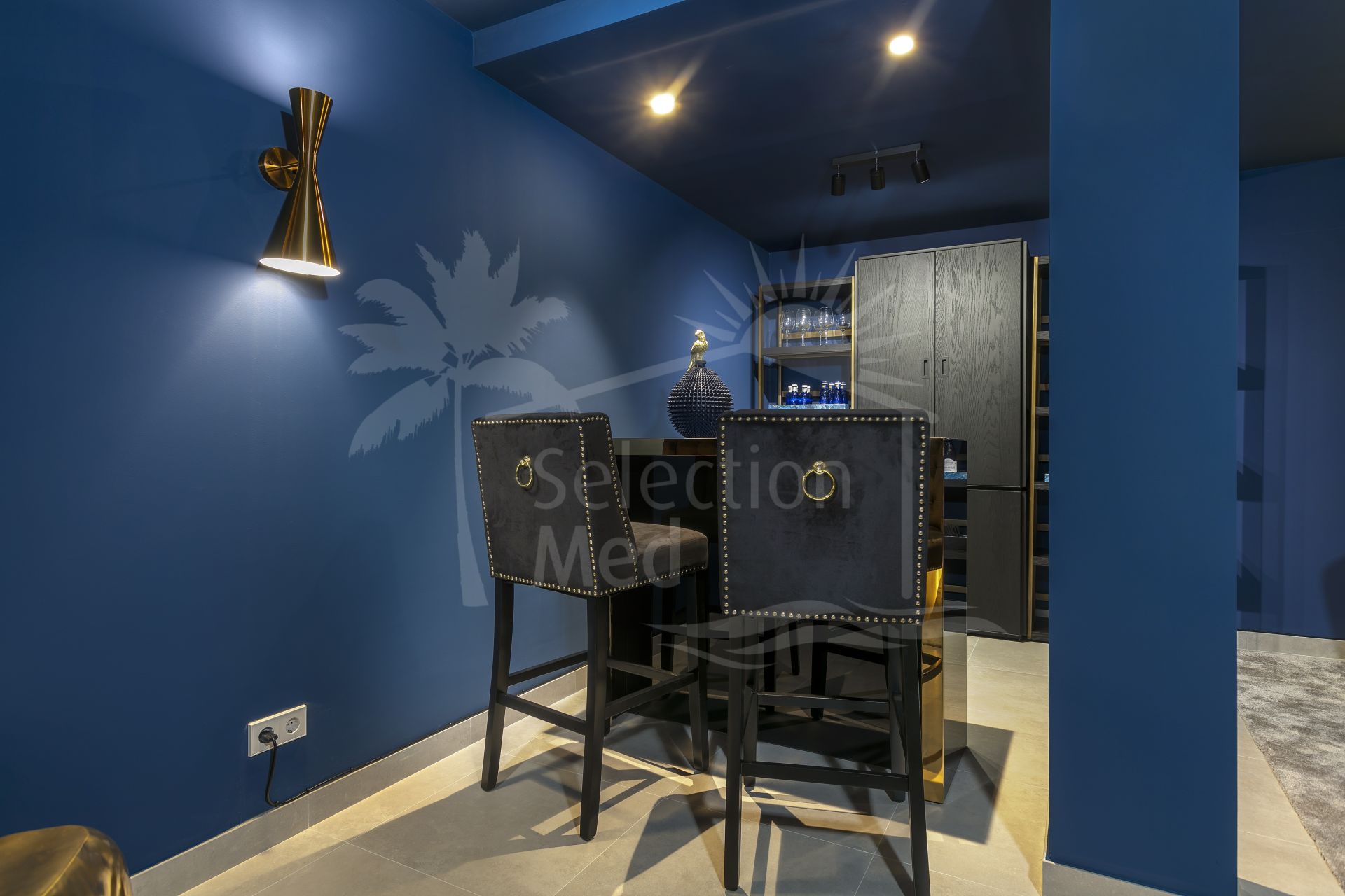 The lower level has been transformed into a chic bar and entertainment lounge reminiscent of a classic jazz club, a unique space for memorable evenings.