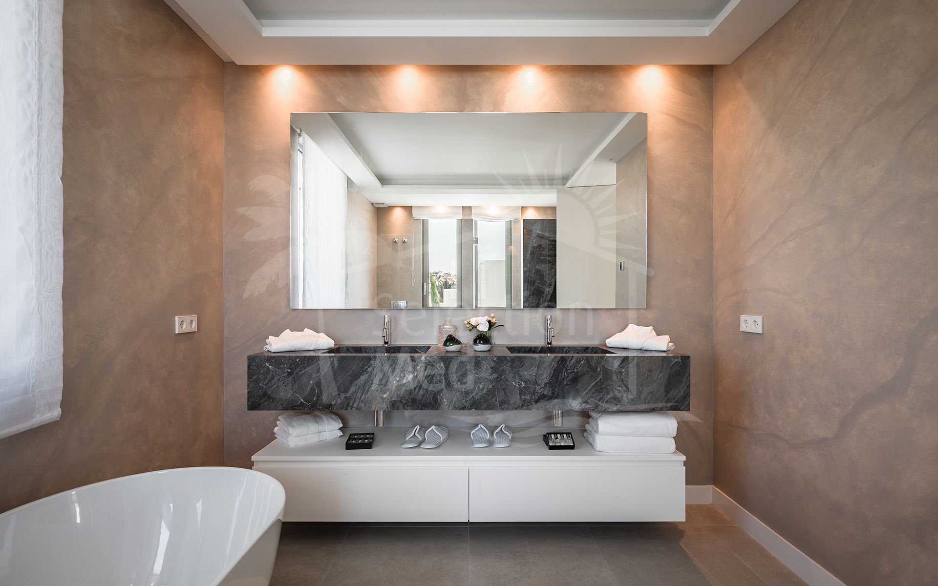 Situated in the tranquil and well-established residential enclave of El Paraíso, this elegant contemporary villa enjoys a privileged location on Marbella’s New Golden Mile, just a short drive from Puerto Banús, San Pedro de Alcántara, and Estepona.