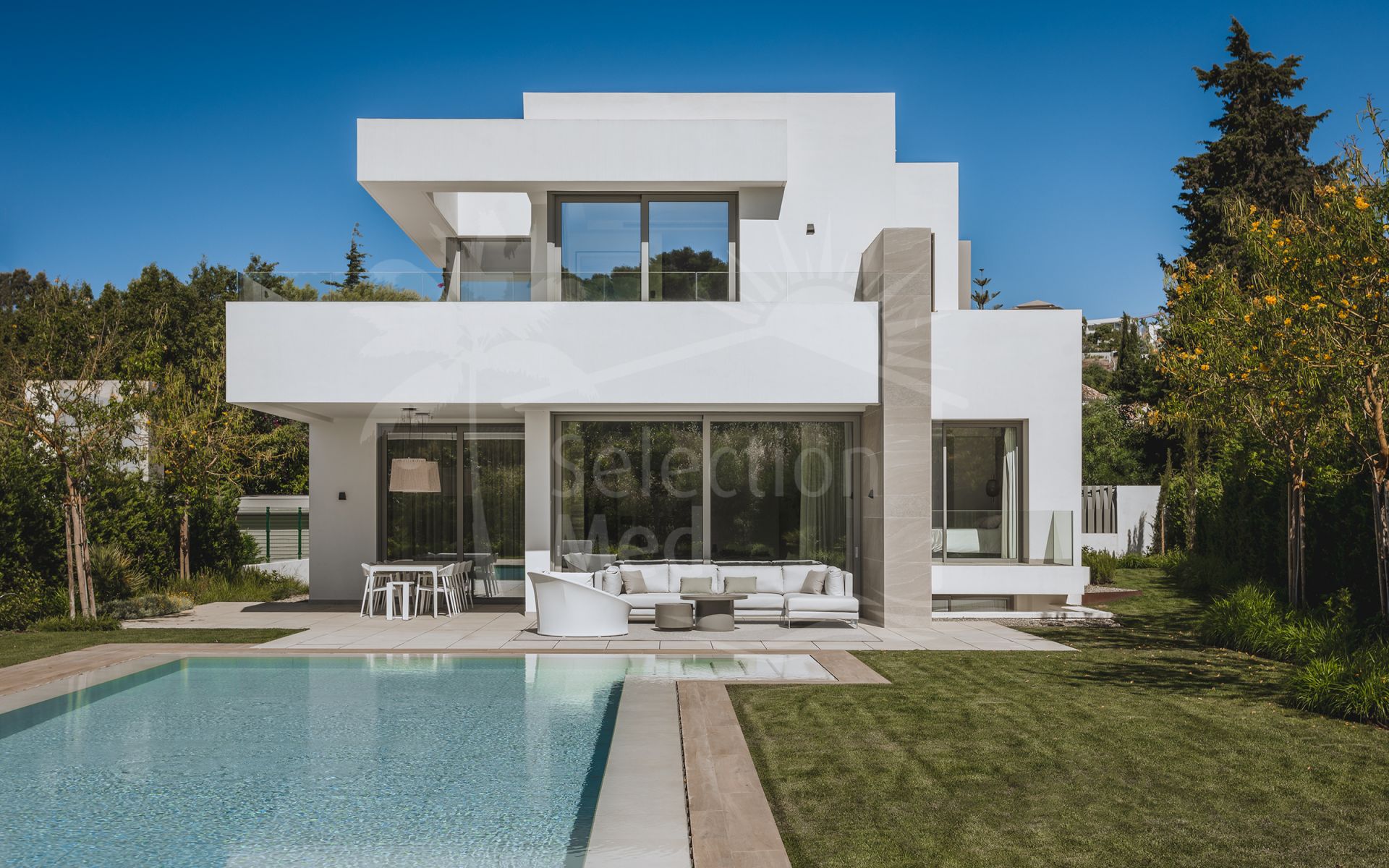 Located in the peaceful residential area of El Paraíso, this elegant contemporary villa sits in one of the most desirable parts of the New Golden Mile, just 10 minutes from Puerto Banús and 15 minutes from Marbella Old Town.