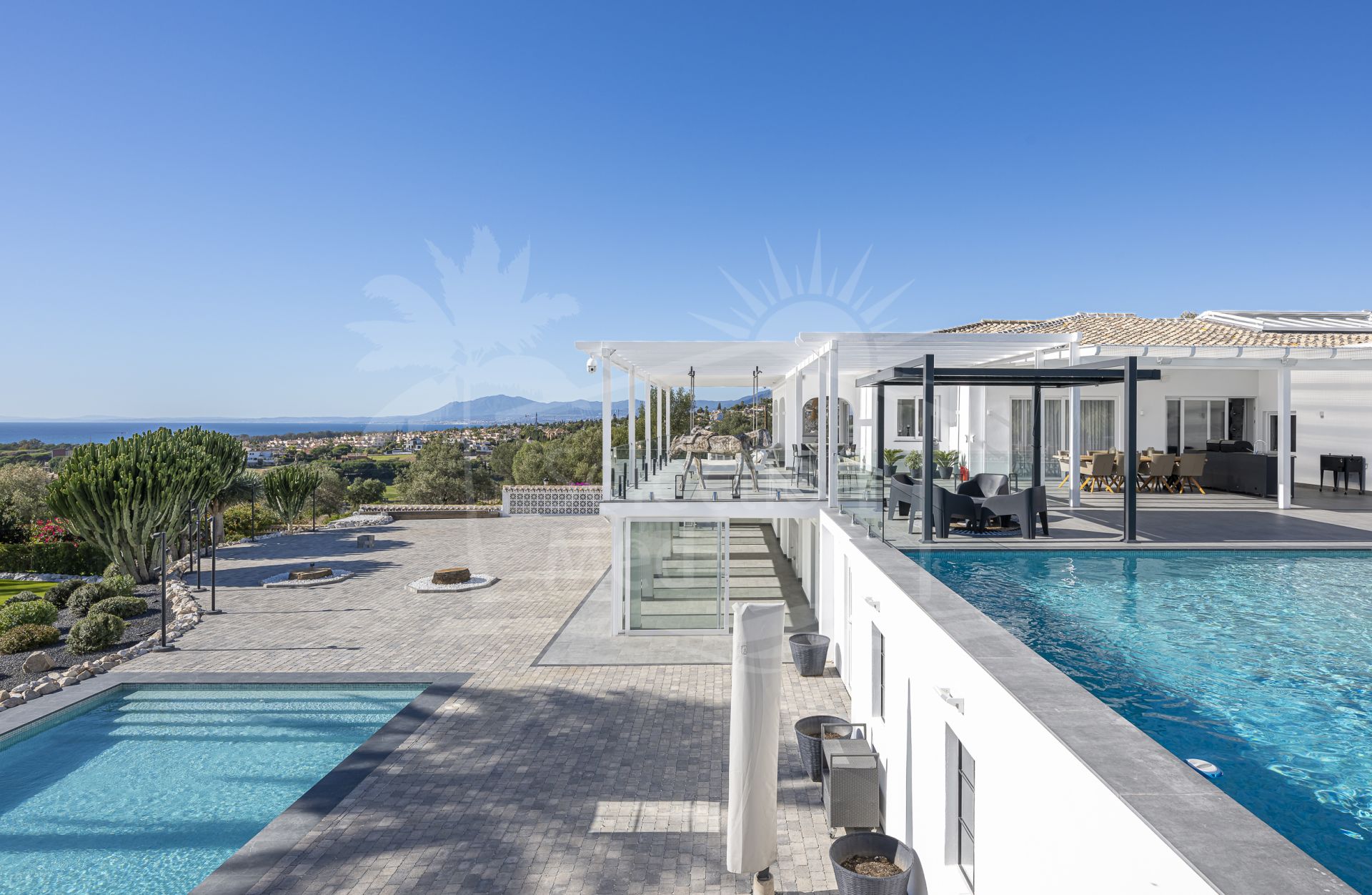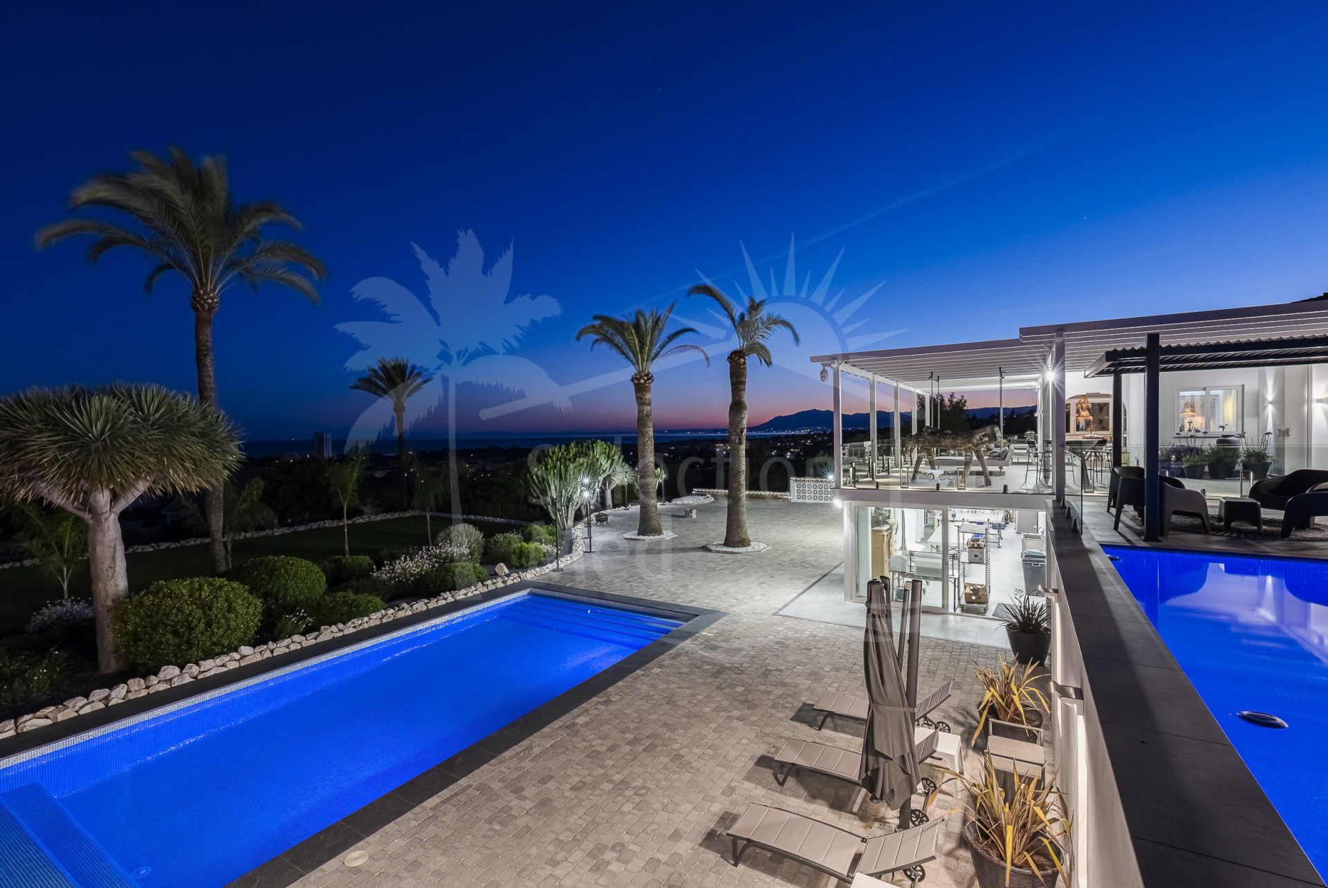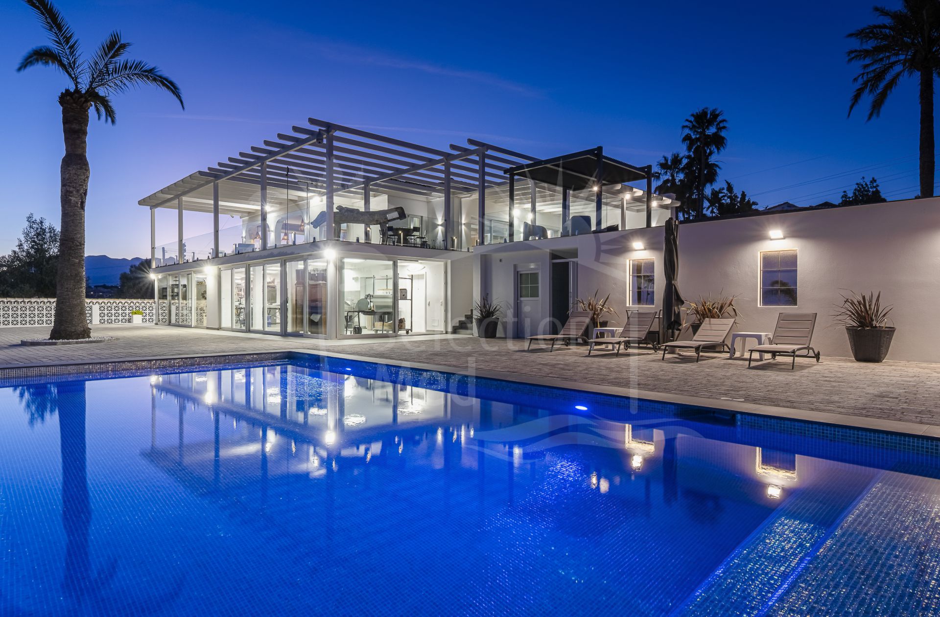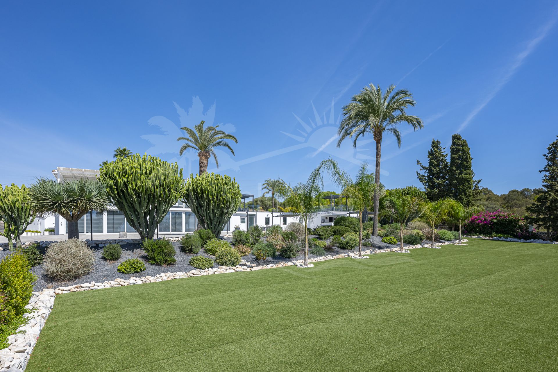 Set on two generous plots totalling 6.128 m², this private and peaceful luxury villa offers a rare blend of modern Mediterranean style and natural beauty in Elviria, Marbella East. Surrounded by its own unspoilt land on one side, the property enjoys exceptional privacy, space and uninterrupted views. The home is situated on one level, a unique find in this sought-after area, offering comfort and easy living. Just minutes from a local commercial centre and the A-7 coast road, the location is ideal for reaching Marbella, La Cañada shopping centre, international schools and the coast. Golf courses, hiking trails, and water sports are also nearby, adding to the appeal of the lifestyle.