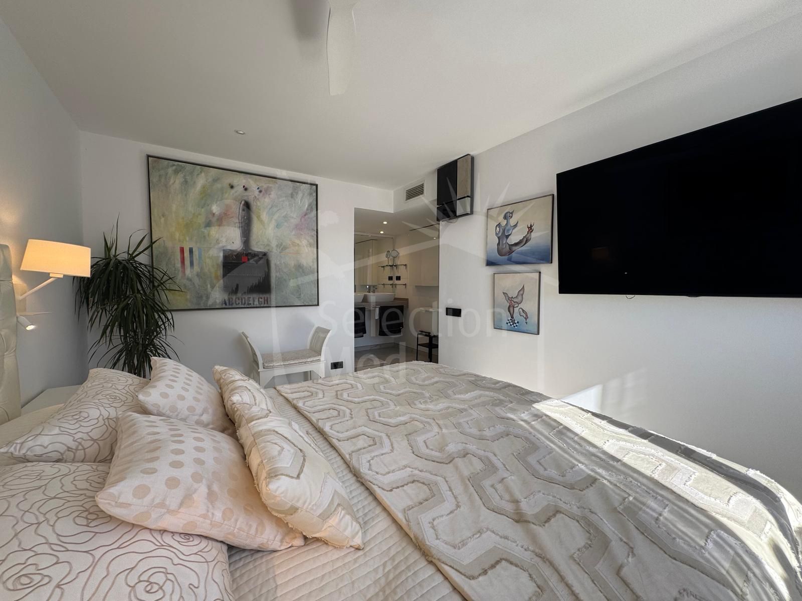 Originally designed as a four-bedroom apartment, the layout has been thoughtfully reimagined into a spacious two-bedroom home, featuring a grand master suite with walk-in closet and luxurious bathroom, and an expanded open-plan living area for a greater sense of flow and comfort. The property can easily be reconverted into a three-bedroom residence without compromising its feeling of light and space.