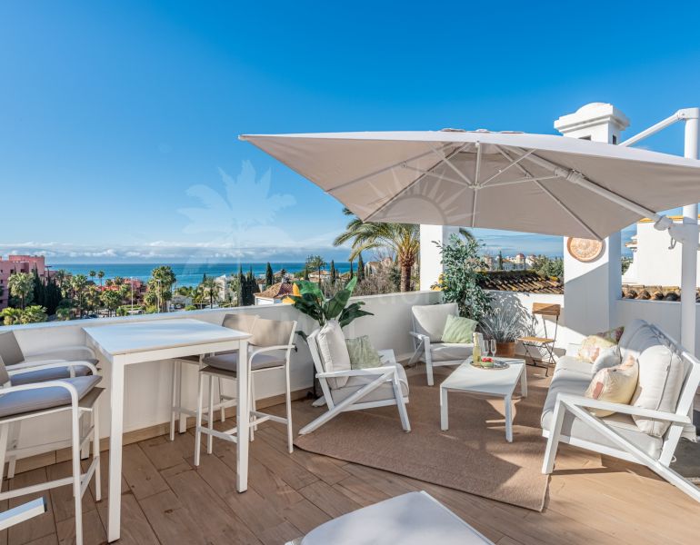 Just a few steps from the beach in the exclusive gated , this beautiful 3-bedroom, 3-bathroom townhouse perfectly combines coastal charm with modern comfort in the sought-after New Golden Mile of Estepona. Located on the second line from the sea, the...