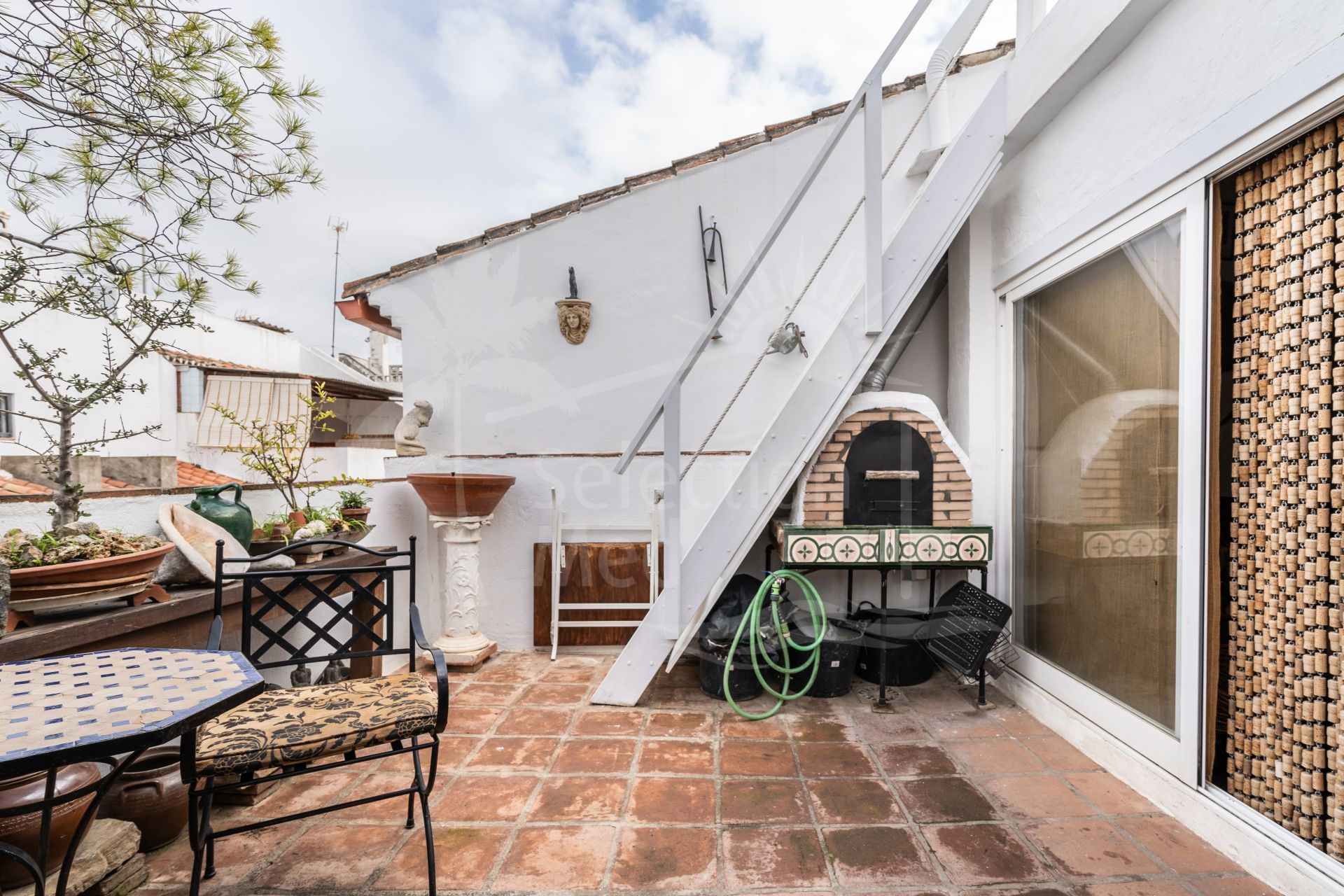 You find this rustic townhouse, in an idyllic setting on one of the most beautiful pedestrian streets of Estepona Old Town, just a few minutes’ walk from the beach. You have all amenities, restaurants and shops just around the corner.