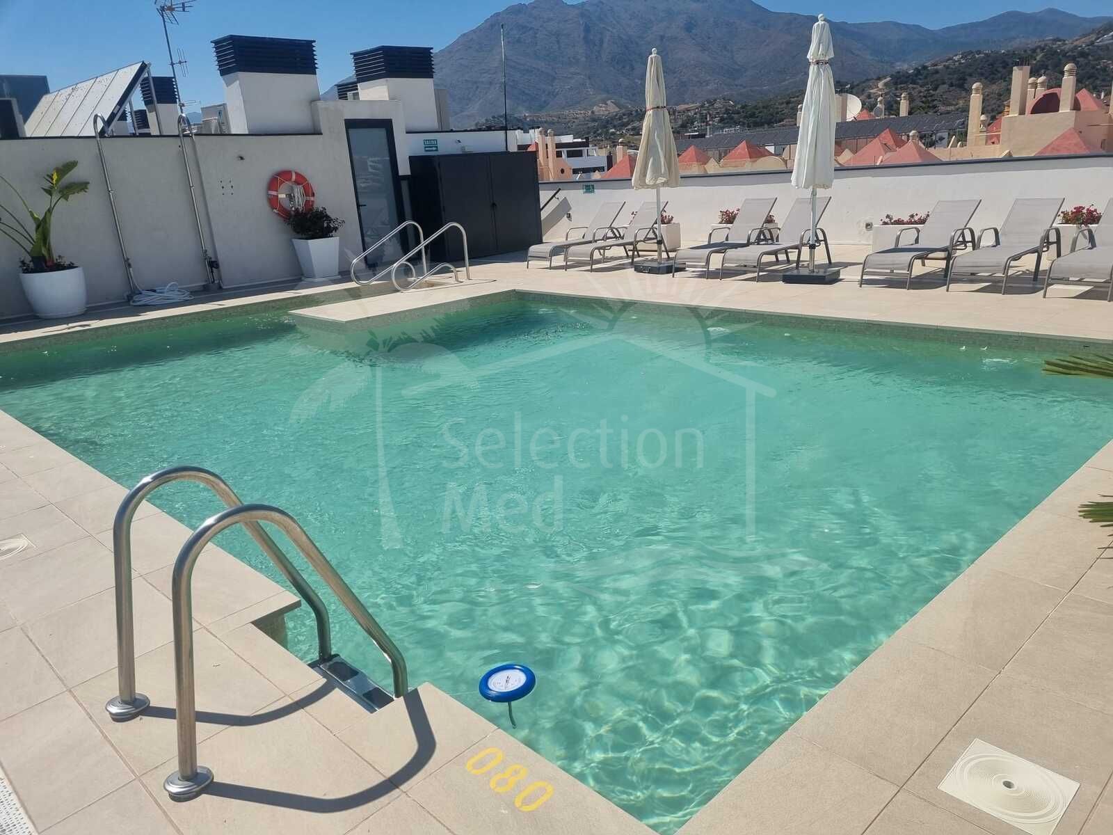 Located in a modern building from 2022, this exclusive penthouse combines contemporary design, comfort, and an unbeatable location in the heart of Estepona. The property has two spacious bedrooms, one of them en suite, and bright spaces that open onto an impressive terrace with 270° panoramic views of the Mediterranean Sea and the mountains.