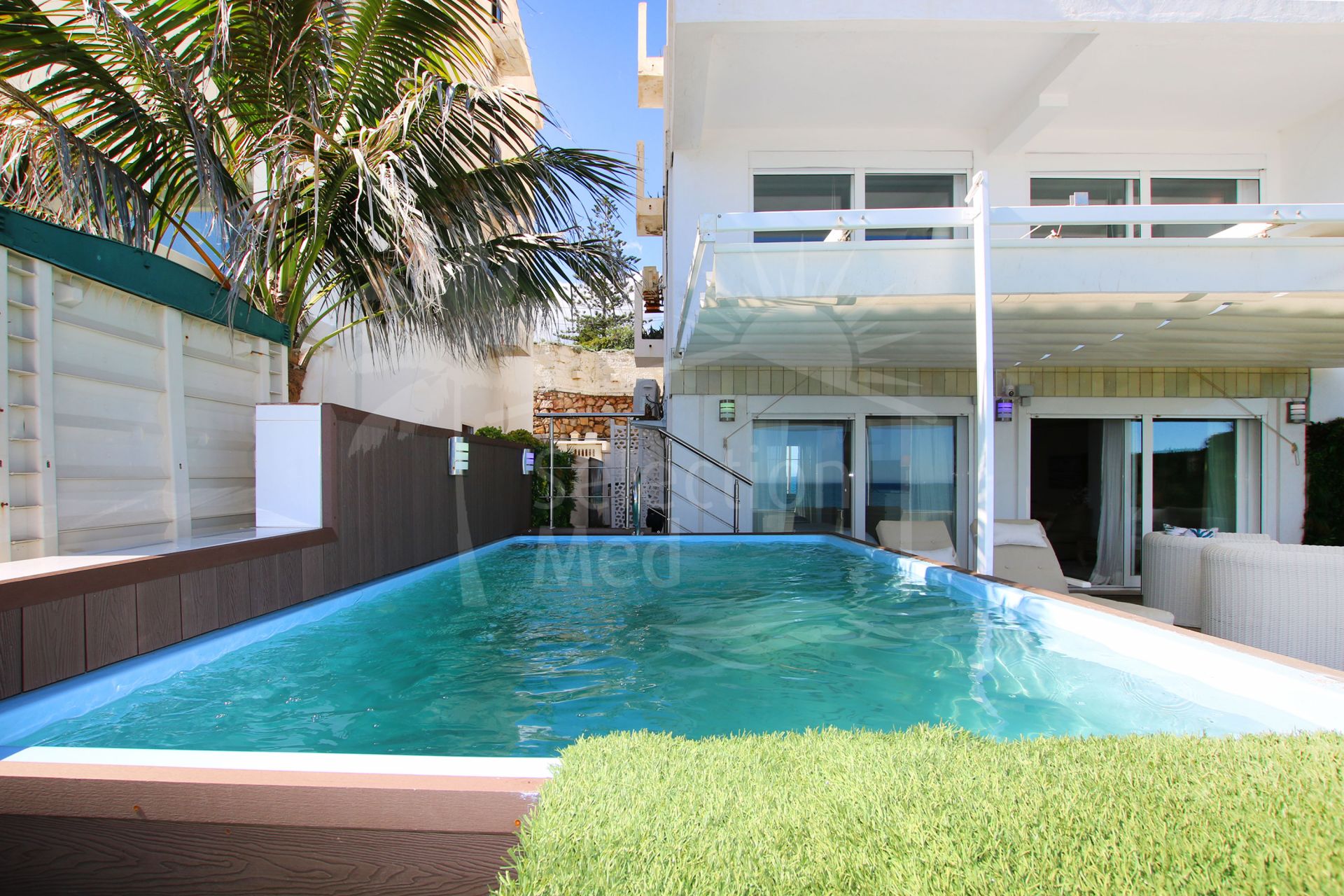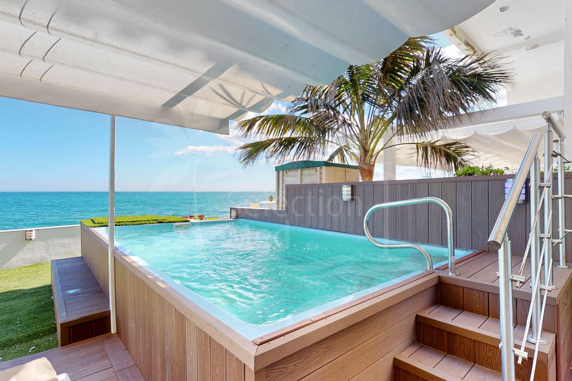 A seafront garden with a private pool (4.5 × 2.5 × 1.4 m), offering uninterrupted views of the Mediterranean—just meters from the shoreline.