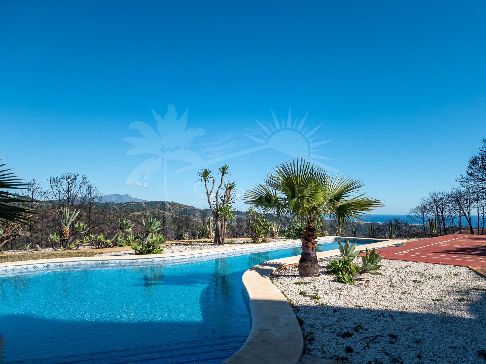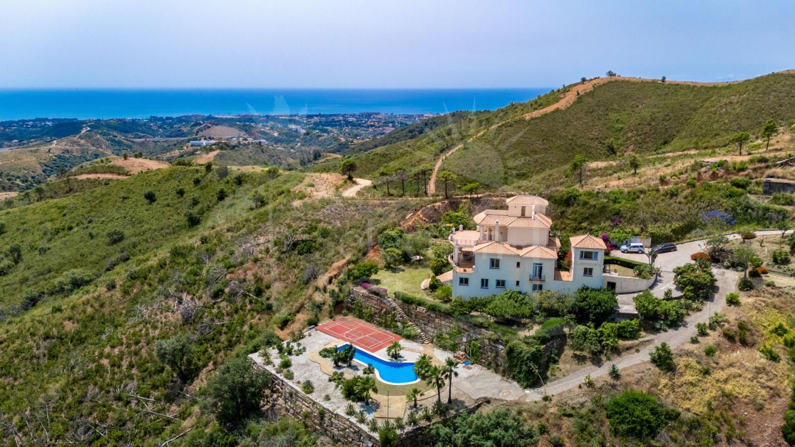 Perched in an elevated and highly private position in the hills, this remarkable estate offers a rare blend of serenity, scale and breathtaking natural beauty. Surrounded by rolling countryside and set within an expansive 48,344 m² plot, the property enjoys sweeping panoramic views that stretch from the lush Andalusian landscape to the shimmering Mediterranean Sea.